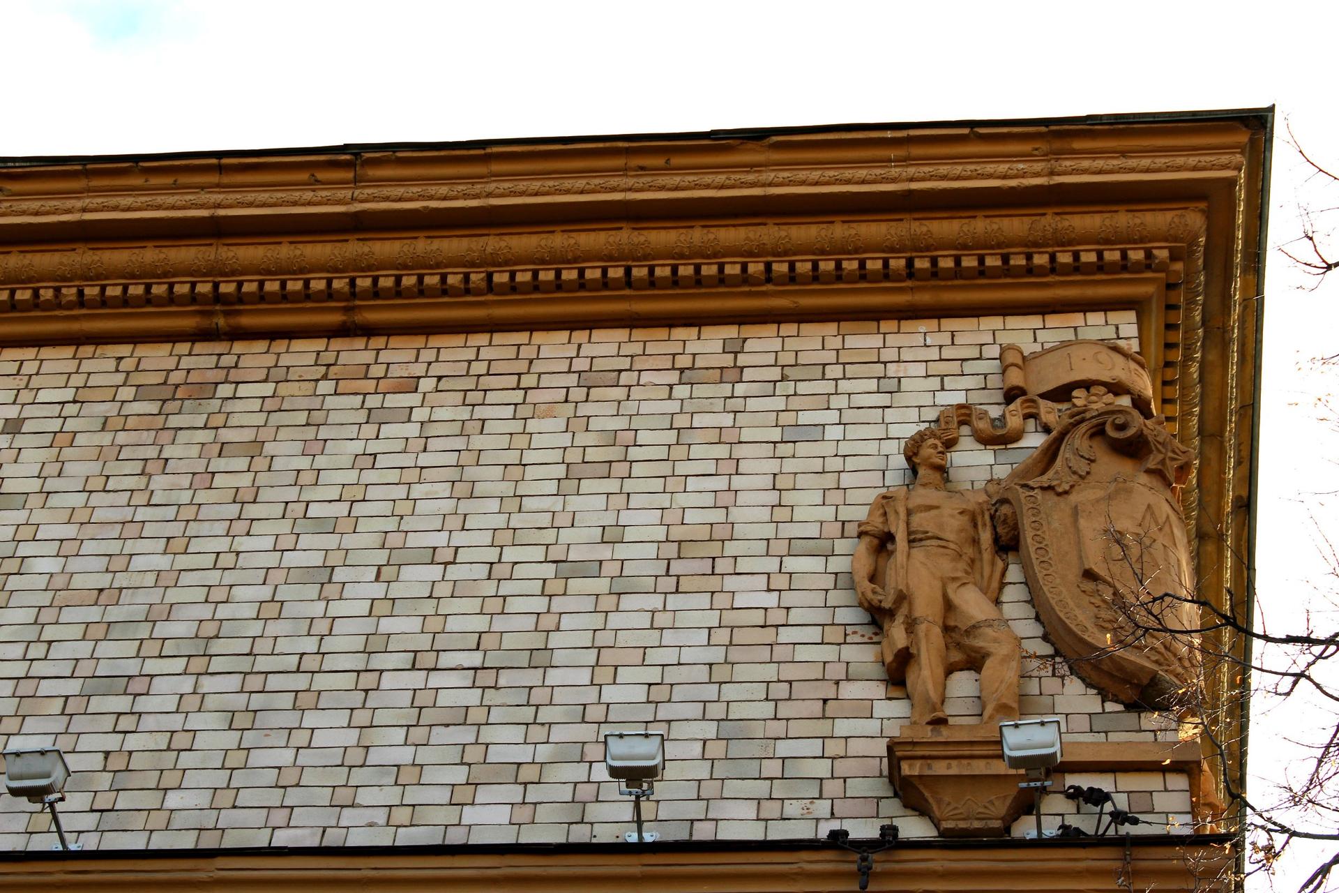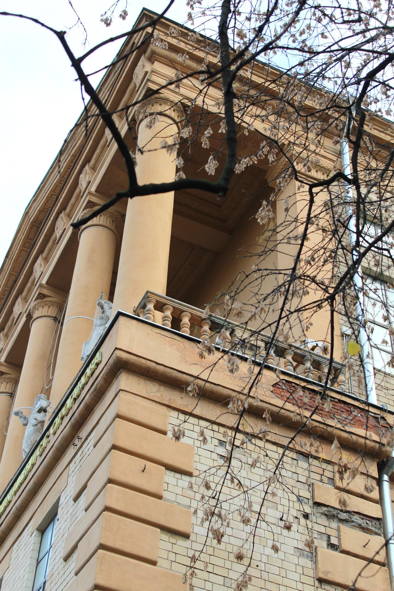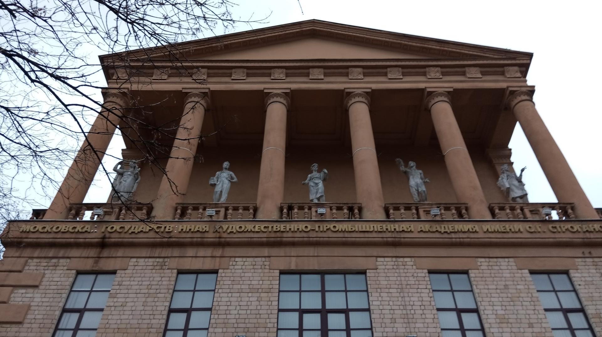 В 1950- е годы в училище активно развивается направление по подготовке скульпторов. Учитывая значение, которое приобретает монументальная пластика в оформлении зданий, студенты Строгановки активно разрабатывают орнаментальные композиции и ордерные элементы для фасадов и интерьеров, их дипломные работы украшают скверы и парки в российских городах. «Каждый студент не только учился, но и реально участвовал в оформлении новых высоток, станций метро, общественных зданий. Строгановцы внесли большой вклад в создание скульптурных ансамблей ВДНХ и Московского метрополитена». Архитектурные детали строившегося на Волоколамском шоссе нового здания – капители и базы колонн, карнизы создавались руками студентов Строгановки. Фигуры в интерколумниях фасада являлись их дипломными работами. В Строгановке в это время преподавали знаменитые скульпторы: Г. Мотовилов, Е. Белашова, Г. Шульц и другие.