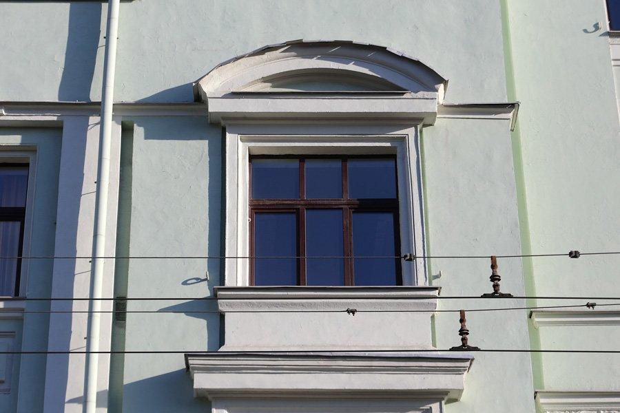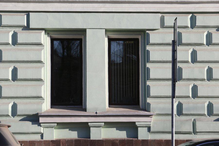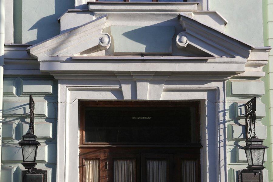 Дом №12 построен в 1891 г. для Нижегородско-Самарского Земельного банка известным архитектором К.М. Быковским. Сейчас сложно найти границу между 12 и 10 домом, а в начале XIX века это были два разных владения. Дом 12 занимал банк, дом 10 модное ателье Н. Ламановой. Два разных мира, два разных архитектора.