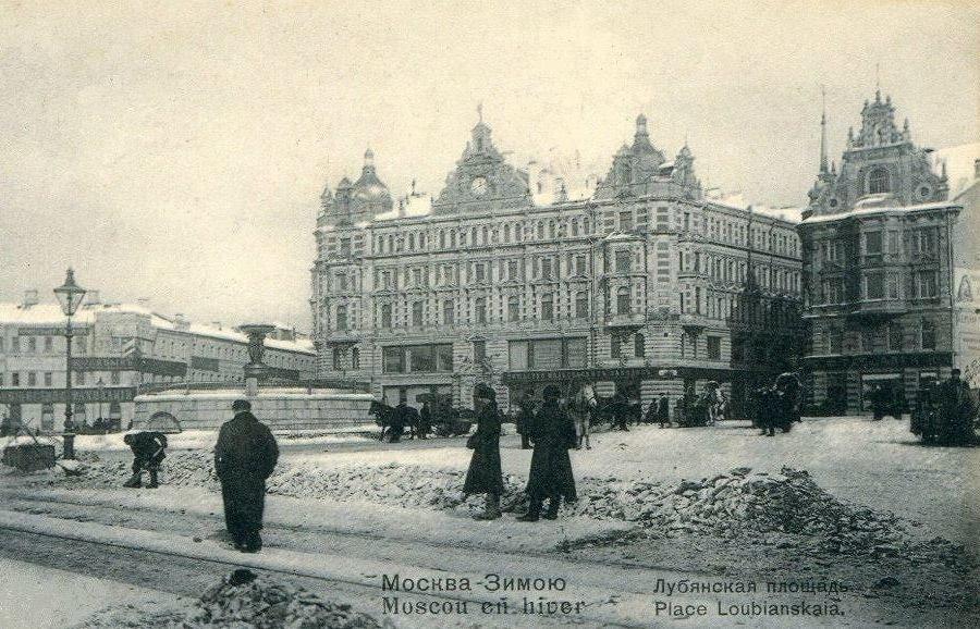 Первые здания комплекса были построены в 1897–99 г. петербуржскими архитекторами А. Ивановым (дом 1) и Н. Проскуриным (дом 2). Это были две отдельных постройки, разделенные началом Малой Лубянки, которые выкупившее огромный земельный участок Страховое общество «Россия» использовало как доходный дом.
