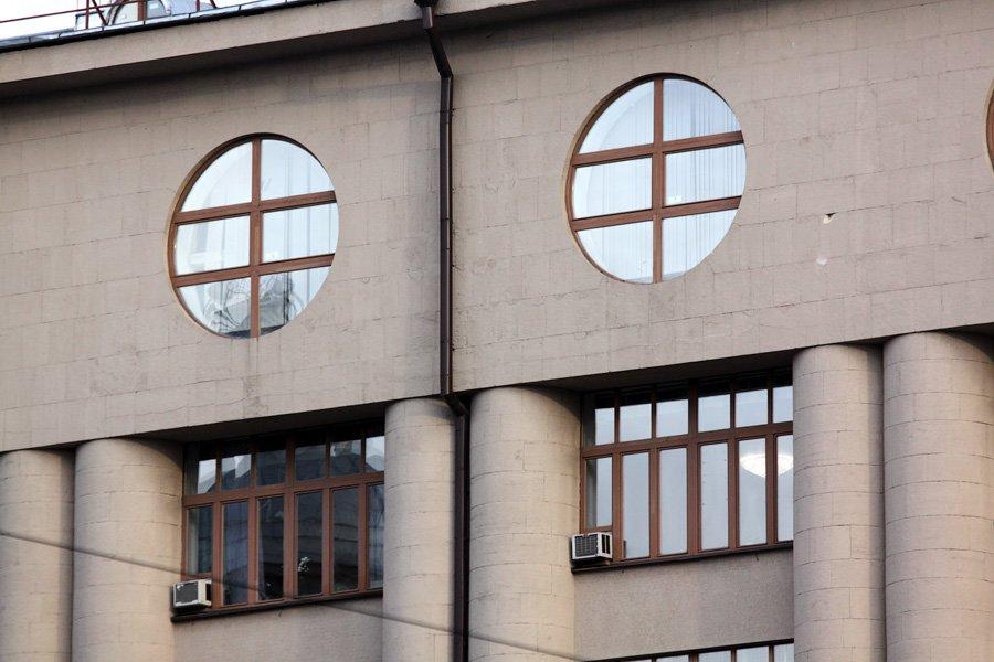 На улицу выходит вход в магазин — знаменитый «Сороковой гастроном» - ныне «Седьмой континент». Однако у здания были и другие функции — здесь и офисы, и служебные квартиры, и зал собраний, и даже столовая-клуб - ее цилиндрический объем выходит на Малую Лубянку.