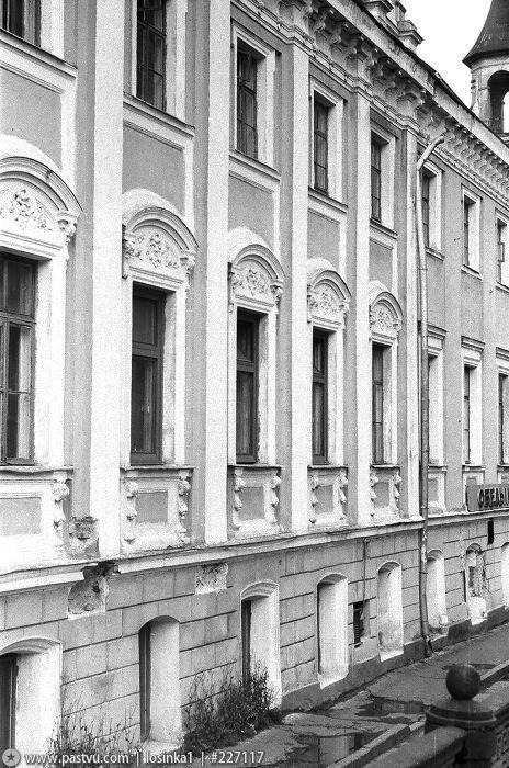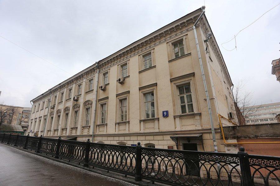 Дом стоит в глубокой выемке, образовавшейся при устройстве железнодорожной соединительной ветки. Сейчас трудно представить, но когда-то это был пышный дворец. Правая часть нынешнего здания является первоначальной постройкой, возникшей здесь примерно в 1740 - 1750-х годах, владел ей М. А. Ахлестышев. Несколько расширенный и перестроенный двухэтажный дом приобретает в 1793 году подполковник М. Р. Хлебников, бывший купец, ставший правителем канцелярии у графа П. А. Румянцева-Задунайского. Хлебниковы продают свой дом на Покровке, и архитектор Матвей Казаков перестраивает им усадьбу Ахлестышева в один из самых красивых дворцов на Басманных улицах.