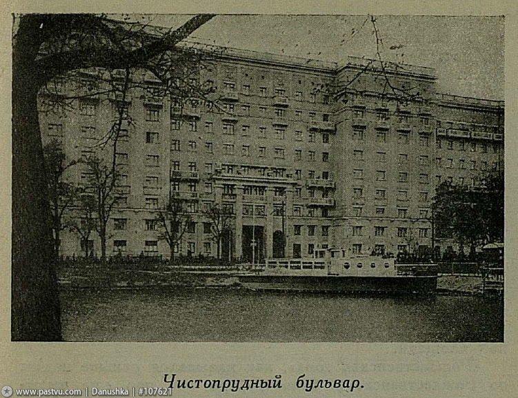 В 1930-е на Чистопрудном бульваре вырос жилой дом для кооператива «Военный строитель», созданного для обеспечения жильем сотрудников Военстроя - специального строительного управления, в обязанности которого входило строительство бомбоубежищ, бункеров и прочих объектов гражданской обороны.