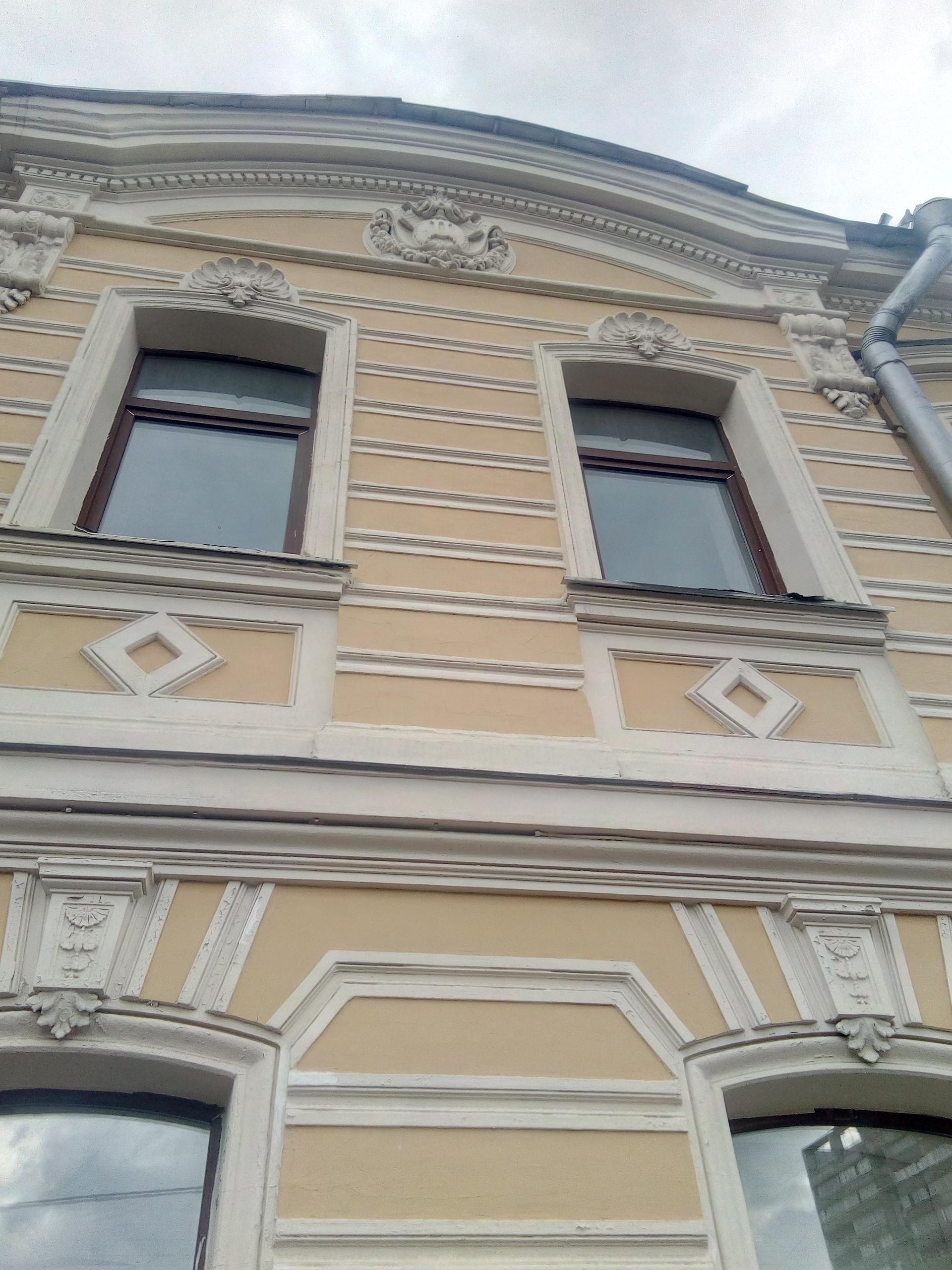 Среди украшений и оригинальных архитектурных деталей на фасаде можно увидеть подоконные фартуки и оконные проемы в виде ниш, филенки, арочные перемычки, лепные картуши с монограммами. Все это сохранилось.
