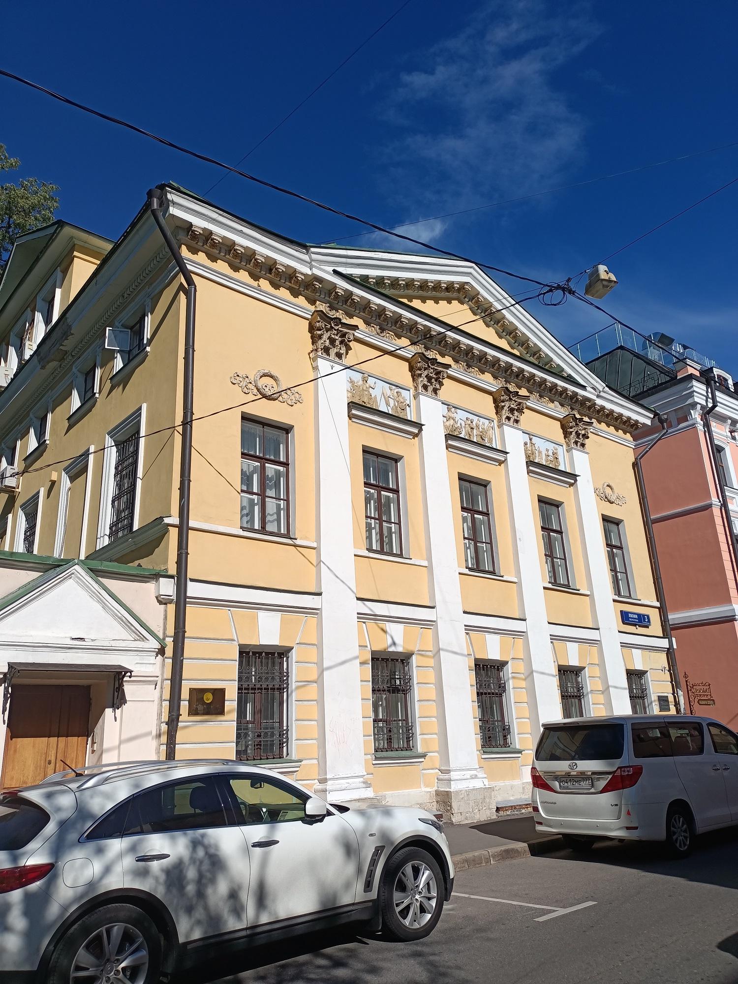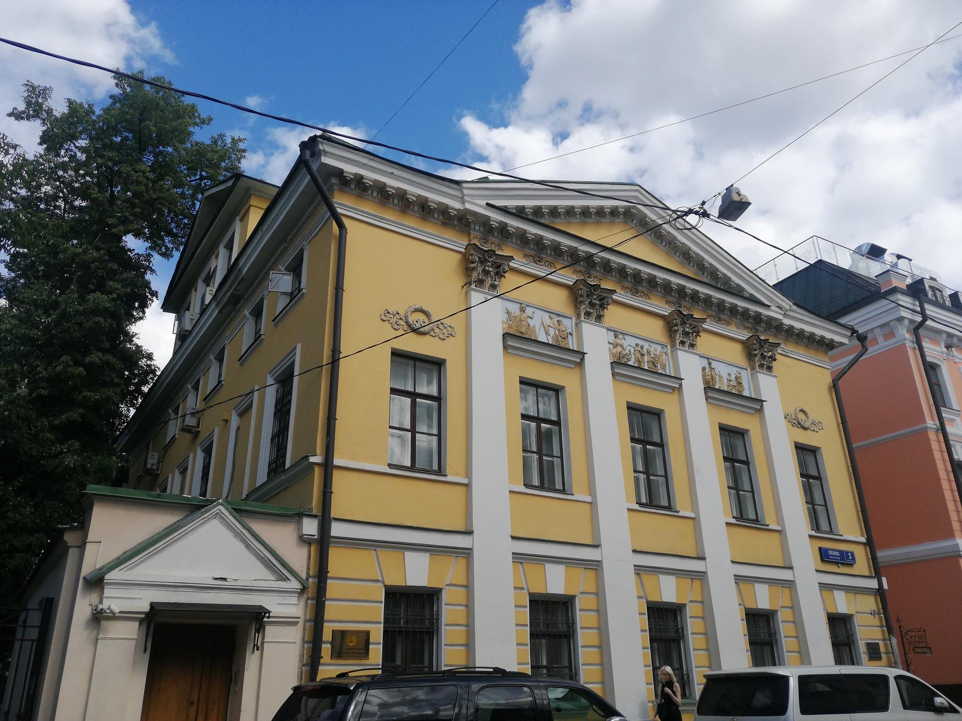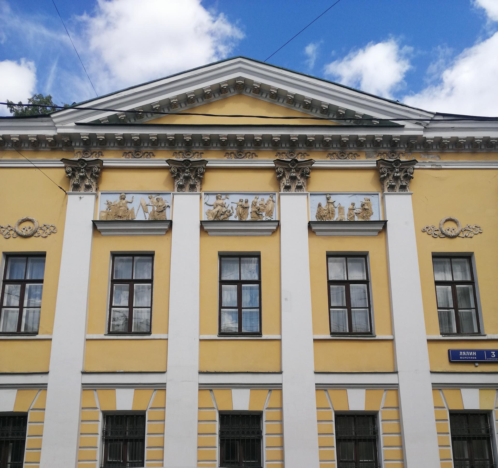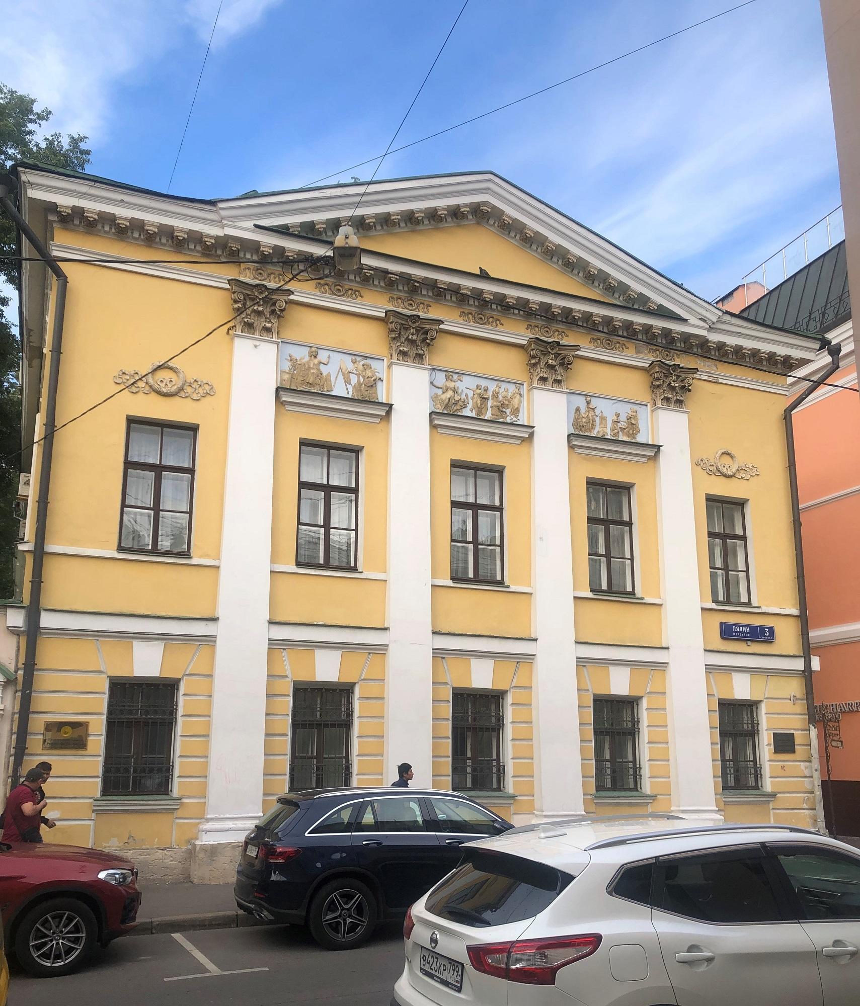 Д. 3 стр. 1 по Лялину переулку – очень любопытное сооружение. На боковых фасадах видны остатки декоративной обработки стен здания второй половины XVIII века, входившего в усадьбу доктора Г.А. Скиадана, который занимал должность московского губернского доктора, принимал активное участие в борьбе с эпидемией чумы в 1771 г. (его владение в XVIII веке включало современные участки № 3 и № 5 и продолжалось дальше, занимая часть Лялиной площади).