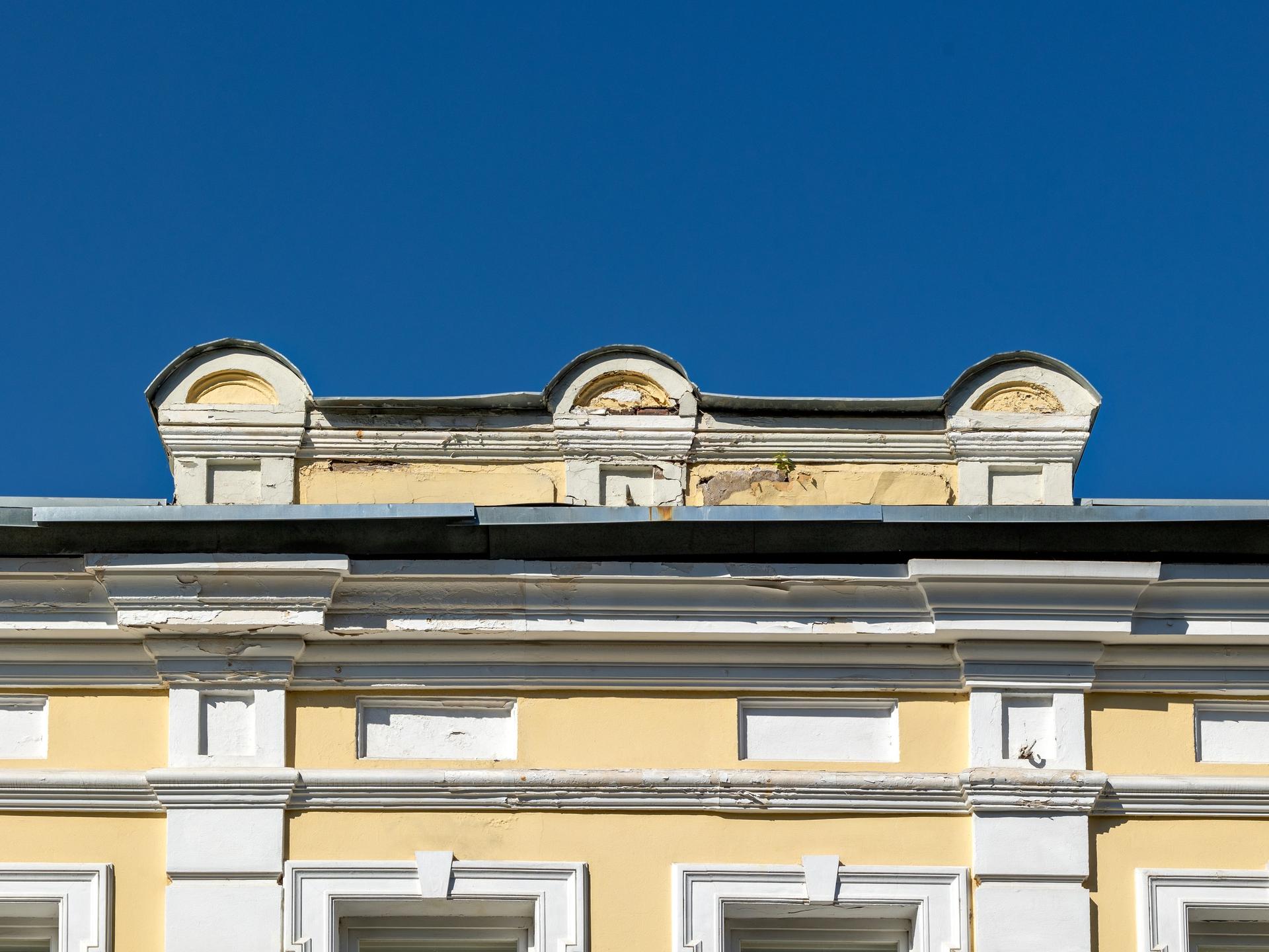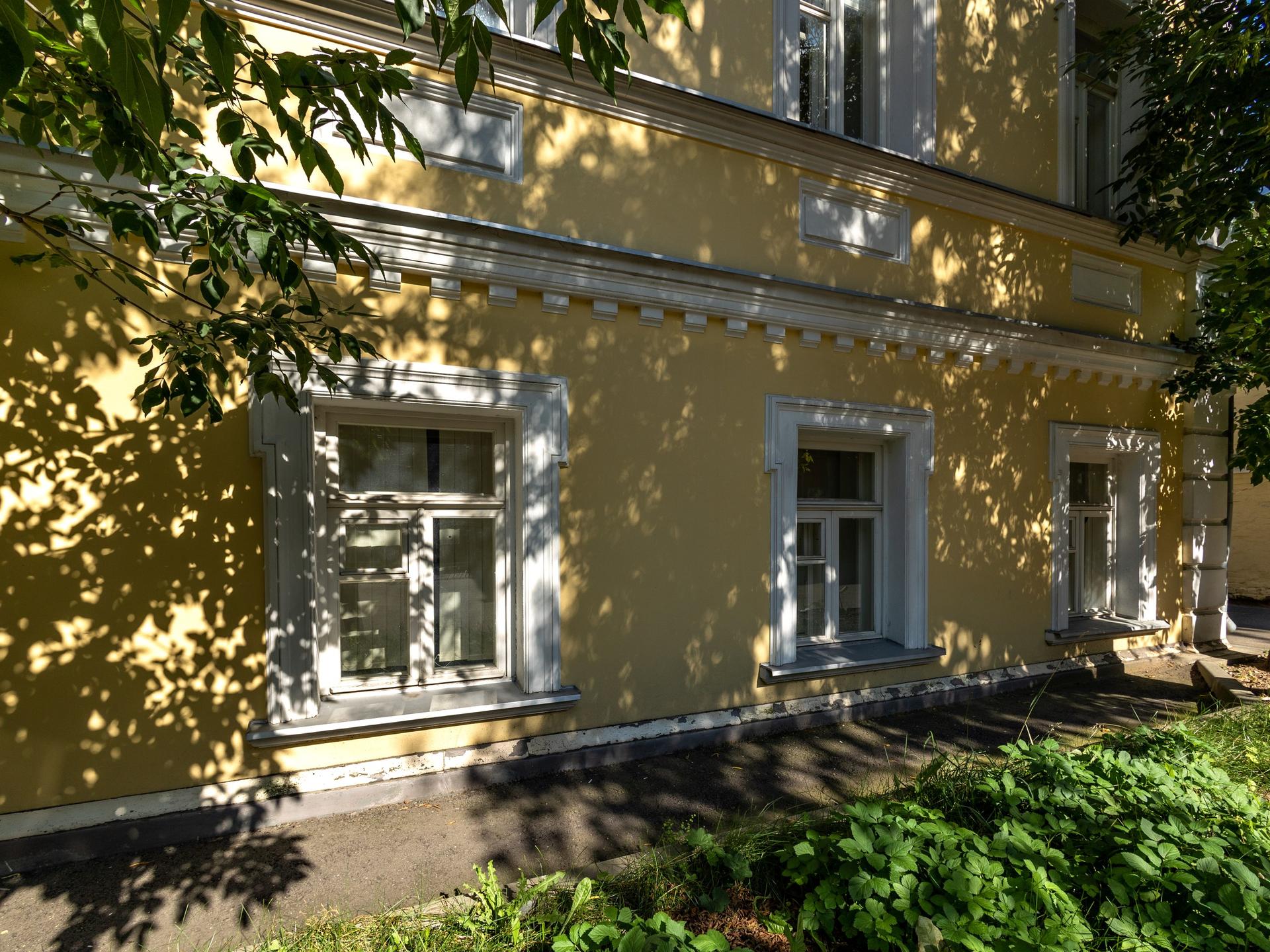 Фасад украшен невысоким гладким цоколем, широким междуэтажным поясом с лежачими филенками и венчающим антаблементом. Углы здания подчеркнуты огибающими рустованными лопатками. Центр главного фасада выделен горизонтальным аттиком. Прямоугольные окна обоих этажей помещены в штукатурные рамочные наличники с «ушами». Первоначальная внутренняя планировка здания и интерьеры утрачены. Но дом поддерживается в хорошем состоянии и приспособлен под офисы.