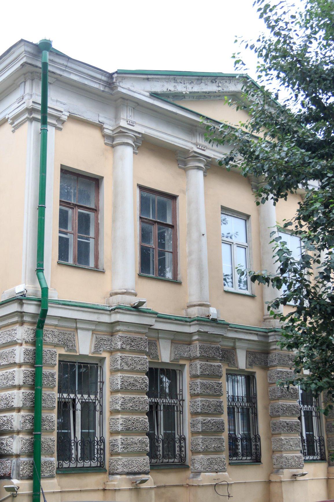 Лаконичная ампирная обработка фасадов осложнена лепным декором более позднего времени. Задний ризалит, возможно, изначально был открытой колоннадой, но его перестроили с характерным уже для эклектики поэтажным раздроблением ордера.