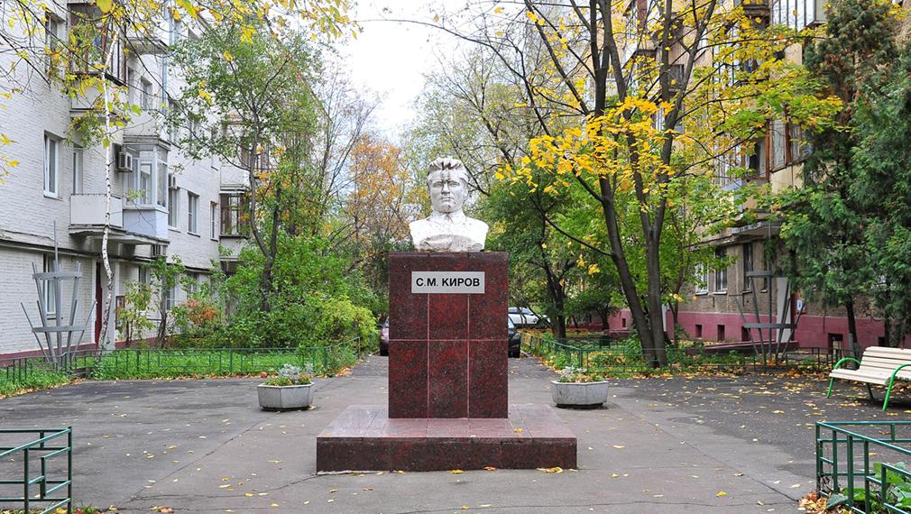 В центре этой геометрической композиции стоит памятник Сергею Кирову. Поставлен он был здесь не сразу, а в 1934 году, после смерти Кирова. Сначала городок назывался Сущевка, а после установки памятника стал жилым рабочим городком имени Кирова. Большая, кстати, редкость, что памятник советскому государственному и политическому деятелю до сих пор сохранился, более того — здесь регулярно появляются свежие цветы.