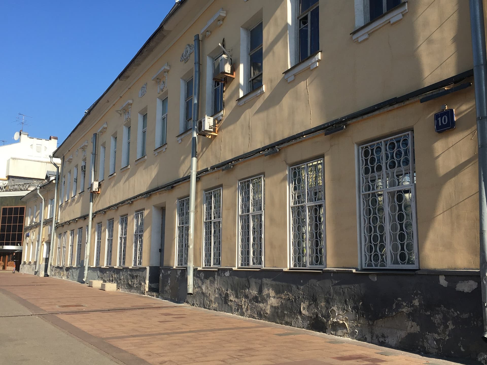 Этот двухэтажный дом 10 на углу Большой Никитской и Газетного переулка является типичным представителем московской застройки начала 19 века. Его основу возможно составляют палаты середины XVIII в., принадлежащие видному военному и государственному деятелю Российской империи 18 века, коменданту Астрахани, президенту Ревизион-коллегии Федору Ивановичу Кнутову. После его смерти, в 1783 г. весь участок перешел купцу А.Т. Заикину. Ему же принадлежал и соседний дом 8. Таким образом в руках купцов Заикиных в конце 18 начале 19 века был весь квартал домов по Большой Никитской – от Никитского до Газетного переулков.