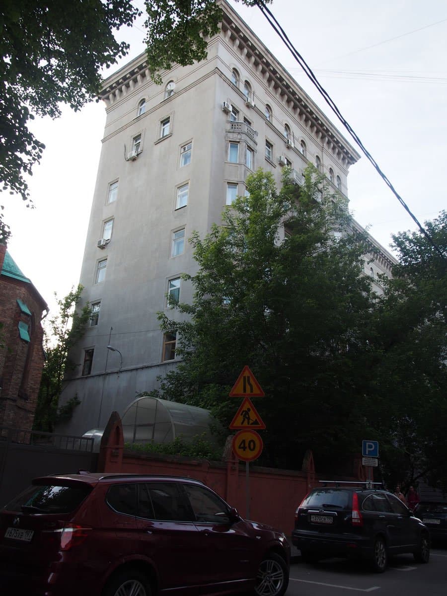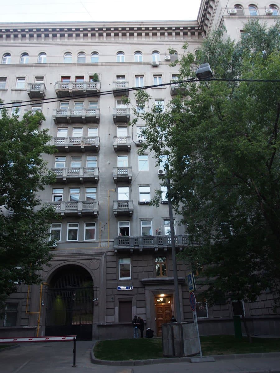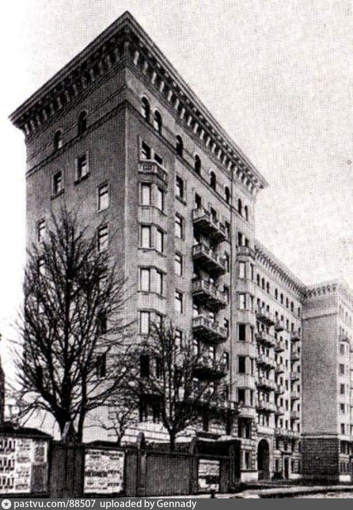 «Артистическое» заселение Брюсова переулка началось в 1928 г., когда здесь одновременно были построены Дом артистов (№ 12, перед выходом переулка к Тверской, по проекту И.И.Рерберга) и Дом артистов МХАТ (№ 17, напротив сквера с памятником композитору А.И.Хачатуряну, по проекту А.В.Щусева, надстроен), внешне выполненный в формах строгого конструктивизма и ставший первенцем работы в Брюсовом переулке именитого архитектора. А.В.Щусев имел колоссальную строительную практику. Этот выдающийся мастер получил звание академика архитектуры еще в Петербургской Императорской Академии художеств.