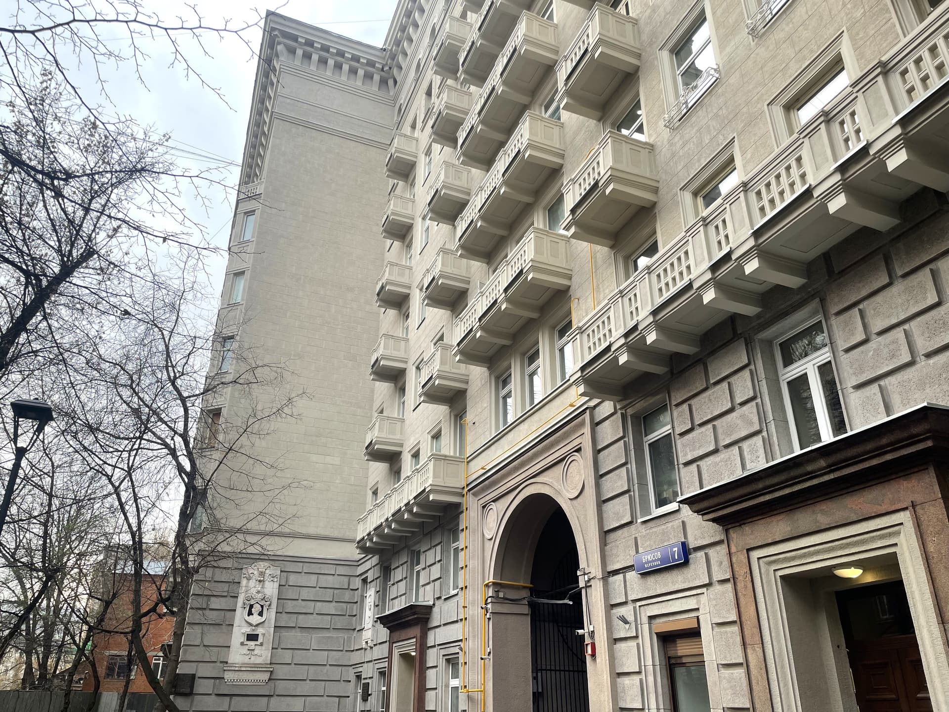 Расположенный в середине трассы Брюсова переулка описываемый д. 7 представляет собой характерный пример постконструктивистских поисков А.В.Щусева середины 1930-х гг. Здание состоит из трех соединенных монументальных девятиэтажных корпусов, два боковых корпуса выдвинуты вперед, центральный корпус отодвинут с образованием небольшой «внутренней» площади. На всех корпусах два первых этажа образуют нижний ярус, оформленный в виде рустованной кладки из крупных блоков, верхняя зона оштукатурена. В середине нижнего яруса центрального (заглубленного) корпуса расположен проезд во двор в виде «большой» арки. Центральную вертикаль над этой аркой продолжает ряд двойных балконов на всю высоту верхнего яруса, этому центральному ряду вертикальному балконов аккомпанируют «меньшие» балконы по сторонам этой центральной оси на центральном и боковых корпусах. Для усиления пластической выразительности монументальной архитектурной композиции А.В.Щусев ввел в качестве обрамлений фасадов боковых корпусов в верхних зонах по два ряда трапециевидных нависающих эркеров и между ними на границе нижнего и верхнего ярусов – нависающие балконы на всю ширину фасадов. Завершением фасадов всех трех корпусов стал верхний этаж, ставший «реверансом» в сторону общих классицистических тенденций советской архитектуры 1930-х гг. Верхний этаж на всех корпусах выделенный узким карнизом, оконные проемы выполнены в виде арок, этаж завершен вынесенным нависающим карнизом на валютообразных консолях. В д. № 7, построенном под руководством А.В.Щусева, жили два выдающиеся обитателя Брюсова переулка – это народные артисты СССР А.В.Нежданова и Н.С.Голованов. В квартире № 10 сейчас открыт музей Н.С.Голованова.