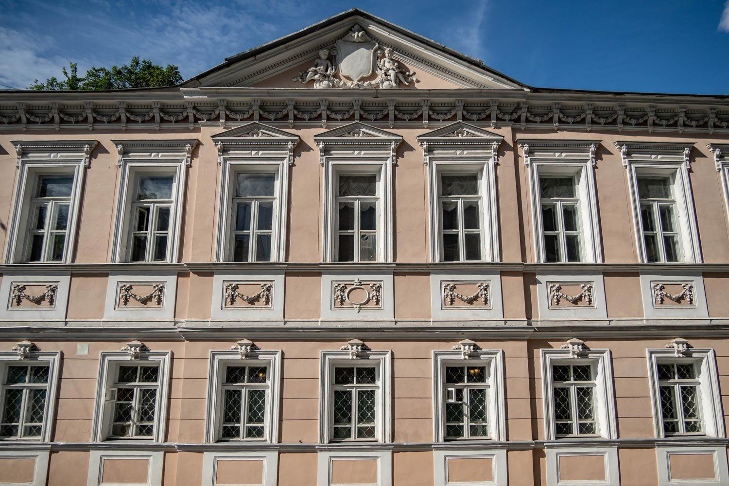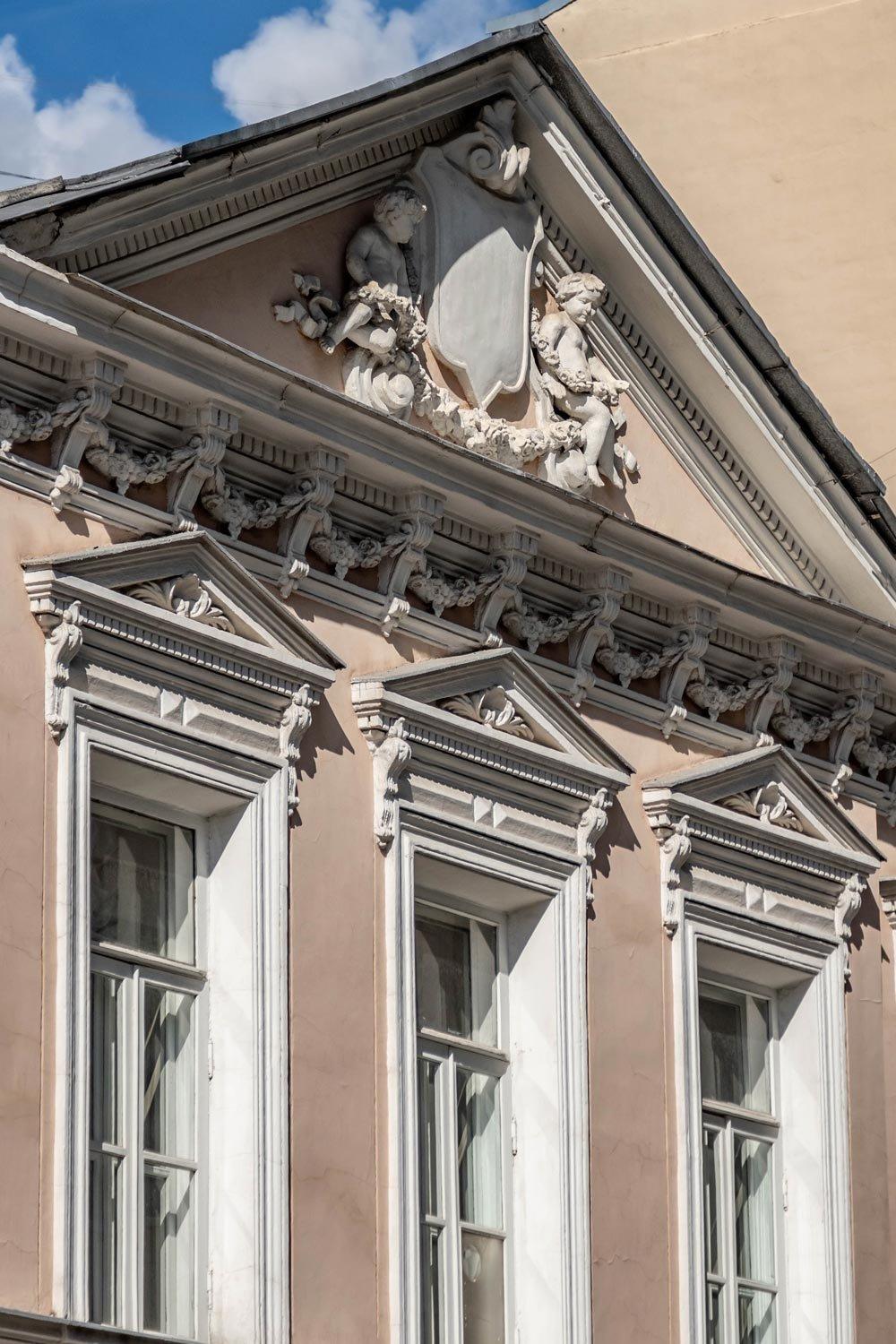 Дом № 4 стоящий ближе к Большой Полянке раньше тоже относился к территории, относящейся к усадьбе Вяземских. Усадьба была разбита на участки и продана в 19 веке разным владельцам. В 1870-х годах строение 4 по 1-му Спасоналивковскому переулку приобрело современный вид. Был перестроен 2-х этажный каменный дом. Появились лепные венки под карнизом и в прямоугольных межэтажных медальонах и горельеф внутри фронтона под крышей: амуры, держащие в руках гирлянду. Окна первого этажа декорированы замковым камнем оригинальной формы.