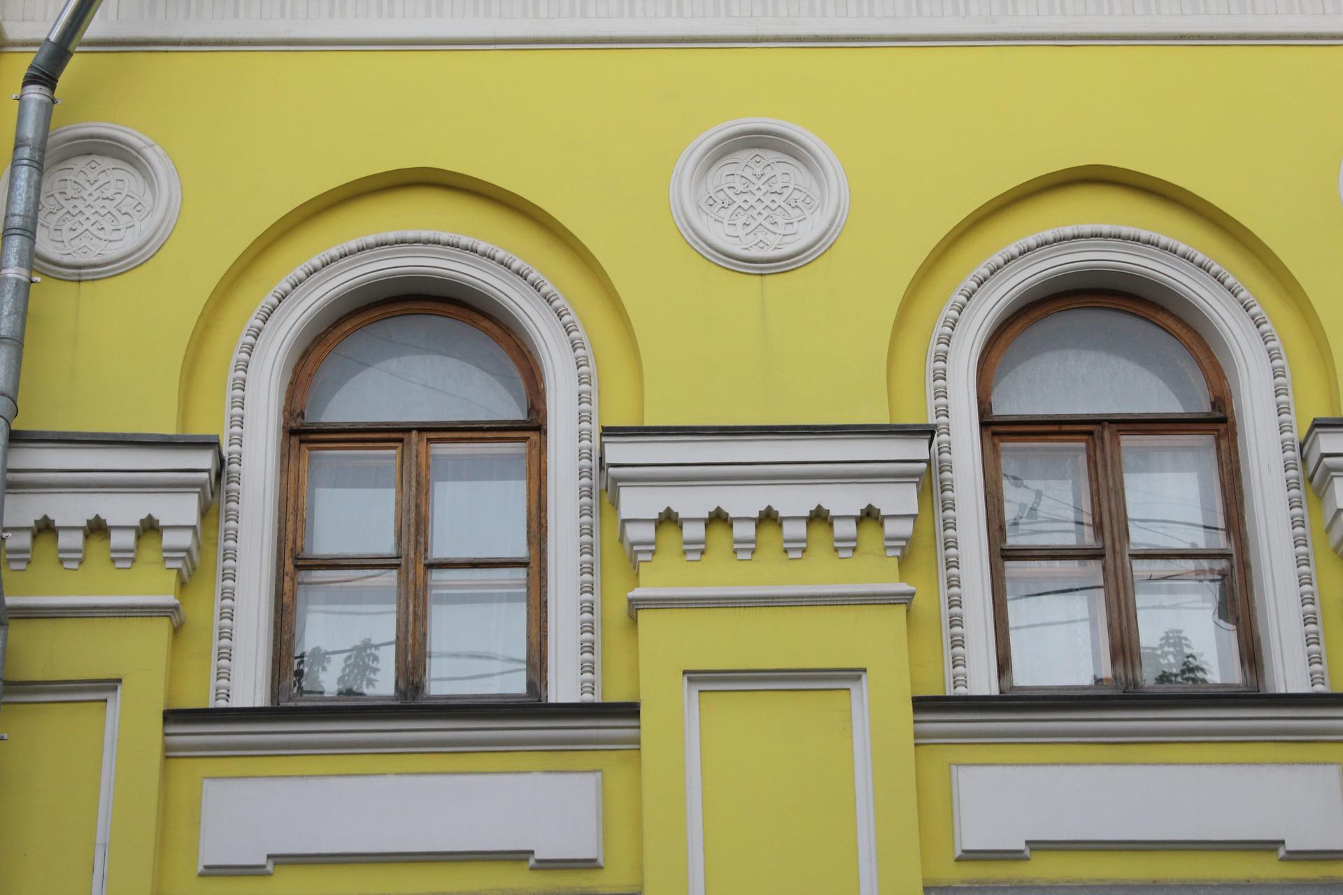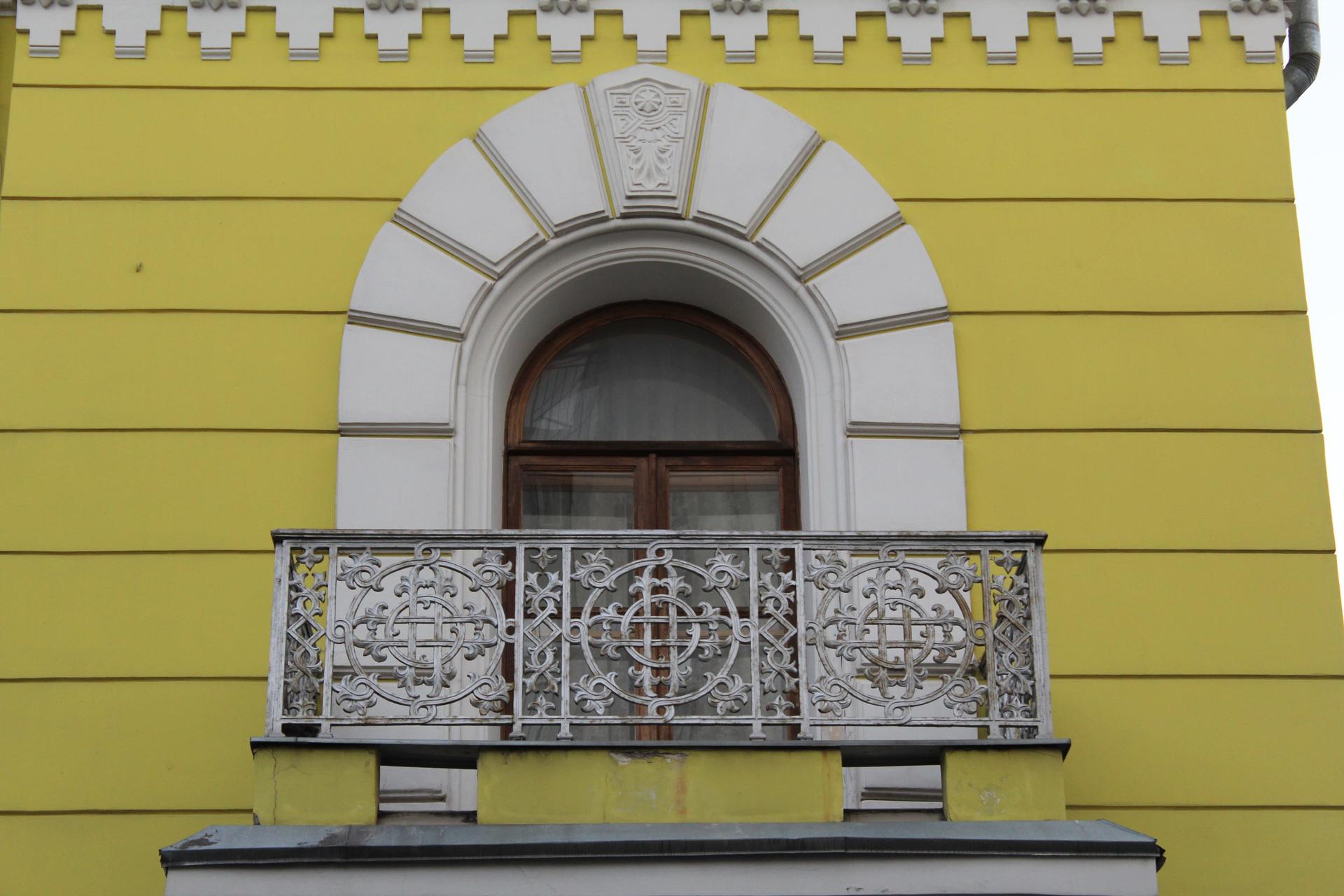 Трехчастная симметричная композиция фасада состояла из двух боковых ризалитов и центральной части. Во втором этаже ризалитов – полуциркульные окна в пол, обрамленные в декоративные рустованные рамы стрельчатой формы с замковым камнем, с выходом на балконы с литыми решетками. На первом этаже расположили входные группы. Стены первого яруса были обработаны «под шубу», второго ‒ оформлены легким прямоугольным рустом. Композицию ризалитов завершали дробный фриз и карниз. Кроме того, над северным ризалитом были надстроены антресоли в виде прямоугольного аттика. Среднюю часть фасада решили в виде аркады, объединяющей два этажа, в виде профилированных пилястр со стрельчатыми арками. Капители пилястр и междуэтажный карниз, а также фризы ризалитов декорировали рядом дентикул. Стены украсили филенками, розетками, наличники окон второго этажа – бусами. Срединная часть завершалась поребриком, по краю крыши проходил ажурный гребень. Боковые и дворовые фасады имели гораздо более скромный декор. Внутренняя планировка дома с протяженным коридором и рядами комнат по обе стороны от него напоминала о доходных домах, получивших распространение на рубеже XIX-XX вв.