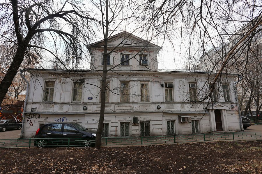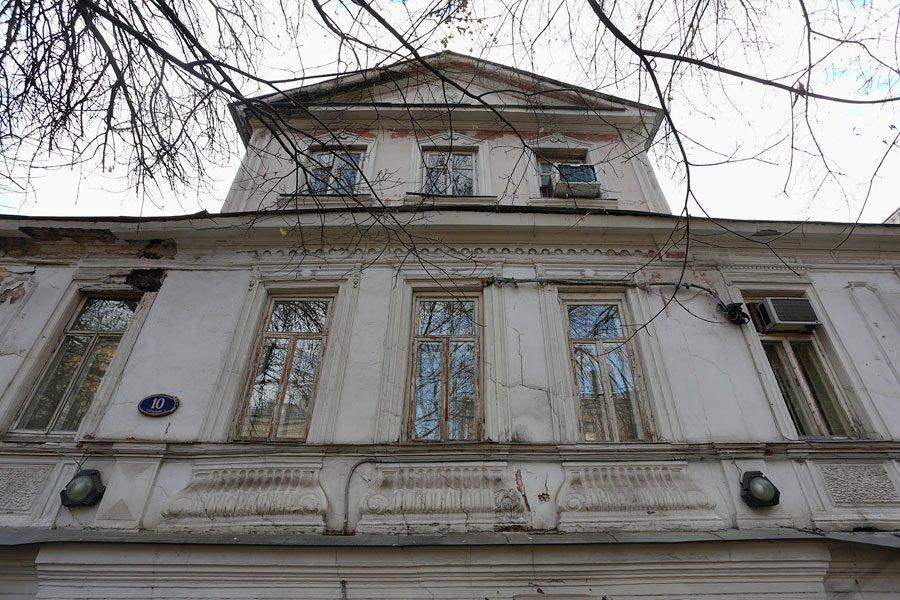 За высокими доходными домами начала XX в. чудом сохранился старинный деревянный особняк с мезонином. Его удивительные лепные потолки со старинной люстрой можно рассмотреть вечером, когда в зале зажигается свет. И создается впечатление, что из Москвы XXI в. переносишься в Москву XIX в. Тогда здесь находилась небольшая усадьба с палисадом-курдонером перед домом и прудом за ним, выходящим на огороды и сады. Дом построил в 1830-х гг. доктор медицины Иван Александрович Воскресенский, который служил врачом в московской полиции. Ему часто доводилось лечить и купцов, населявших соседние улицы и переулки.