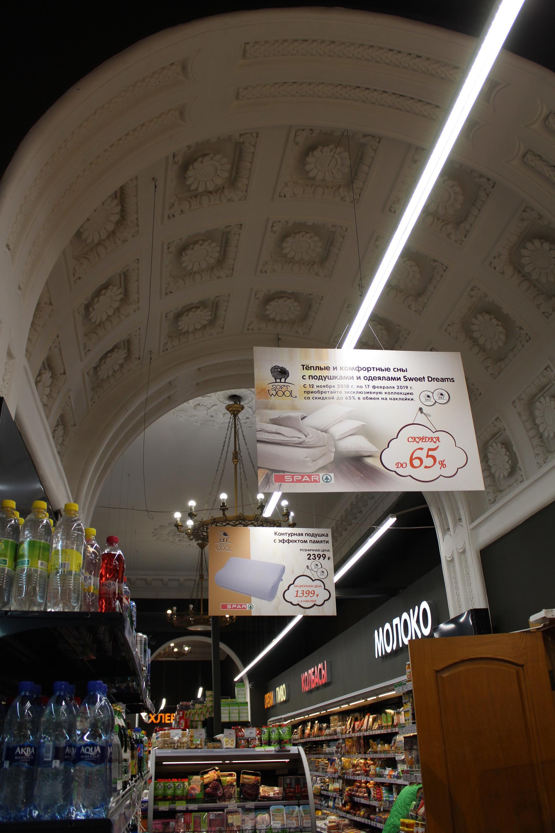 В нежилых помещениях размещались магазины, билетные кассы; со стороны фасада, примыкающего к Белорусскому вокзалу, располагался выход на платформу.