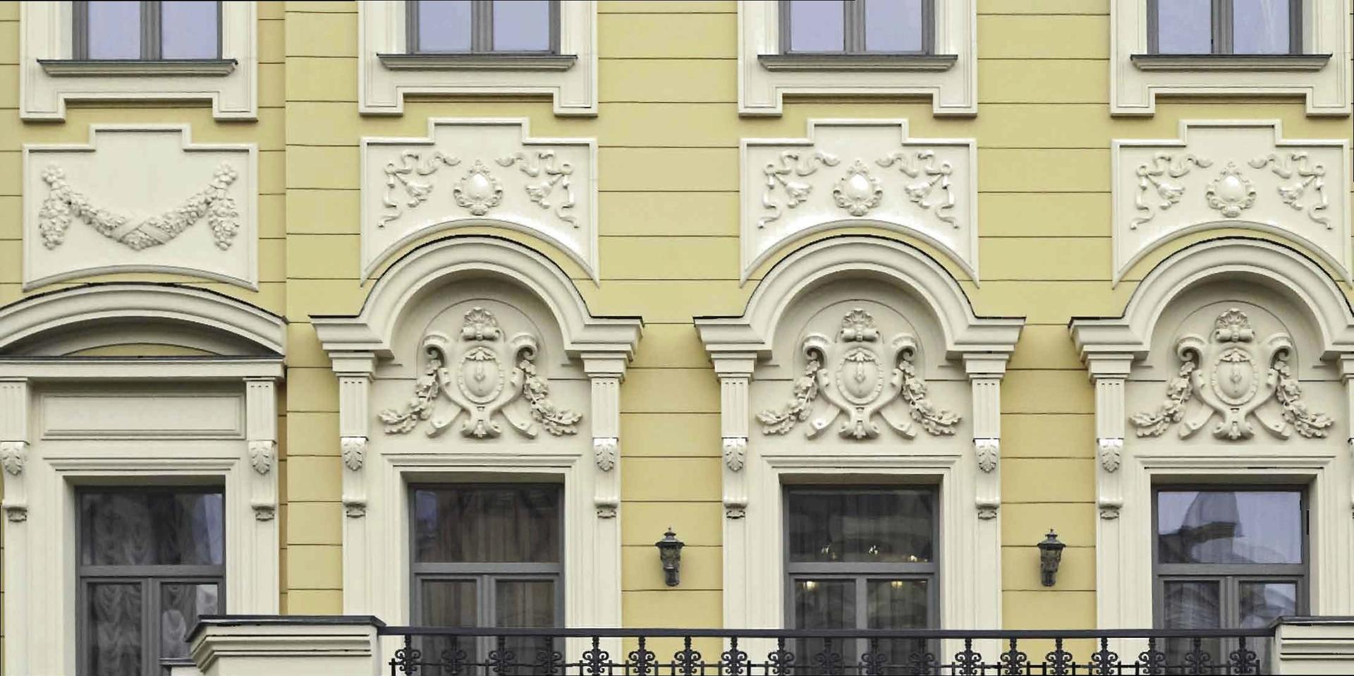Задачей реставраторов стало сохранение и воссоздание обнаруженных в процессе работ первоначальных конструктивных и декоративных элементов здания. В результате проведенных работ были восстановлены объемно-пространственная композиция здания, подлинное декоративное оформление и колористика фасадов второй половины XIX века. Отреставрированы балконы с металлическим ограждением и козырьки входных групп.