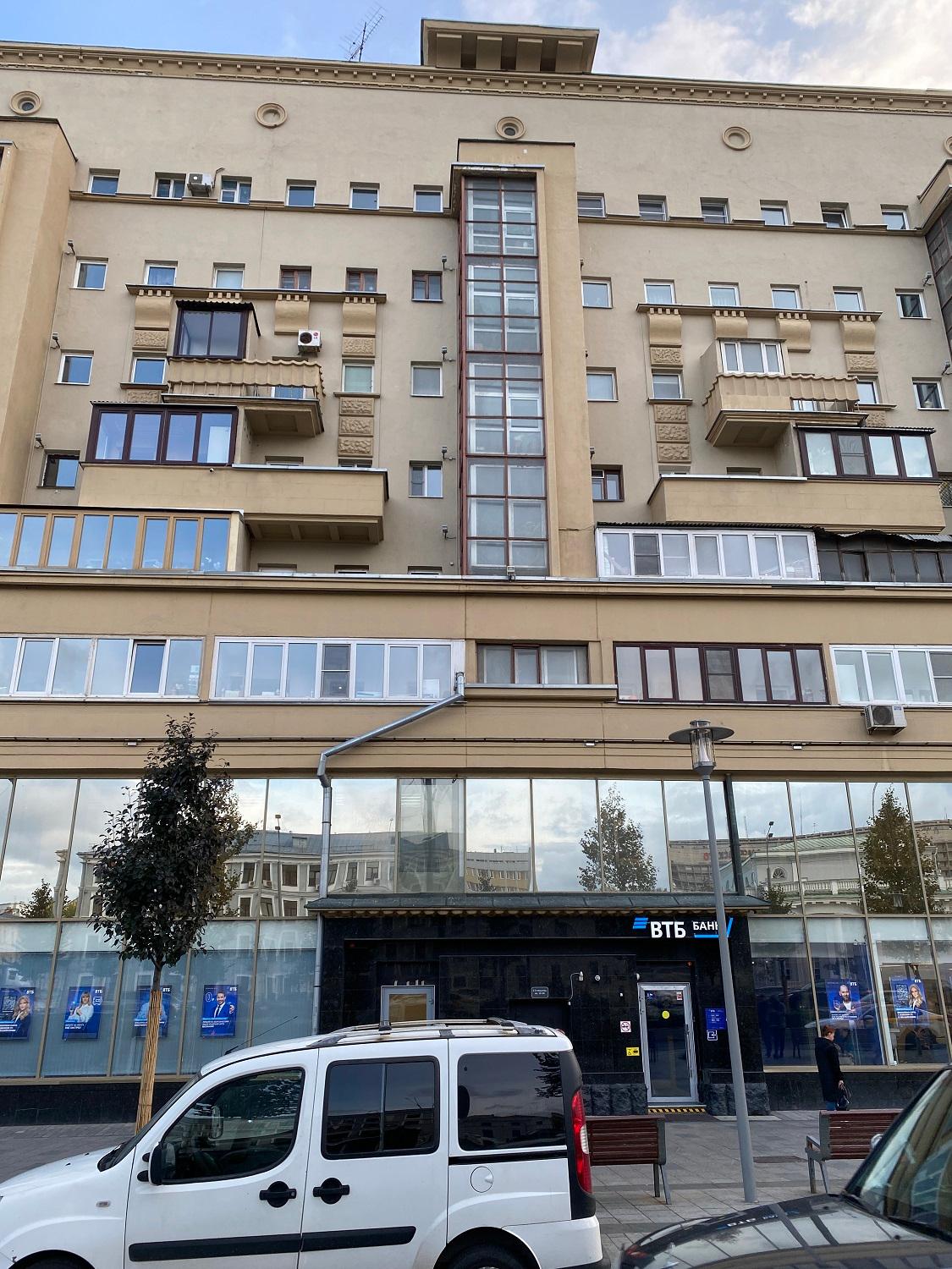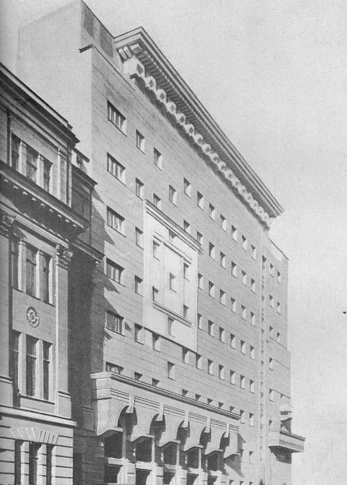 Этот дом интересен как пример изменения архитектурных вкусов в 1930-е годы - восьмиэтажный угловой жилой дом с выразительным декором на фасадах.