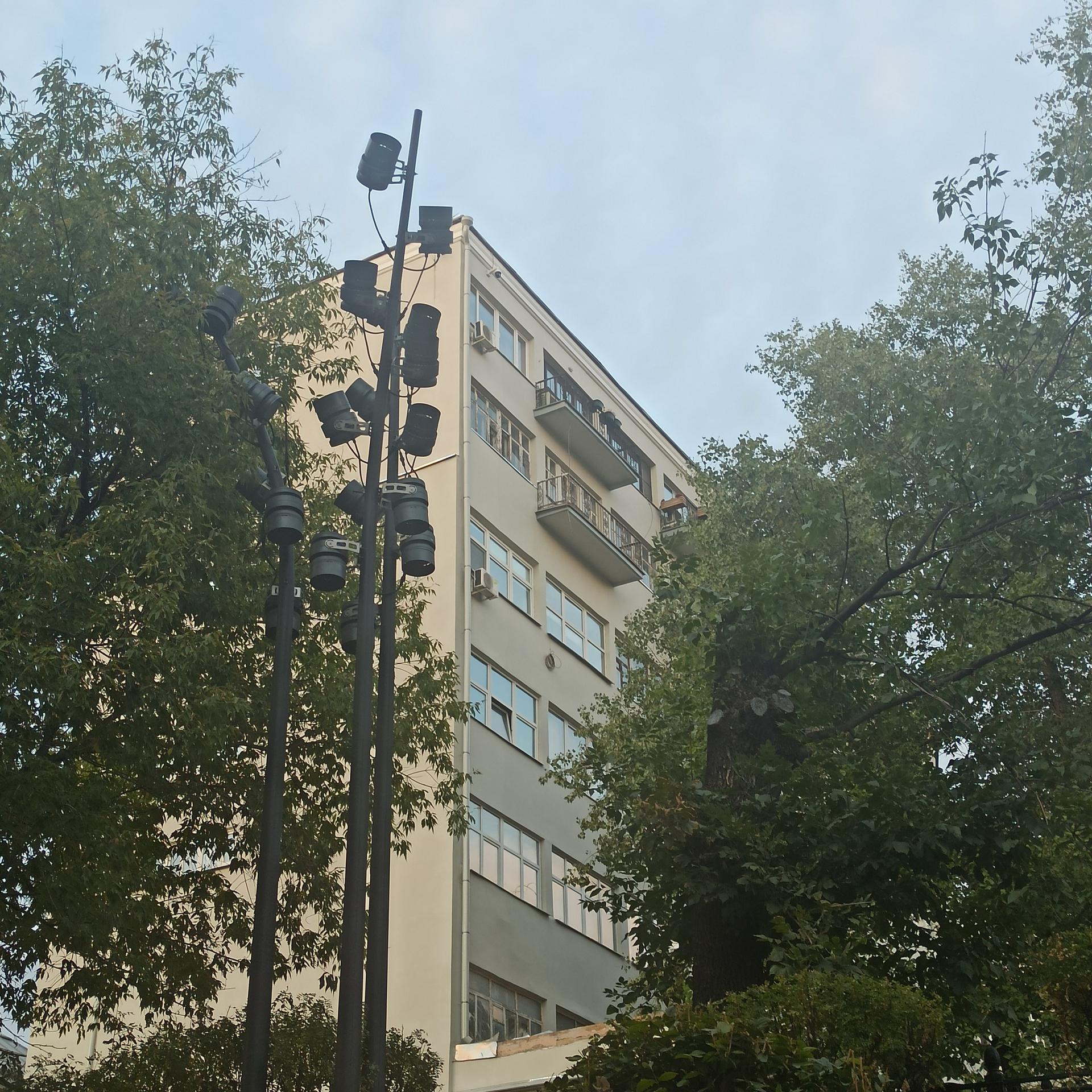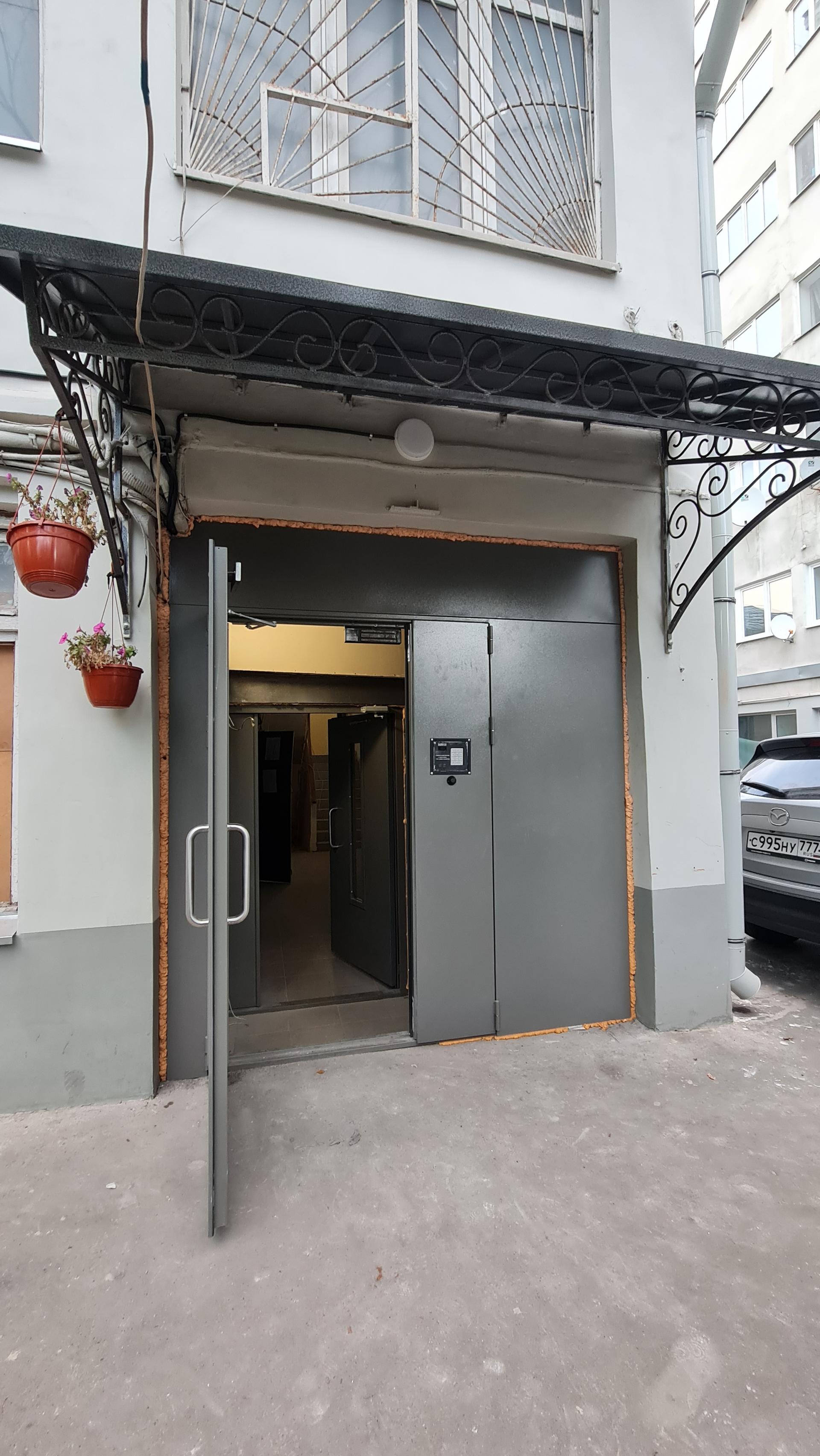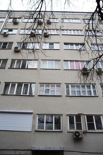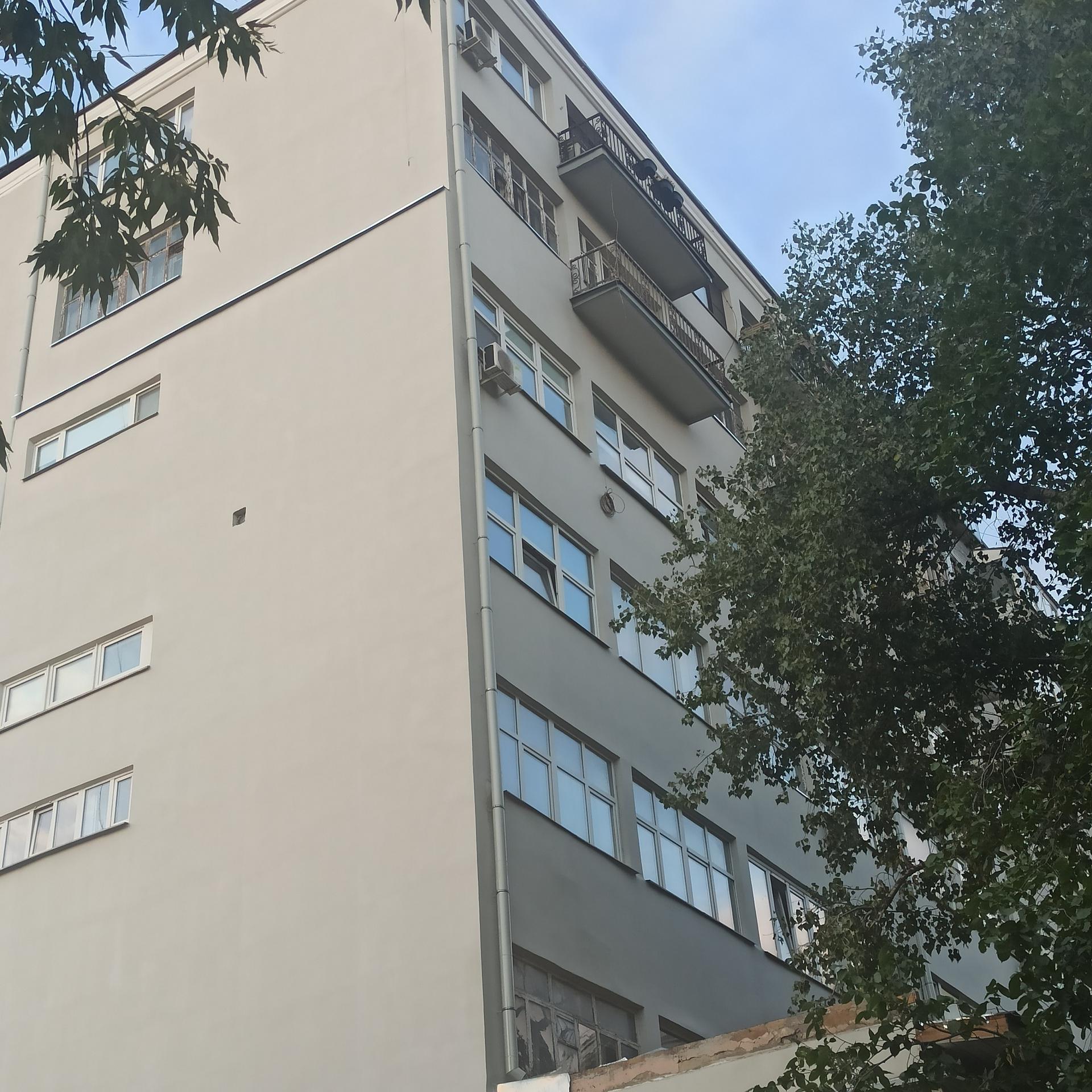 Лестницы располагались в полукруглых коробах со сплошным остеклением, вынесенных за линию фасада, выходящего в Большой Знаменский переулок. В 1950-е гг. в доме устроили лифты, не предусмотренные первоначальным проектом. Прямоугольные кирпичные лифтовые шахты были пристроены к лестницам и заняли все пространство тротуара в переулке.