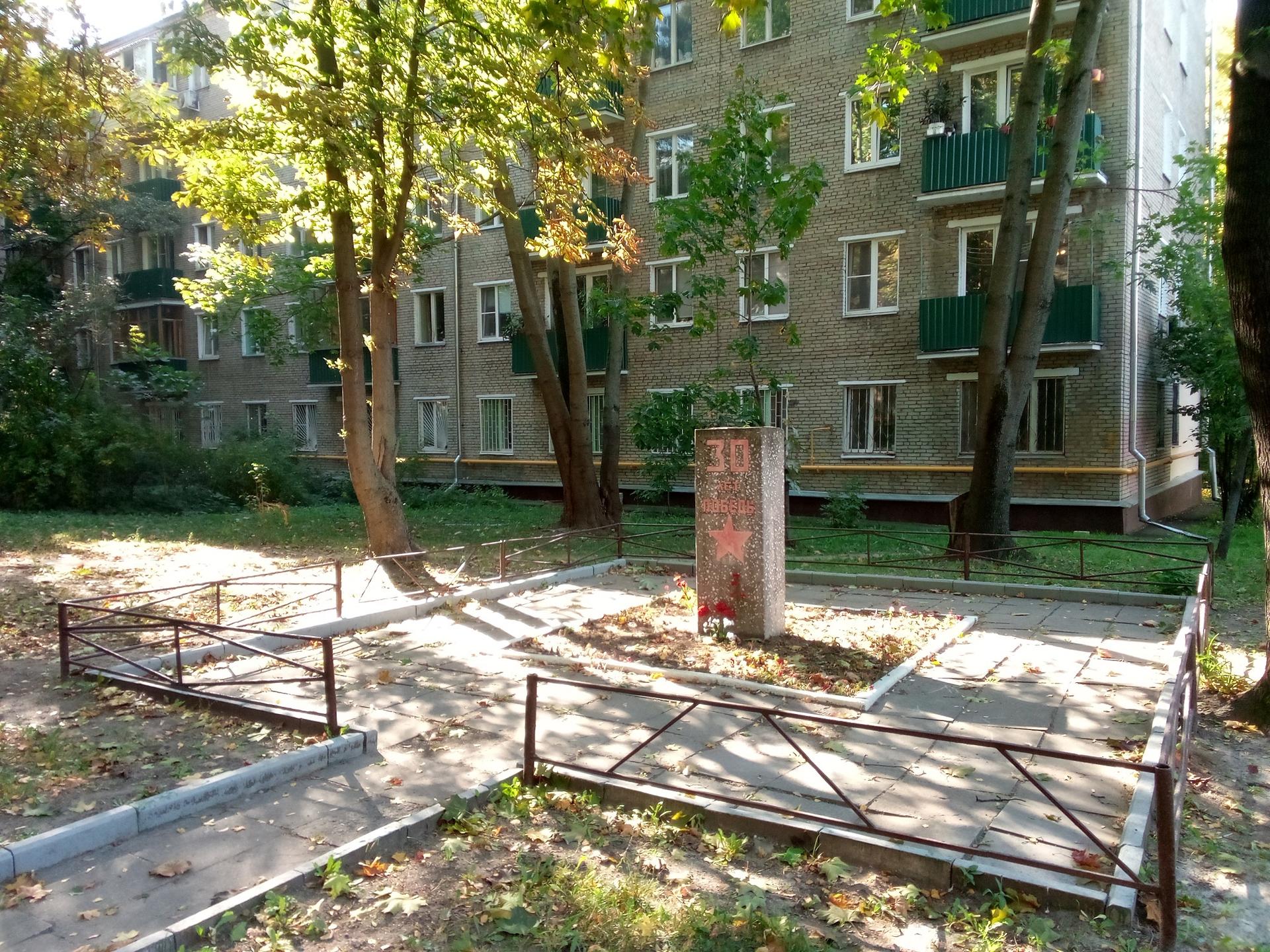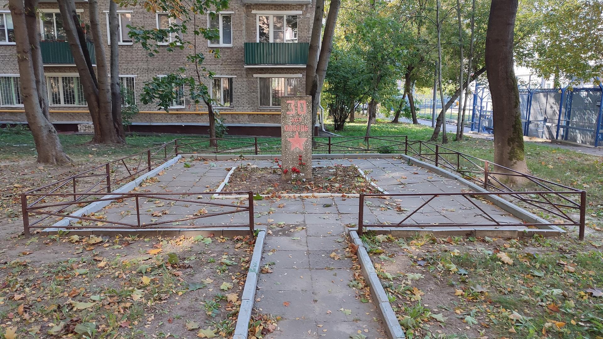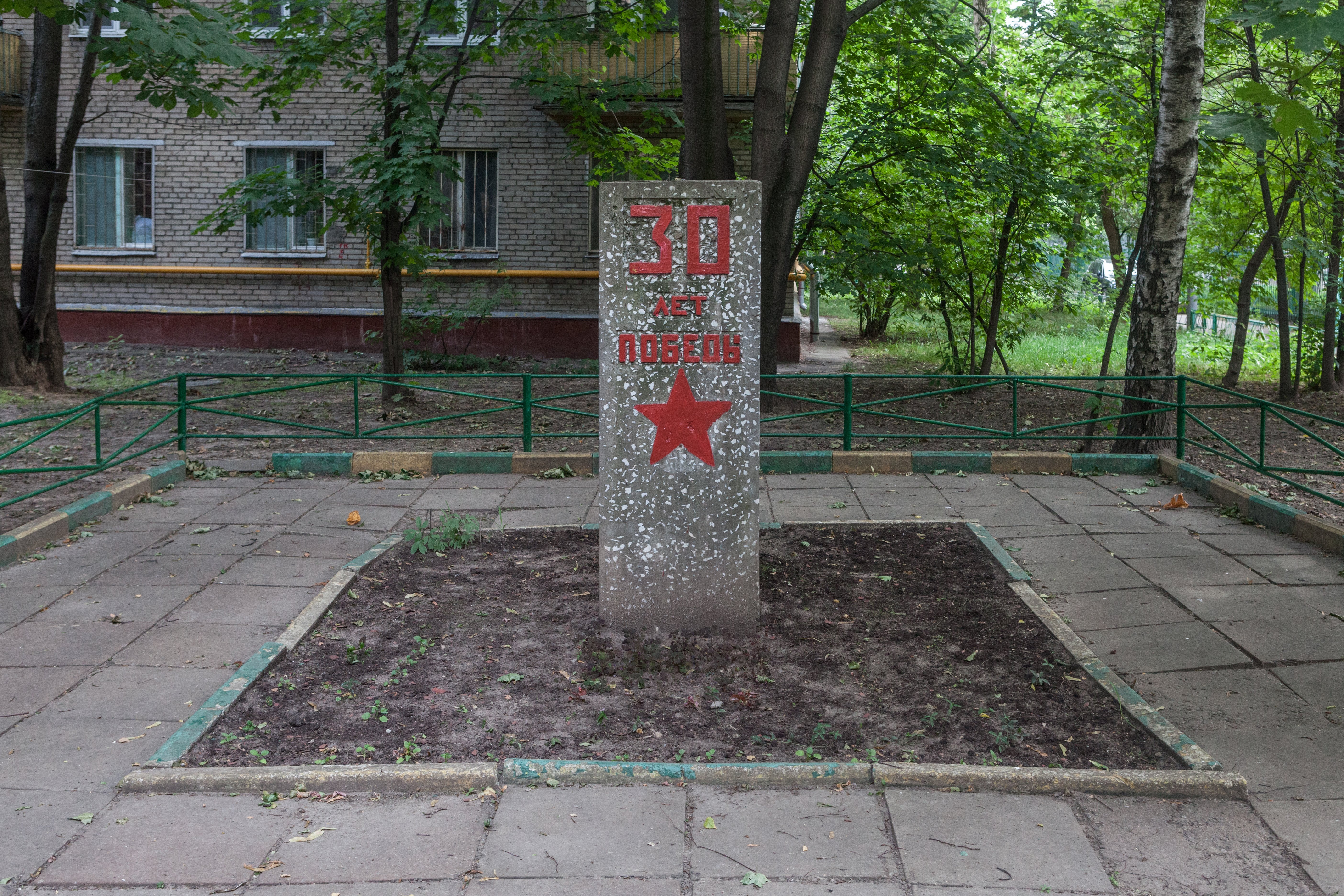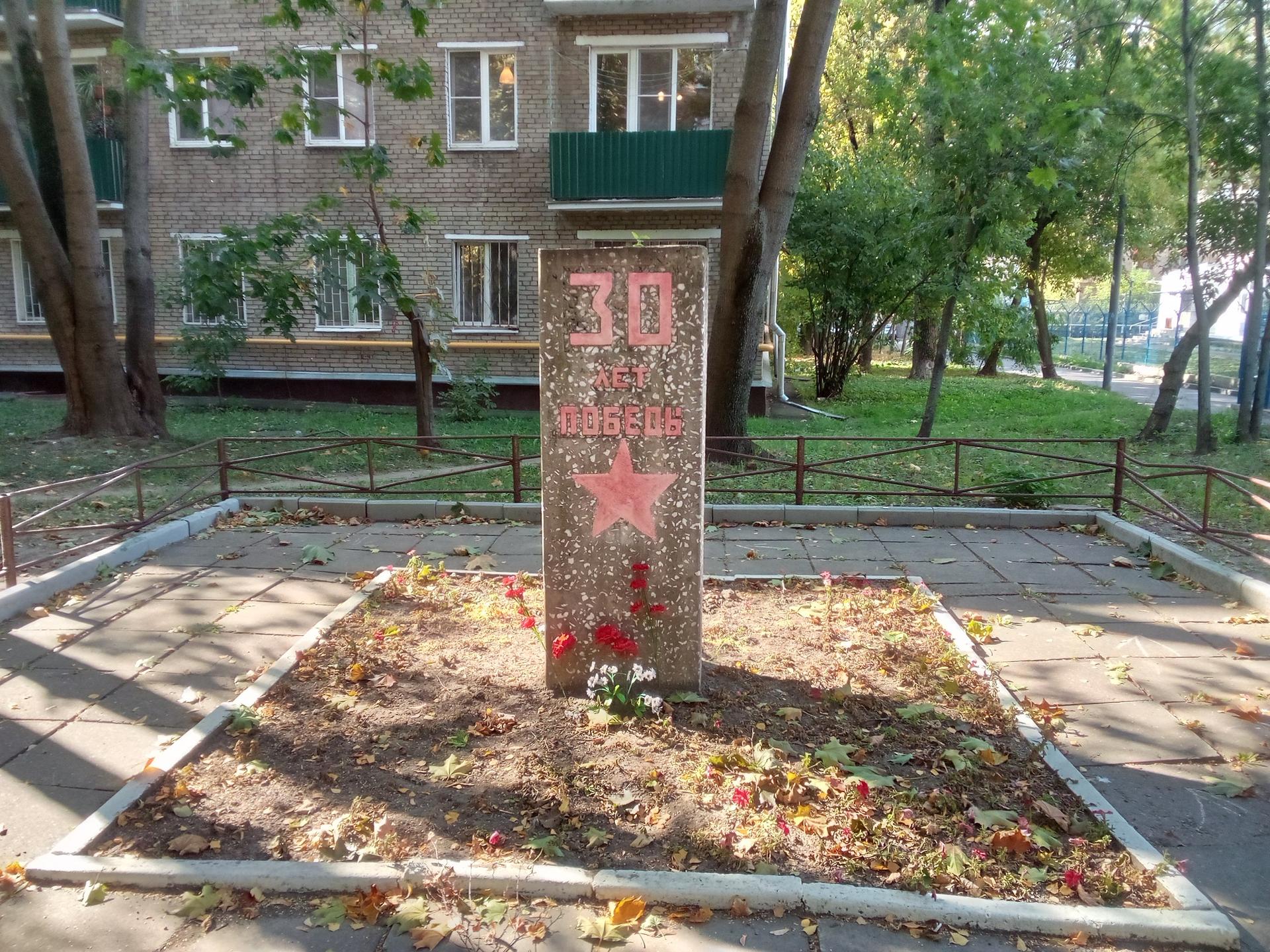 Объект установлен к 30-летней годовщине разгрома фашистской Германии, отмечавшейся 9 мая 1975 г. Представляет собой стелу, выполненную из бетона с включением мраморной крошки. На северо-восточном лицевом фасаде стелы помещен цельнолитой знак из бетона — пятиконечная звезда, надпись цельнолитыми буквами: «30 лет Победы». Звезда и буквы выкрашены в красный цвет.
