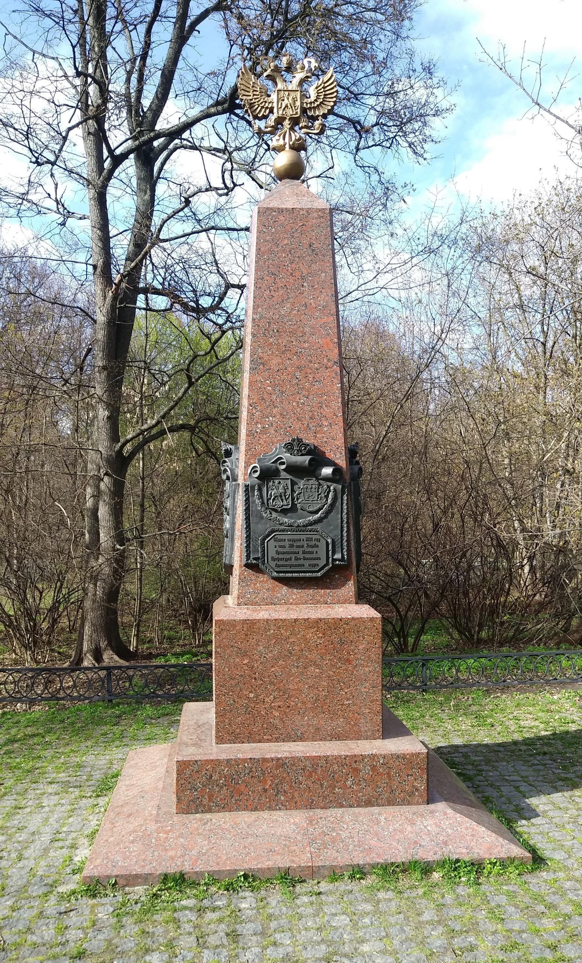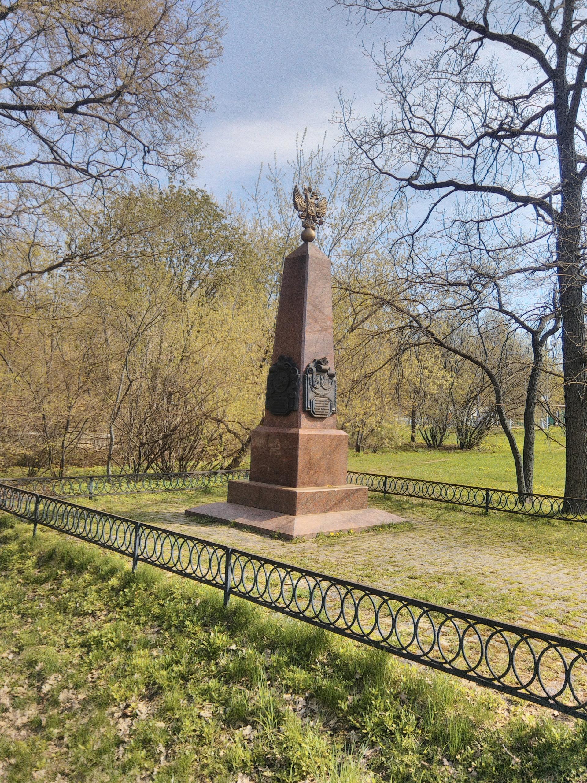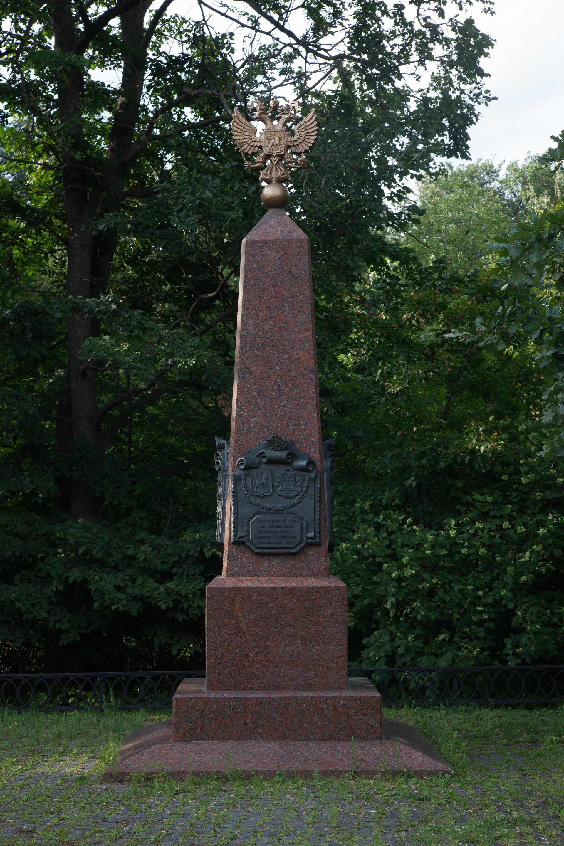 Обелиск установлен в начале Кузьминской улицы (раньше это была главная въездная аллея в усадьбу — Липовая аллея) на месте несохранившегося памятника-обелиска, который был сооружен на месте жилища Петра I и в честь его визитов.