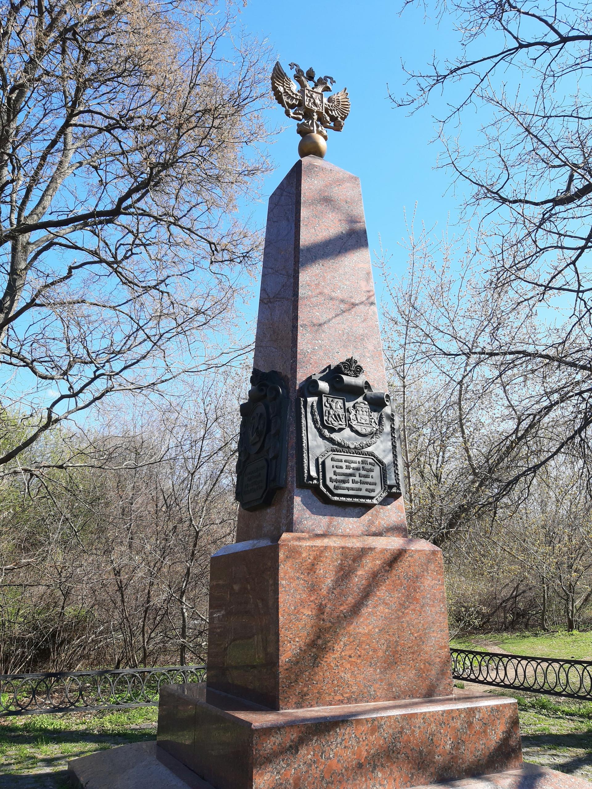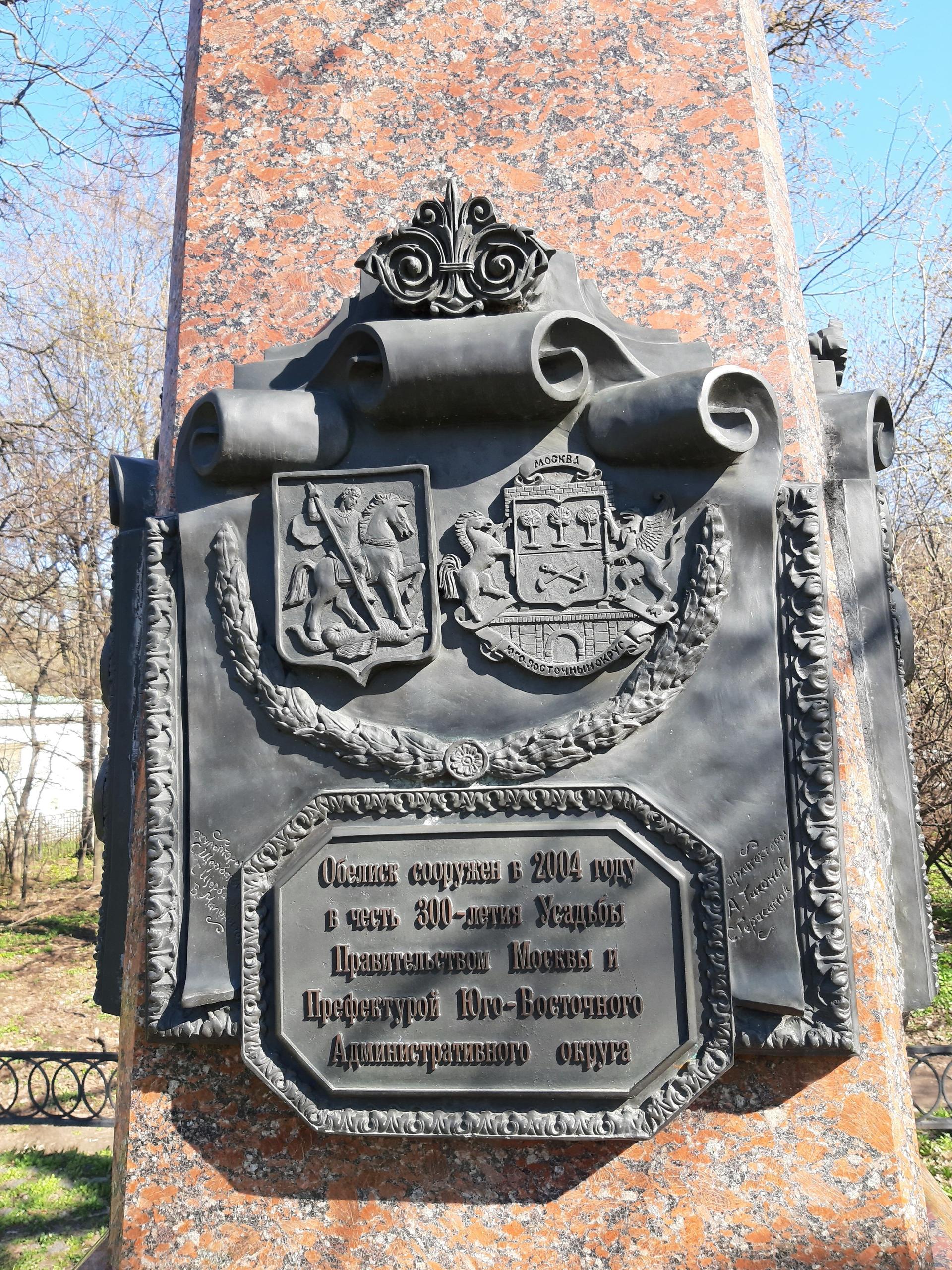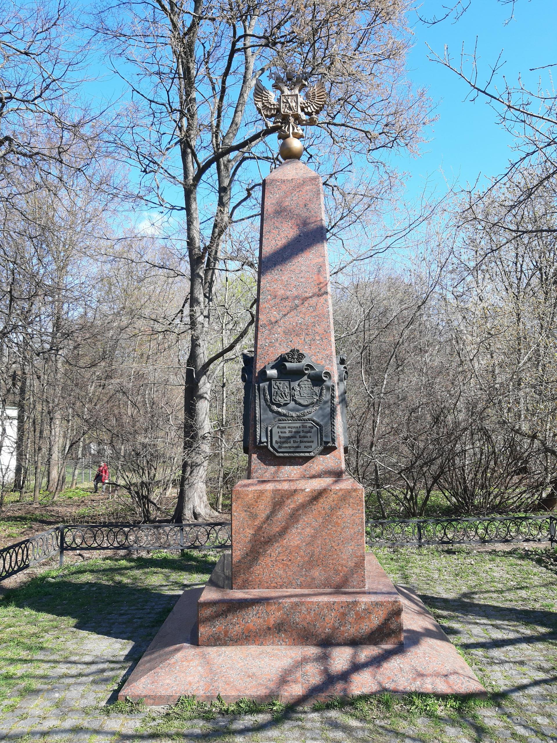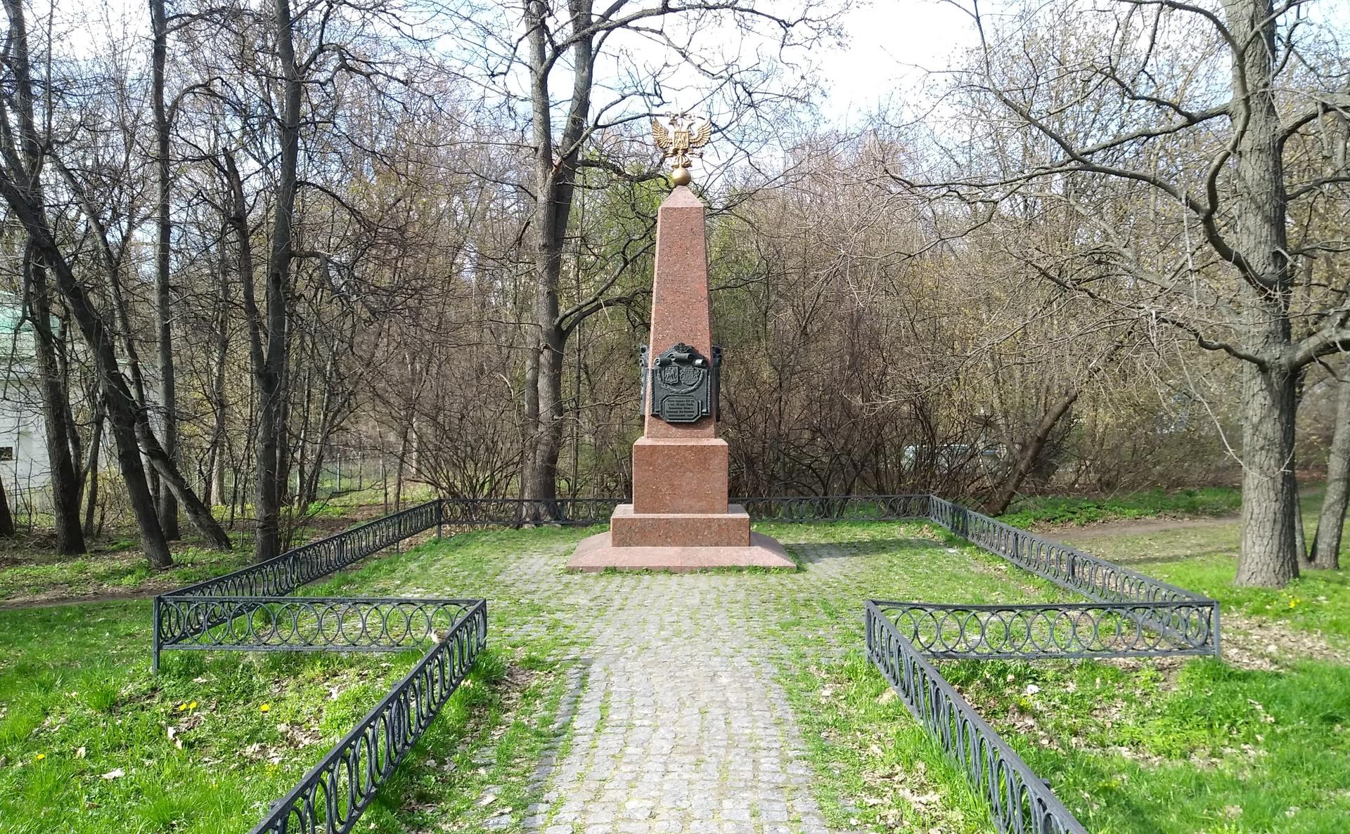 Обелиск установлен в начале Кузьминской улицы (раньше это была главная въездная аллея в усадьбу — Липовая аллея) на месте несохранившегося памятника-обелиска, который был сооружен на месте жилища Петра I и в честь его визитов.