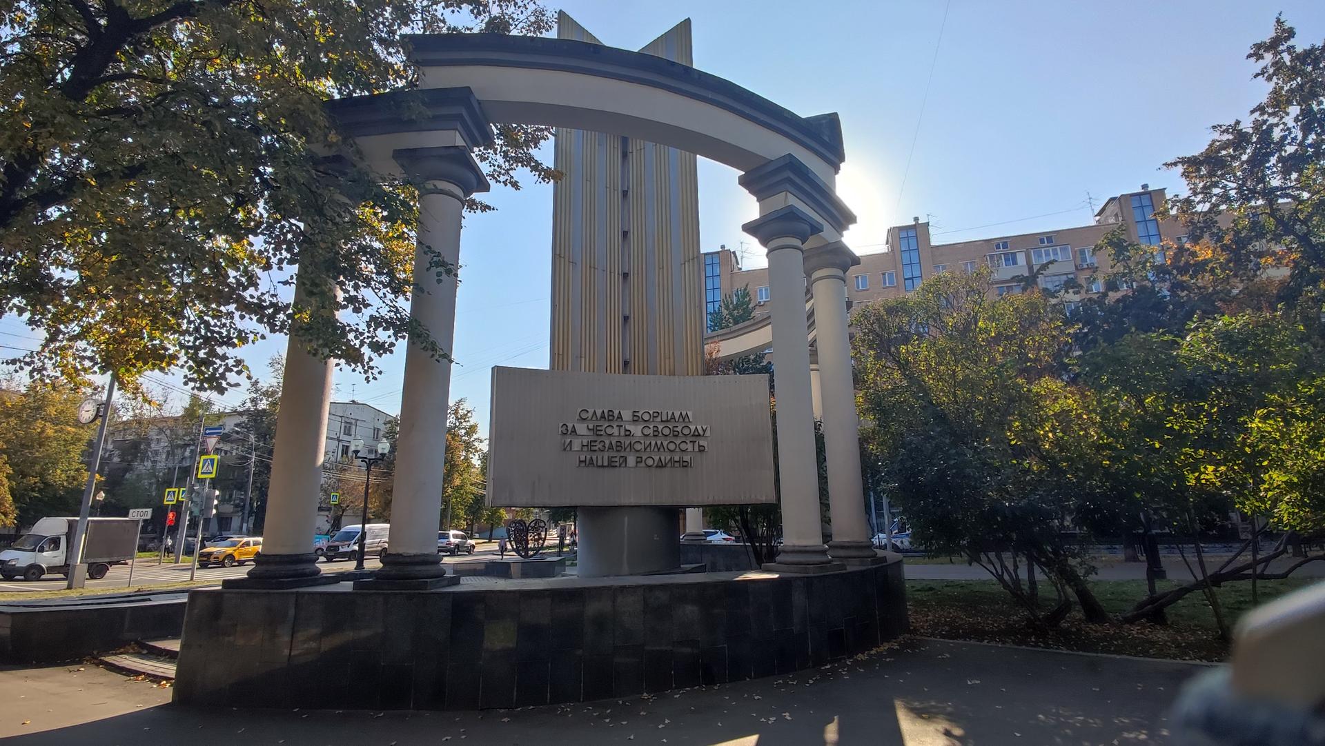 Мемориальный комплекс состоит из стелы и арки с колоннадой. Стела была открыта 4 декабря 1986 г. Арка была смонтирована в 2007–2008 гг. Стела установлена в честь победы советского народа в Великой Отечественной войне 1941-1945 гг. коллективом производственного объединения «Энергоспецмонтаж».