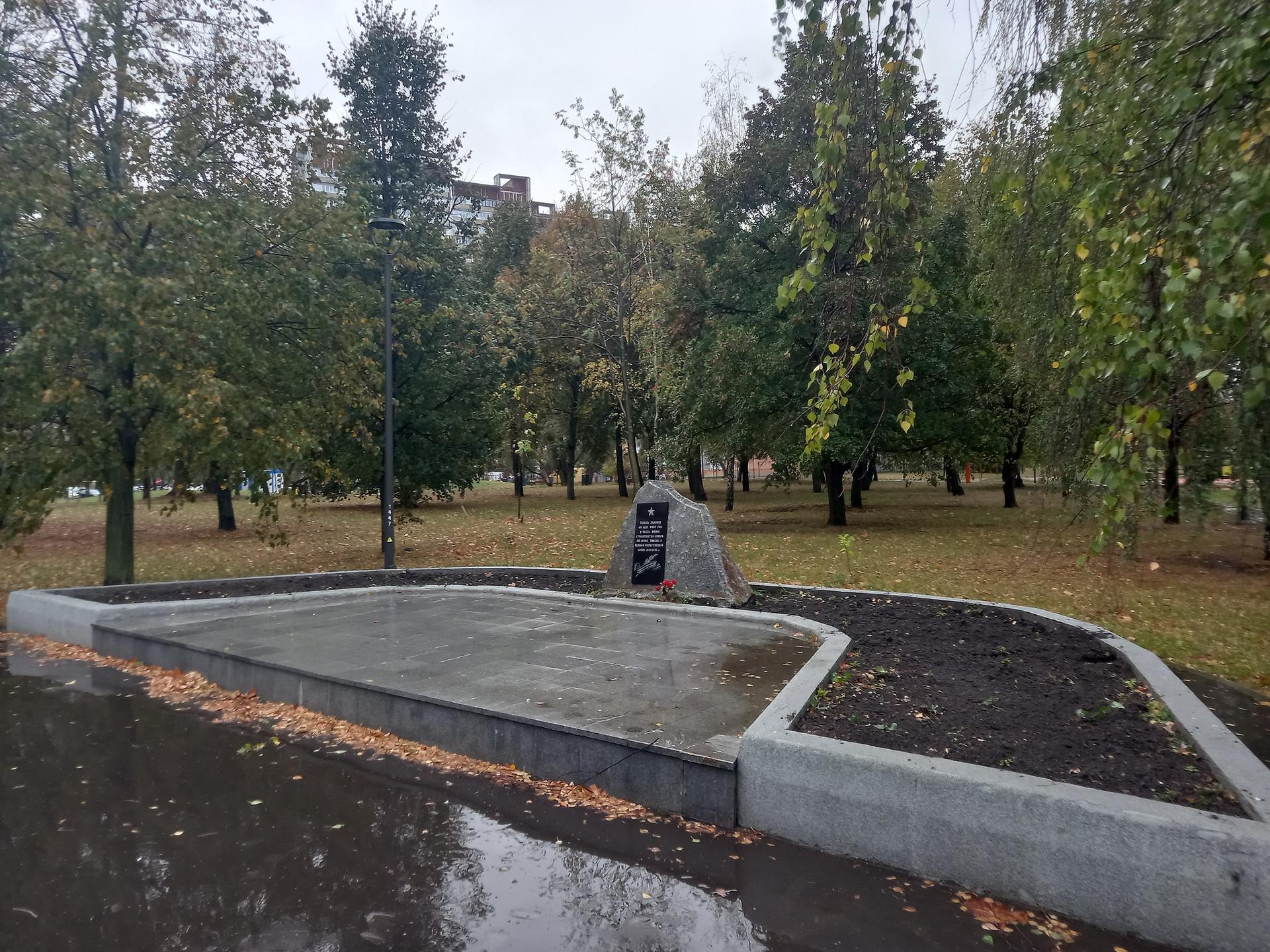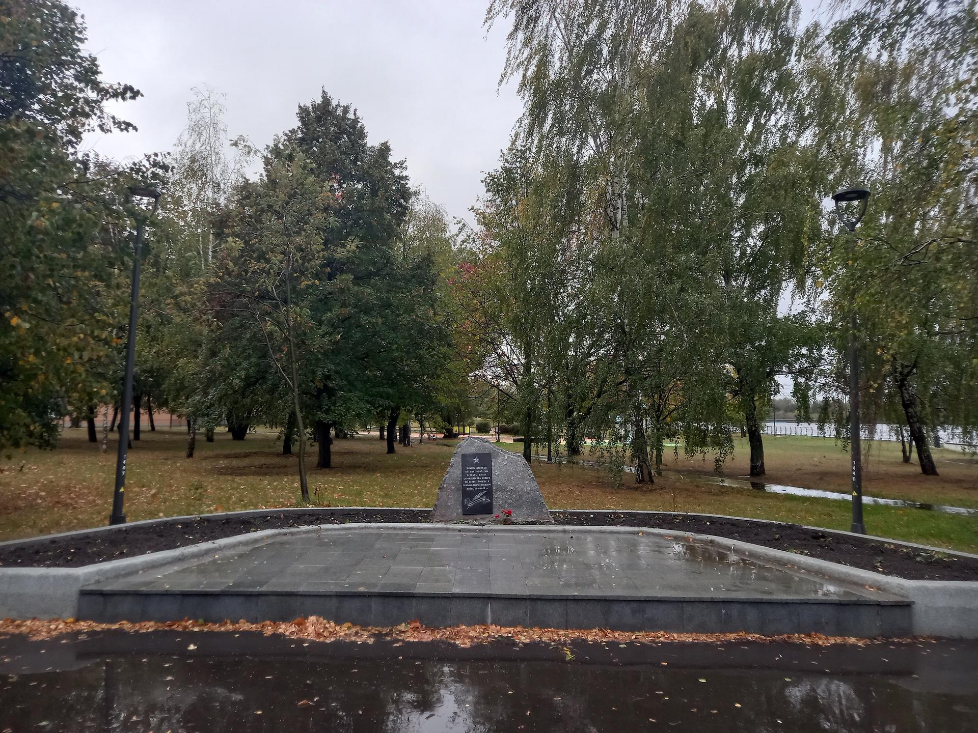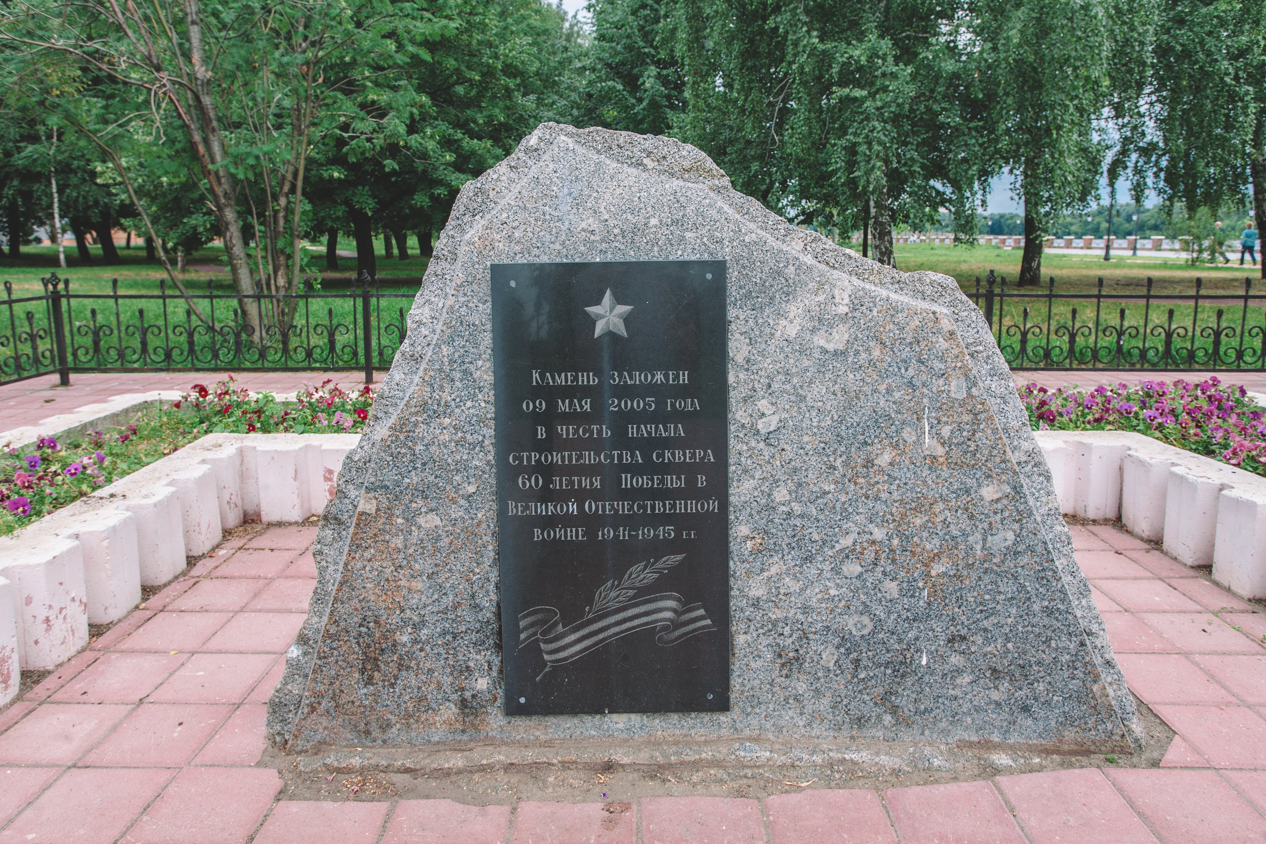 Памятник представляет собой закладной гранитный камень. На северном фасаде присутствует табличка из гранита с прорезной посвятительной надписью: «Камень заложен 9 мая 2005 г. в честь начала строительства сквера 60-летия Победы в Великой Отечественной войне 1941-1945 гг.».