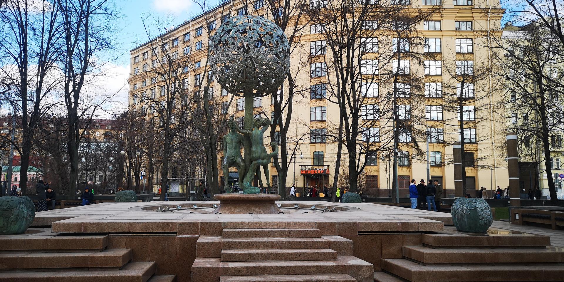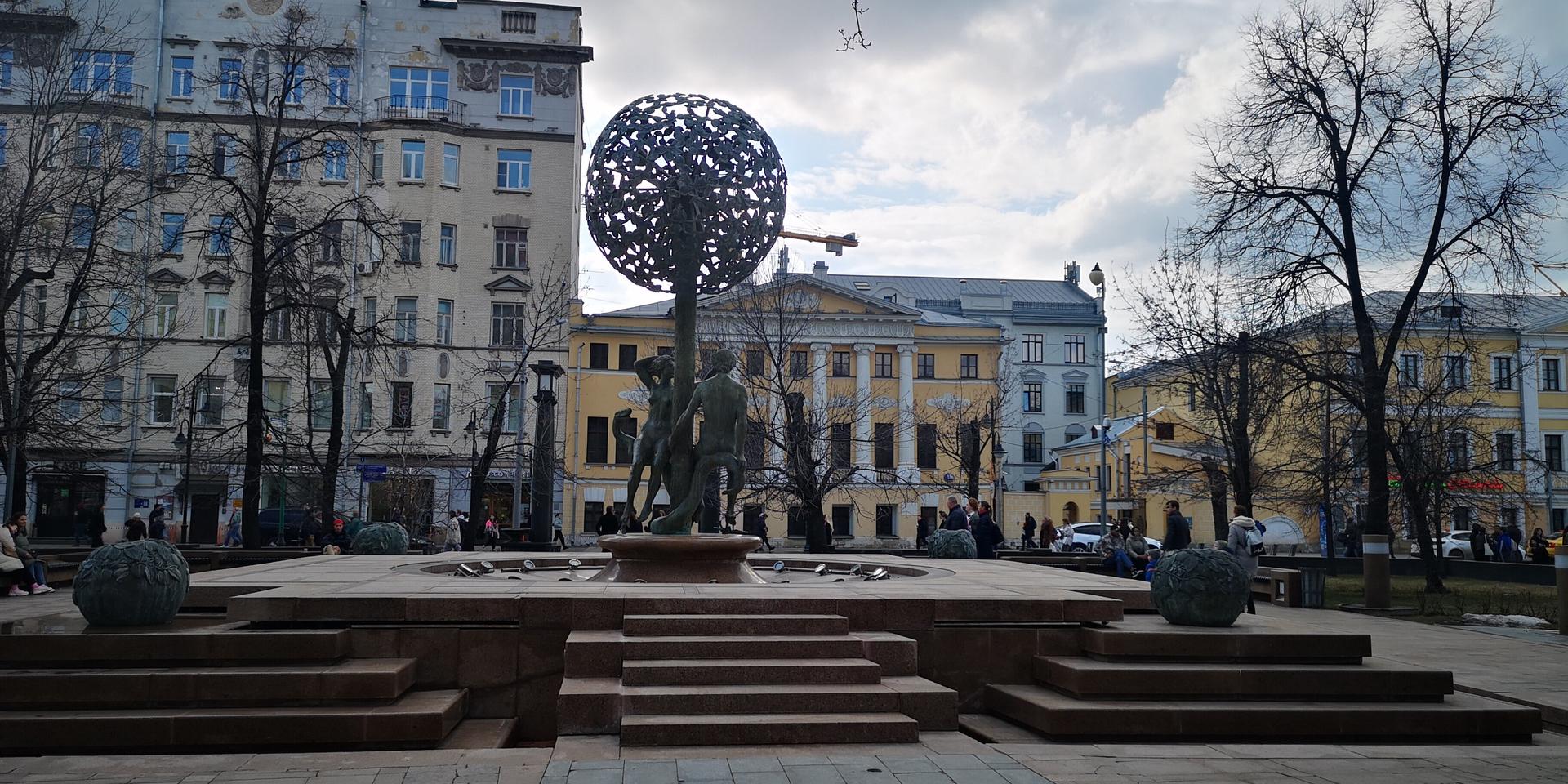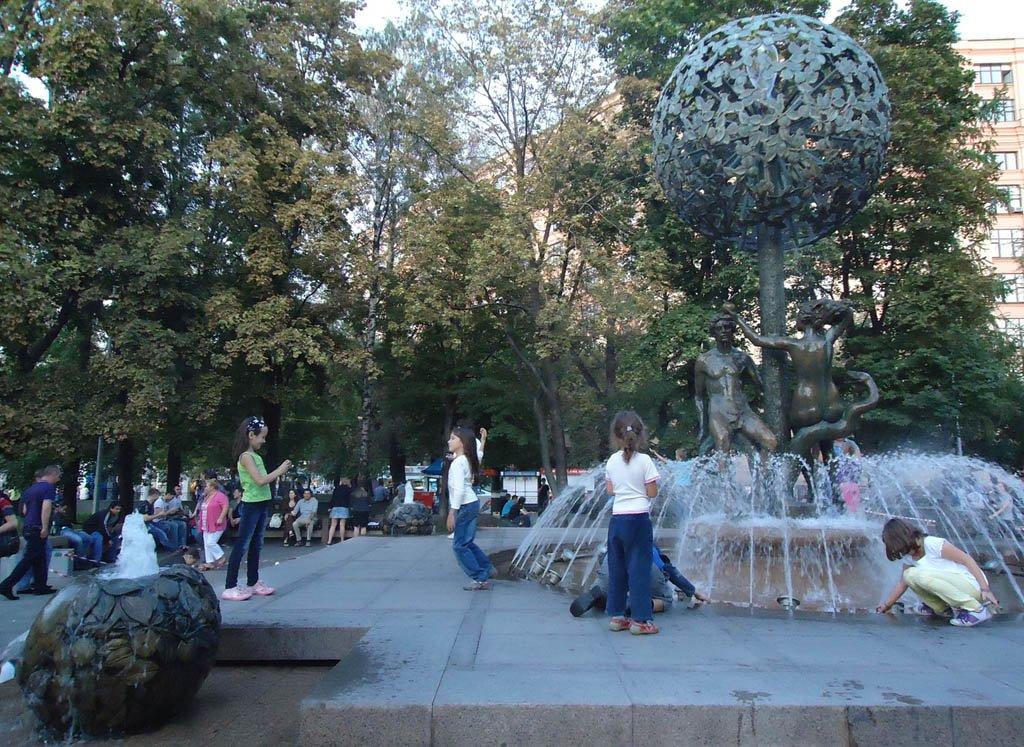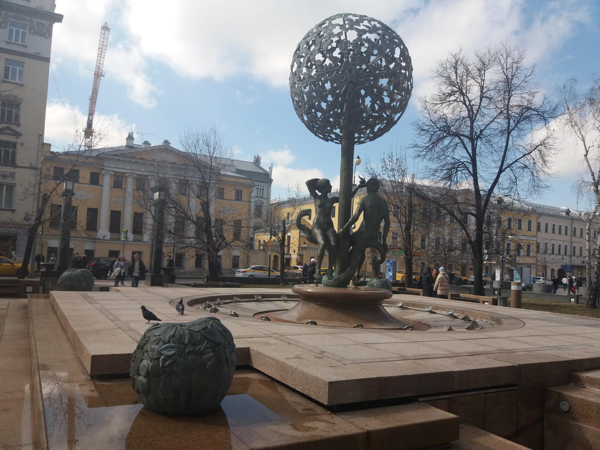 Фонтан начал работать в 2008 году, представляет собой скульптурную композицию, в центре которой расположены фигуры Адама и Евы под райским деревом, которое обвивает змей-искуситель. В ажурной бронзовой кроне дерева сусальным золотом блестят яблоки, хохолки птичек и крылья насекомых. Согласно библейскому сюжету - в руке Евы яблоко искушения.