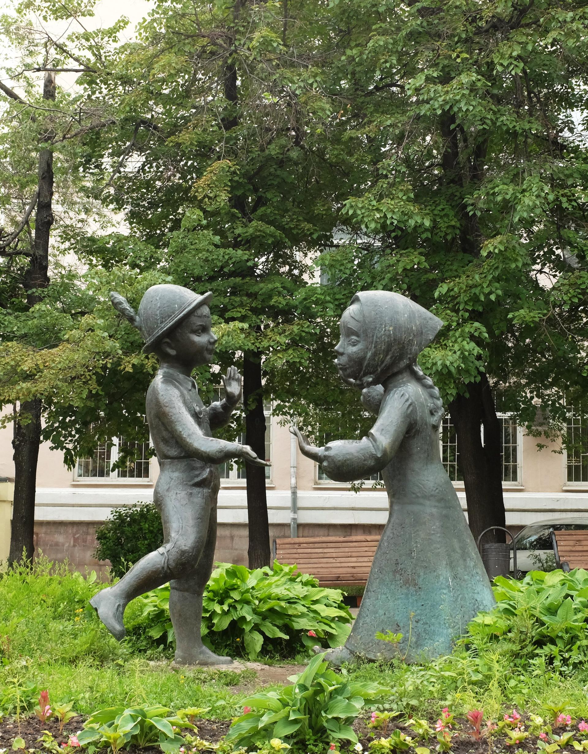Скульптурная композиция изображает баварского мальчика Ганса, одетого в традиционную немецкую одежду, который кружит в танце русскую девочку Аленушку, одетую в национальный сарафан. Композиция была установлена для укрепления послевоенных отношений между Россией и Германией. Рядом с детьми находится памятная доска с надписью на немецком и русском языках.