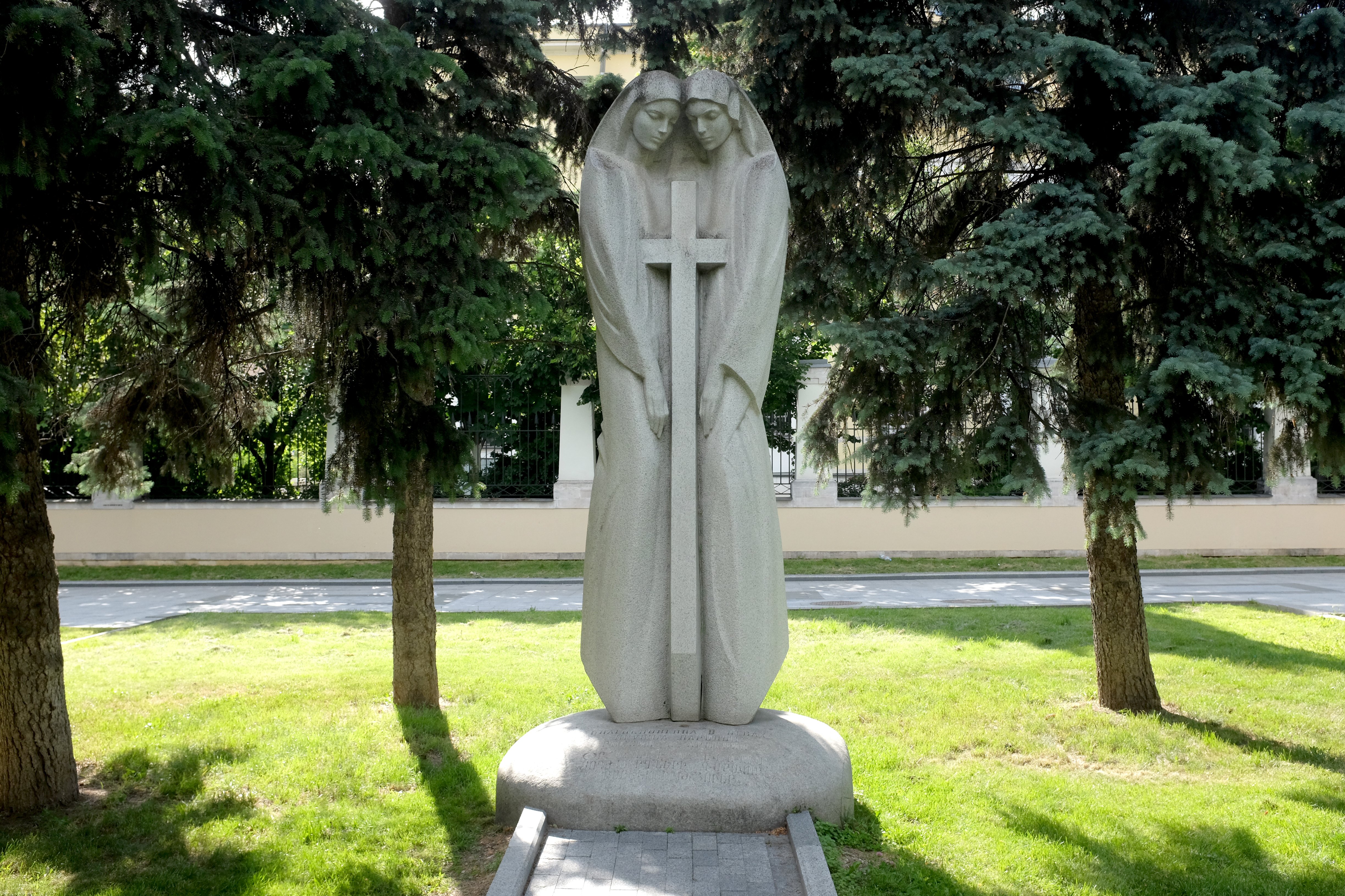 Памятник был открыт в период празднования 850-летия Москвы. Олицетворяет дружбу двух христианских народов. Подарен столице армянской общиной. Скульптура установлена на гранитном постаменте. Две женщины склоняются к кресту между ними, соприкасаясь плечами. На верхней плоскости постамента надпись на русском и армянском языках: «Благословенна в веках дружба народов России и Армении».