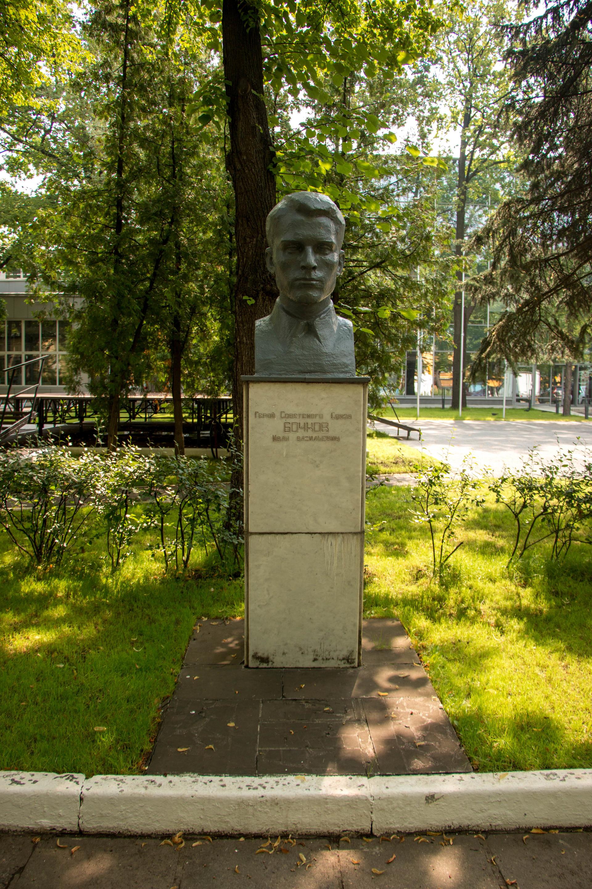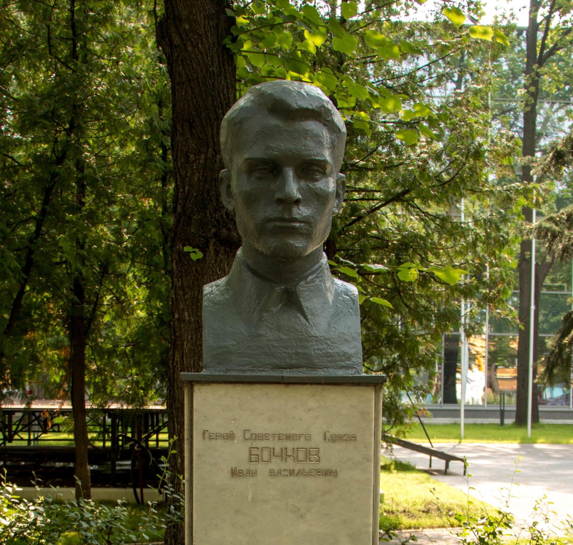 Погрудный бюст И. В. Бочкова, окрашенный серой краской, установлен на облицованном мрамором постаменте. Молодой летчик, изображенный с пор-третным сходством, представлен в военной форме бойца РККА времен ВОВ. Памятная надпись на северной лицевой стороне постамента: «Герой Советского Союза Бочков Иван Васильевич». Бюст является частью скульптурного ансамбля памятников-бюстов героев-заводчан завода «Калибр».
