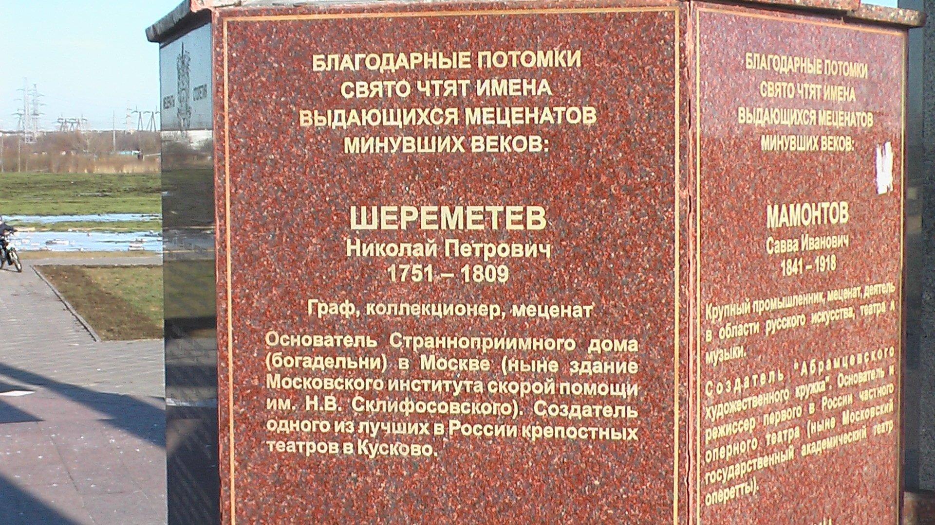 Памятник посвящен меценатам, которые внесли большой вклад в историю России. Они на собственные средства строили больницы, школы, библиотеки, музеи, приюты.