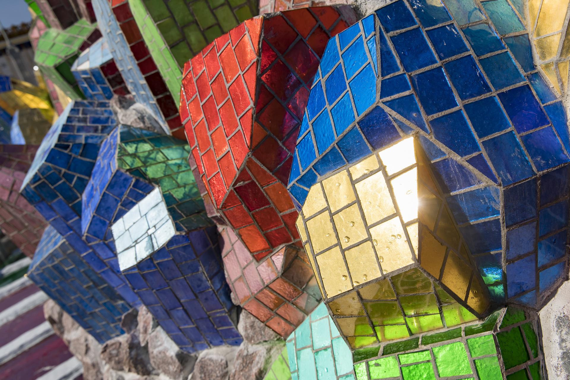 Эффект сверкающих самоцветов создаётся за счёт использования смальты — мозаики из металлической фольги, запаянной между пластинками цветного стекла. В результате получается водостойкий декоративный материал, который хорошо отражает свет. В середине XX века старинная технология производства смальты была возрождена в СССР, и этот недорогой материал стал активно использоваться в отделочных работах.