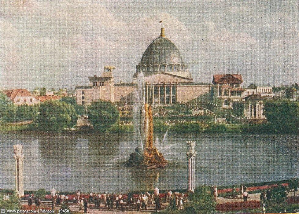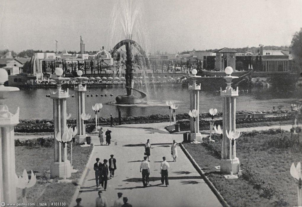 Первый фонтан «Колос» был установлен в 1939 году. Фонтан «Колос» был создан Олтаржевским под впечатлением от фонтана «Кактус», который он увидел во время Колониальной выставки в Париже 1931 года. Над фонтаном вместе с Олтаржевским работал архитектор Игорь Михайлович Петров — будущий создатель Главного ботанического сада РАН. Фонтан изготовили из бетона и стали и отделали медью. Однако, медные листы темнели и разрушались, поэтому этот «Колос» был демонтирован в 1949 году.