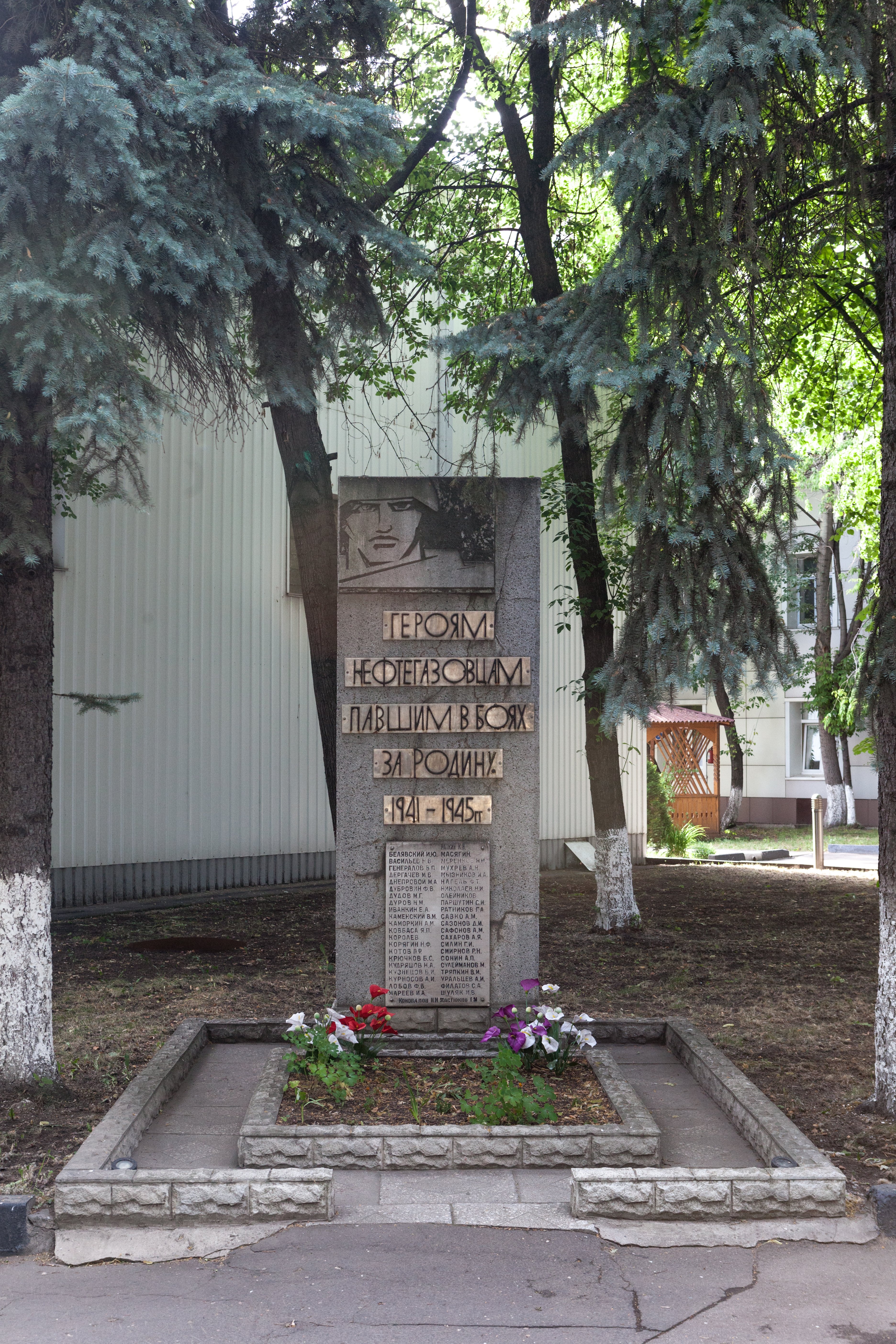 Памятник «Героям-нефтегазовцам» установлен на территории завода «Нефтегаз» в память о рабочих завода, погибших в Великой Отечественной войне. Объект представляет собой стелу, в верхней части которой изображен воин в каске, ниже закреплены мраморные посвятительные таблички.