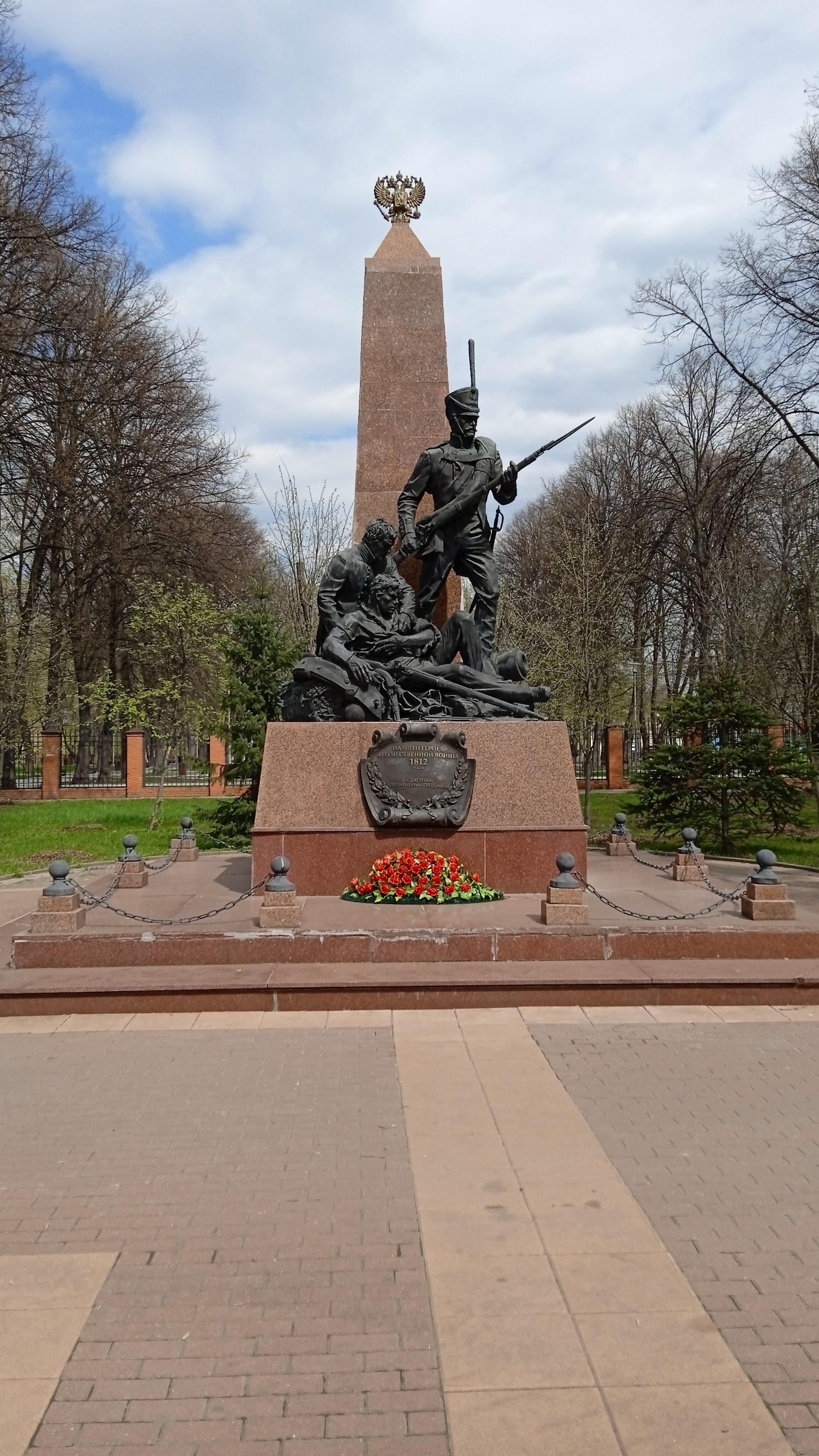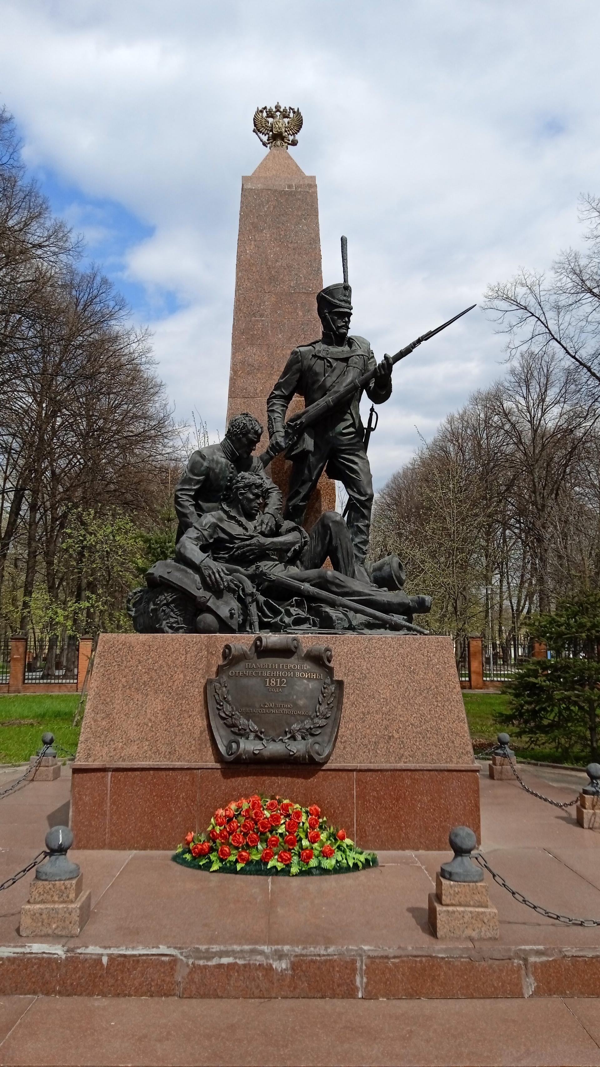 Под скульптурной композицией — картуш с надписью-посвящением: «Памяти героев Отечественной войны 1812 г. к 200-летию от благодарных потомков». Вдоль центральной аллеи установлены стелы с изображениями и краткой информацией об истории близлежащих памятников архитектуры времен 1812 г.