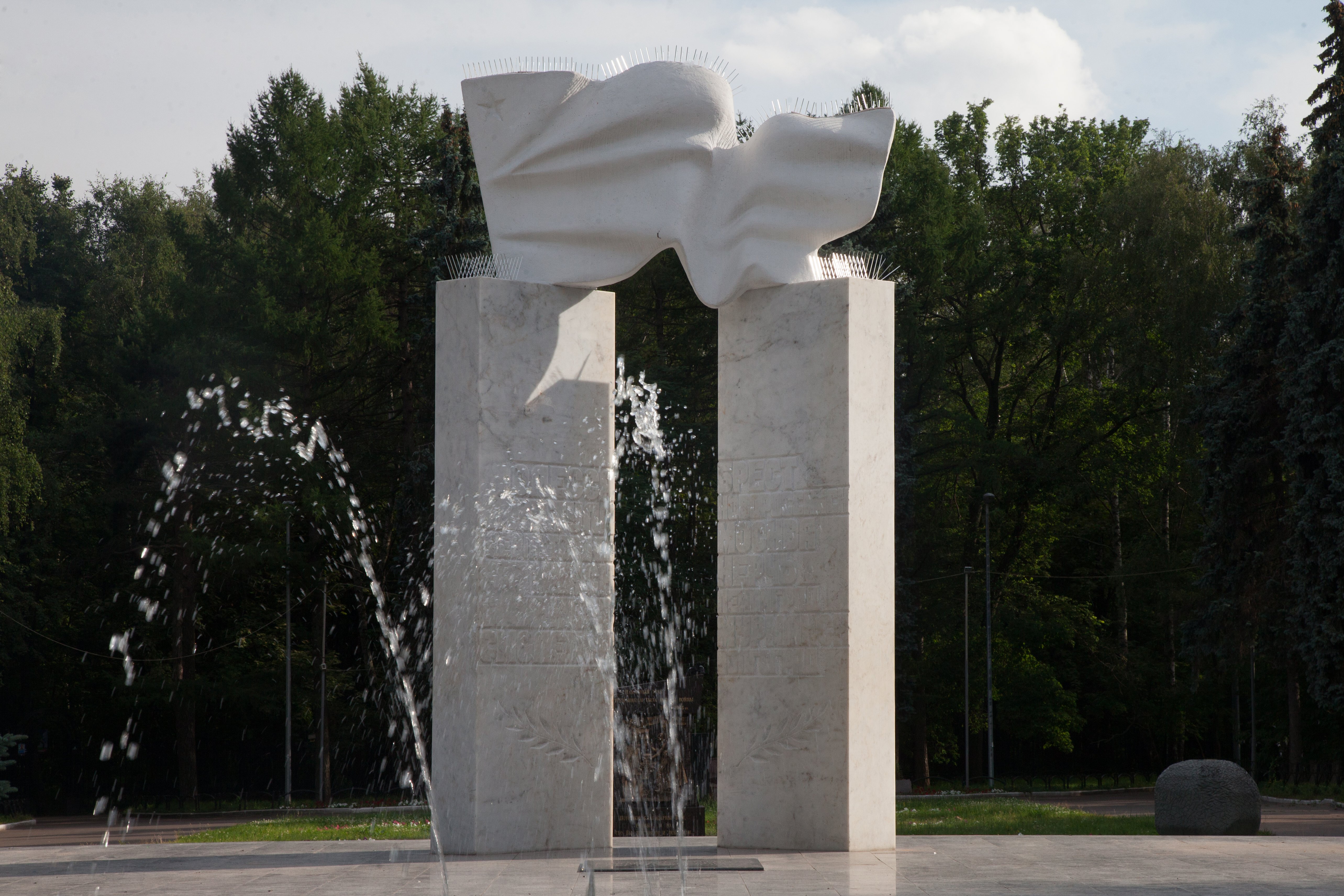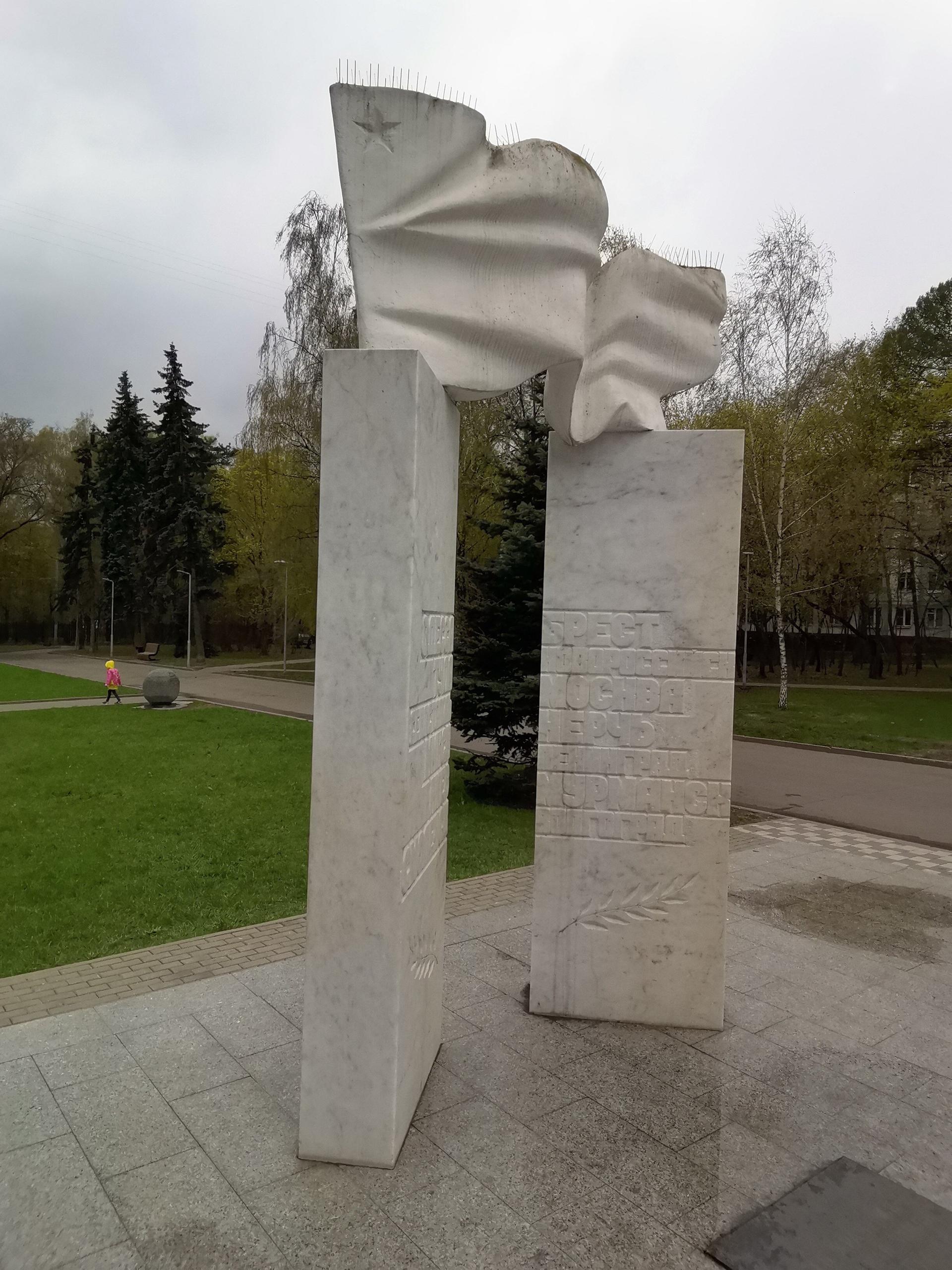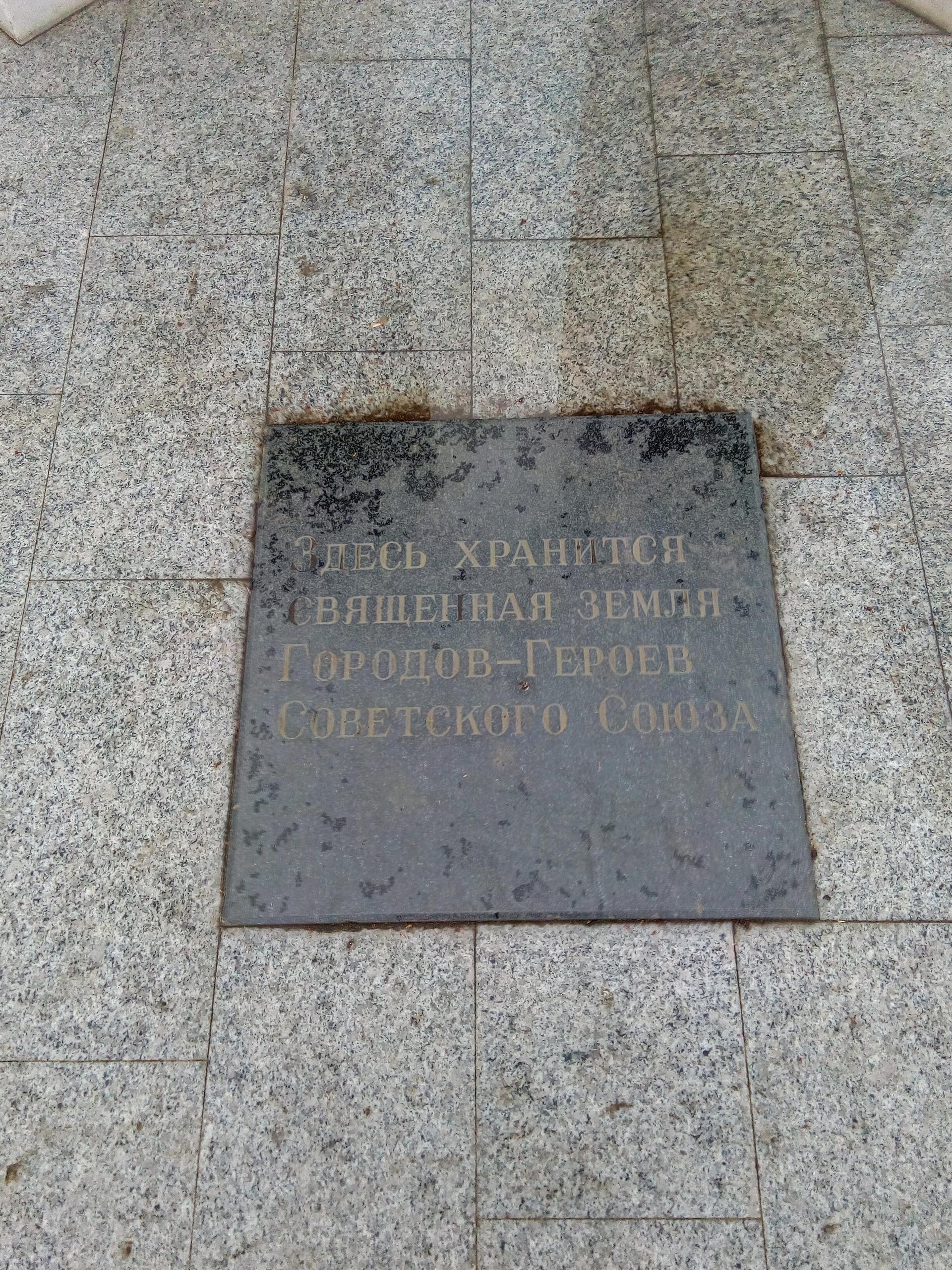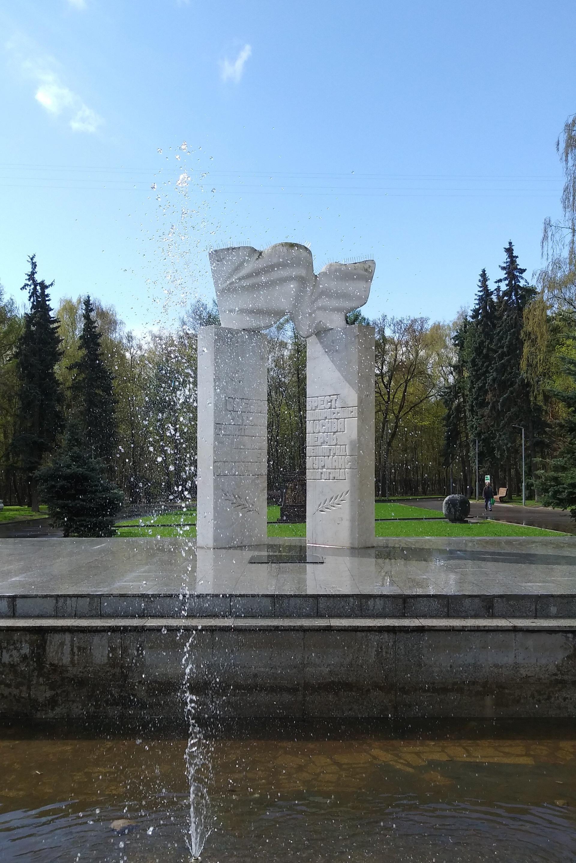 Мемориальный комплекс «Города-герои» представляет собой монумент из двух мраморных пилонов, на которых установлен развевающийся флаг. На каждом из пилонов высечены названия городов-героев Советского Союза.