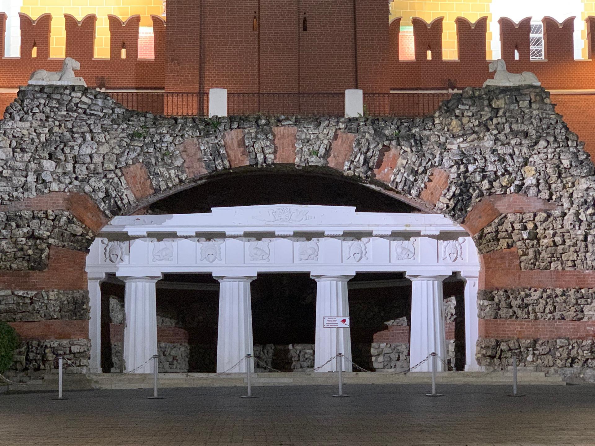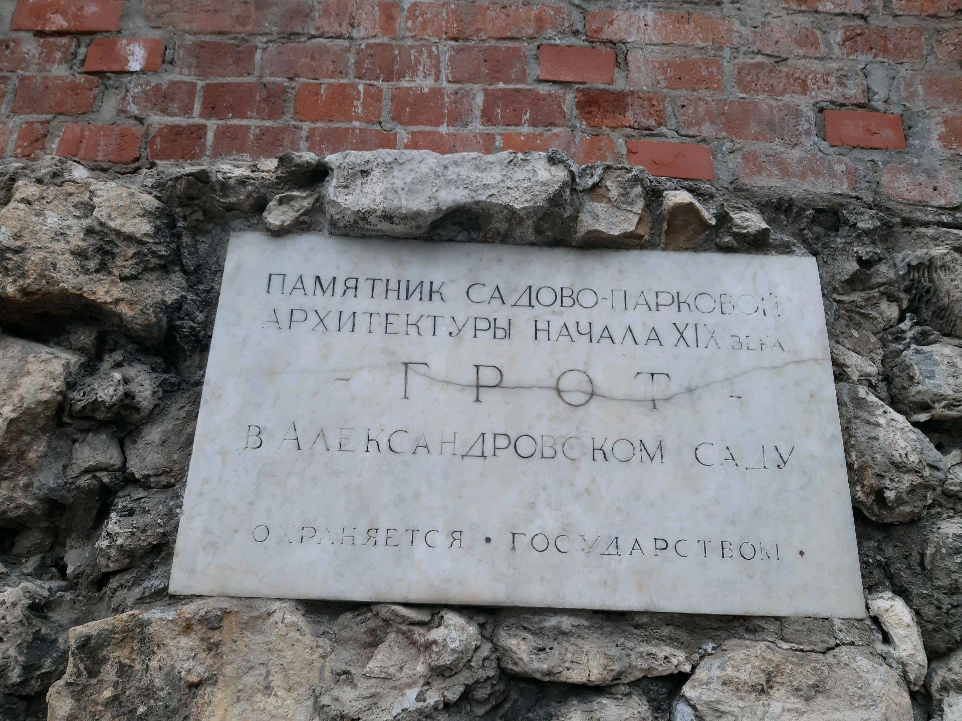 Грот был спроектирован архитектором Осипом Ивановичем Бове (1784-1834) во время его работы над созданием Кремлевских садов, названных Александровскими в 1856 году.