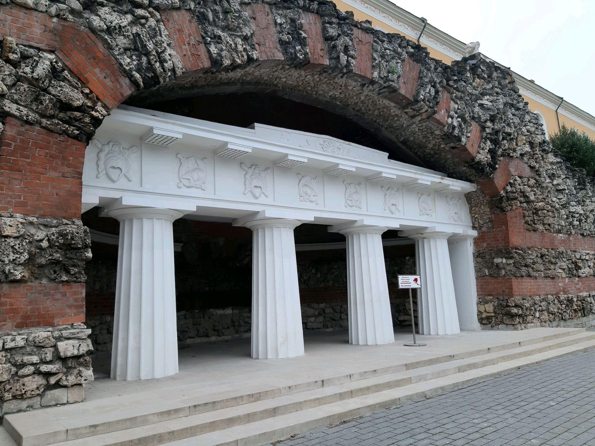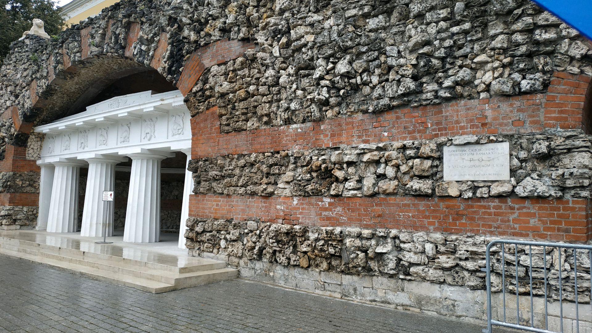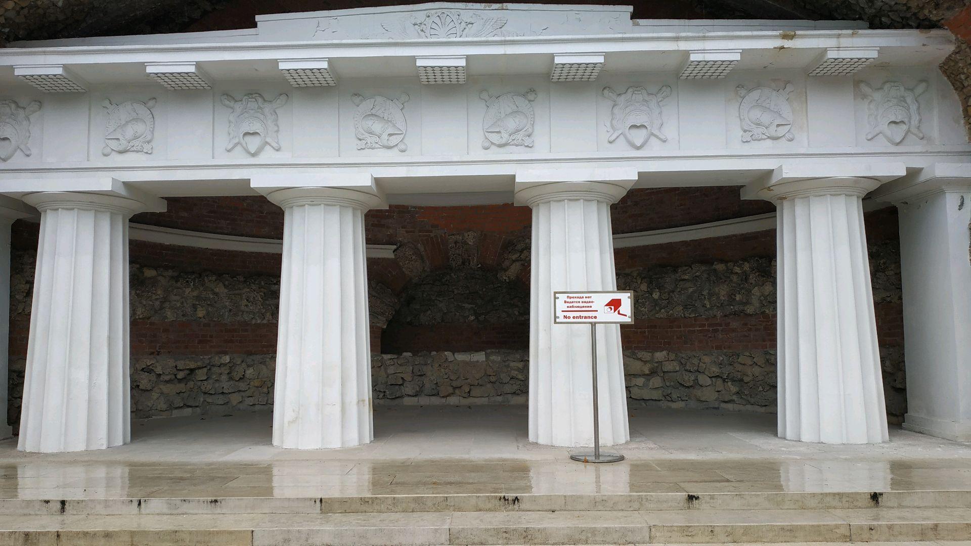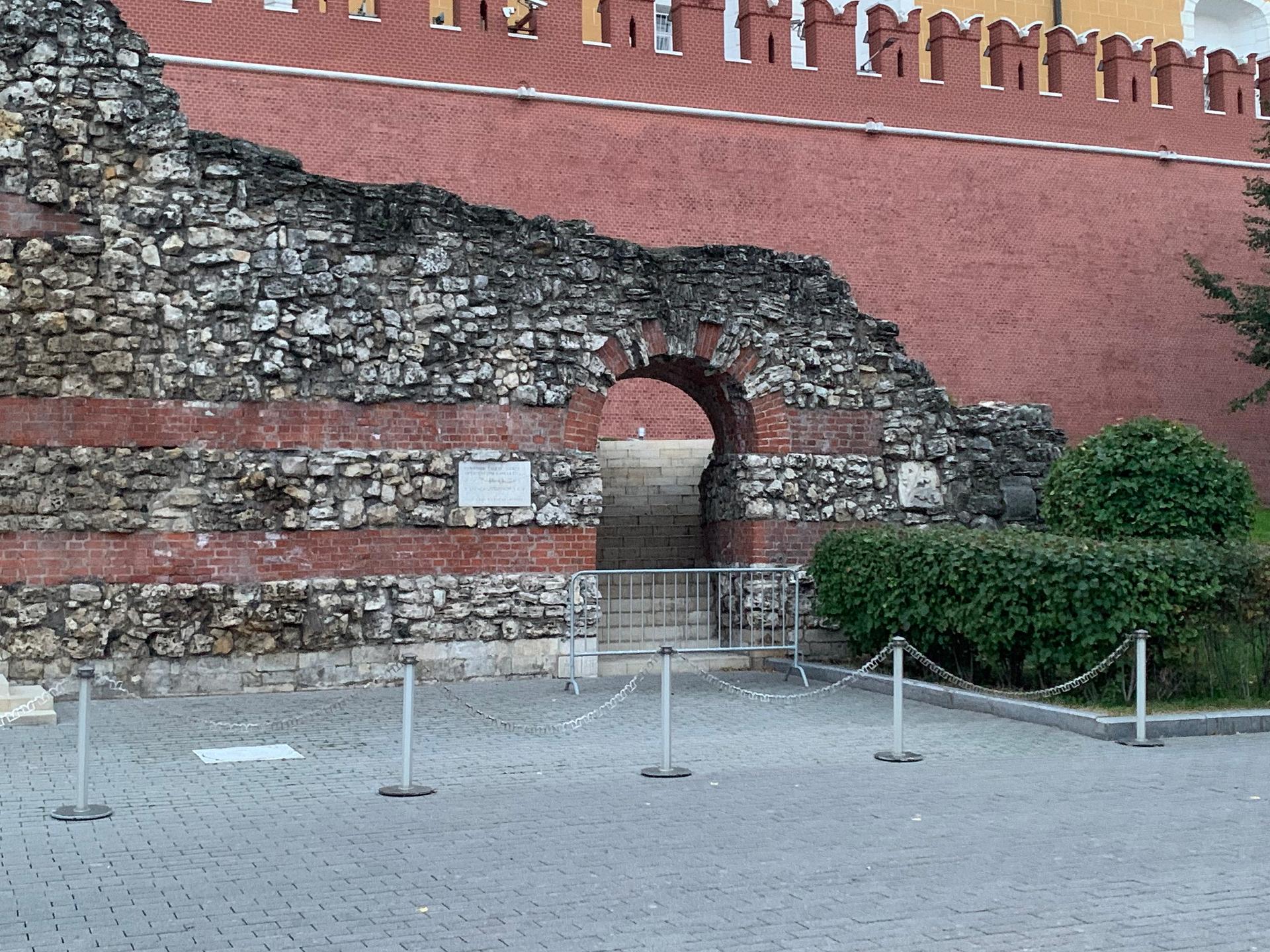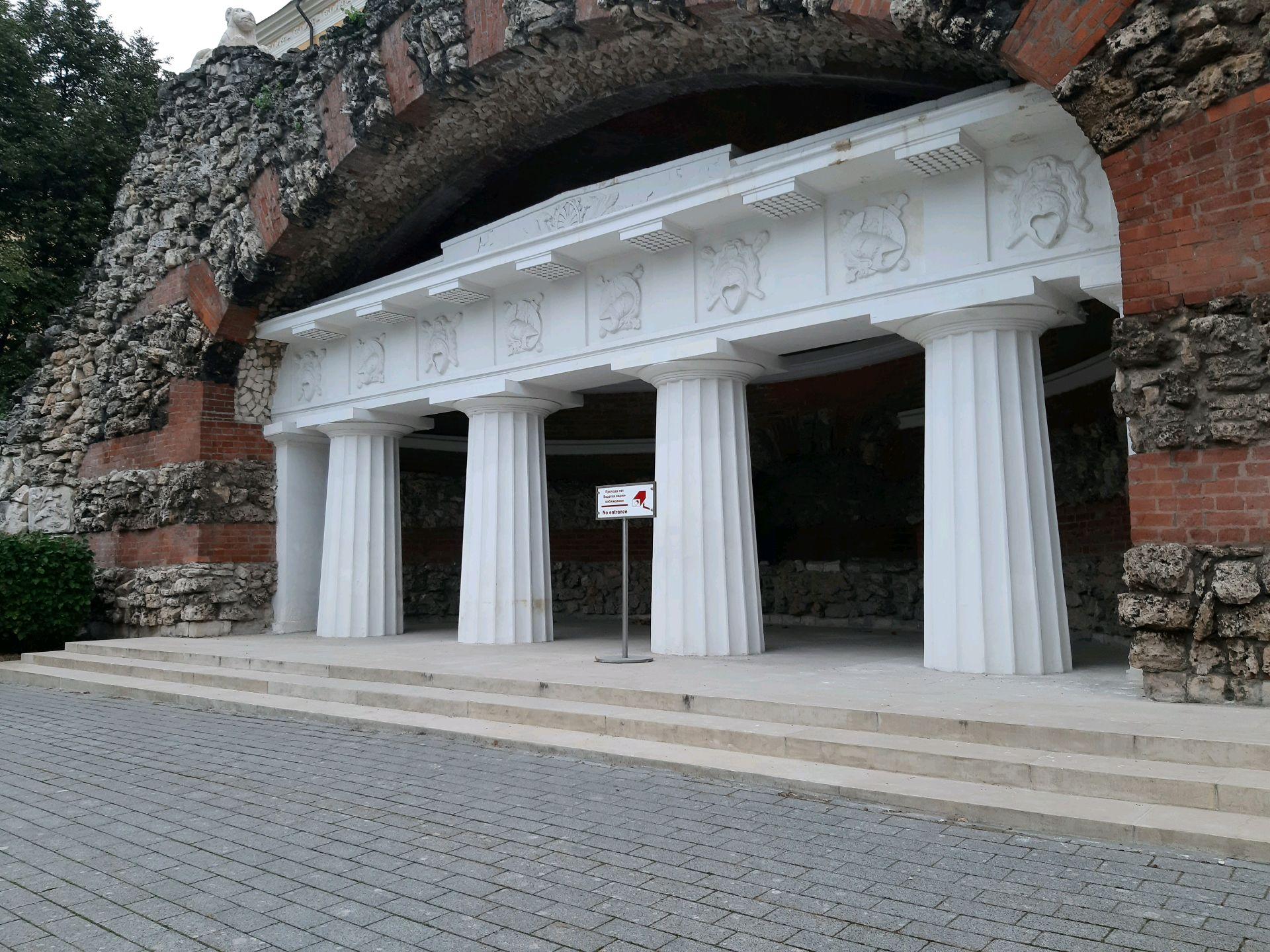 Согласно путеводителю по Москве 1831 года, в саду «по самой середине к стороне стены сделано земляное возвышение в виде природной горы. На оной со вкусом сделанный павильон (где обыкновенно по воскресеньям играет полковая музыка), в самой горе сделан прекрасный грот в образе развалин; по сторонам грота видны разные обломки пьедесталей, колон и пр.: перемешанныя с огромные каменными ядрами, которые употреблялись в древности вместо чугунных».