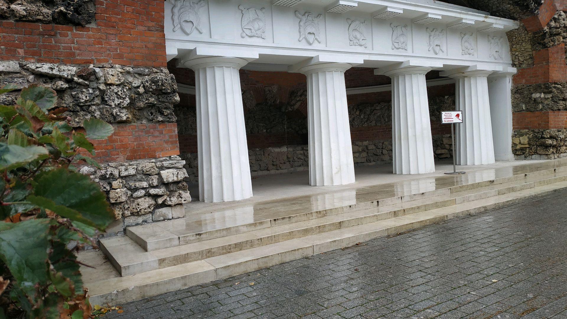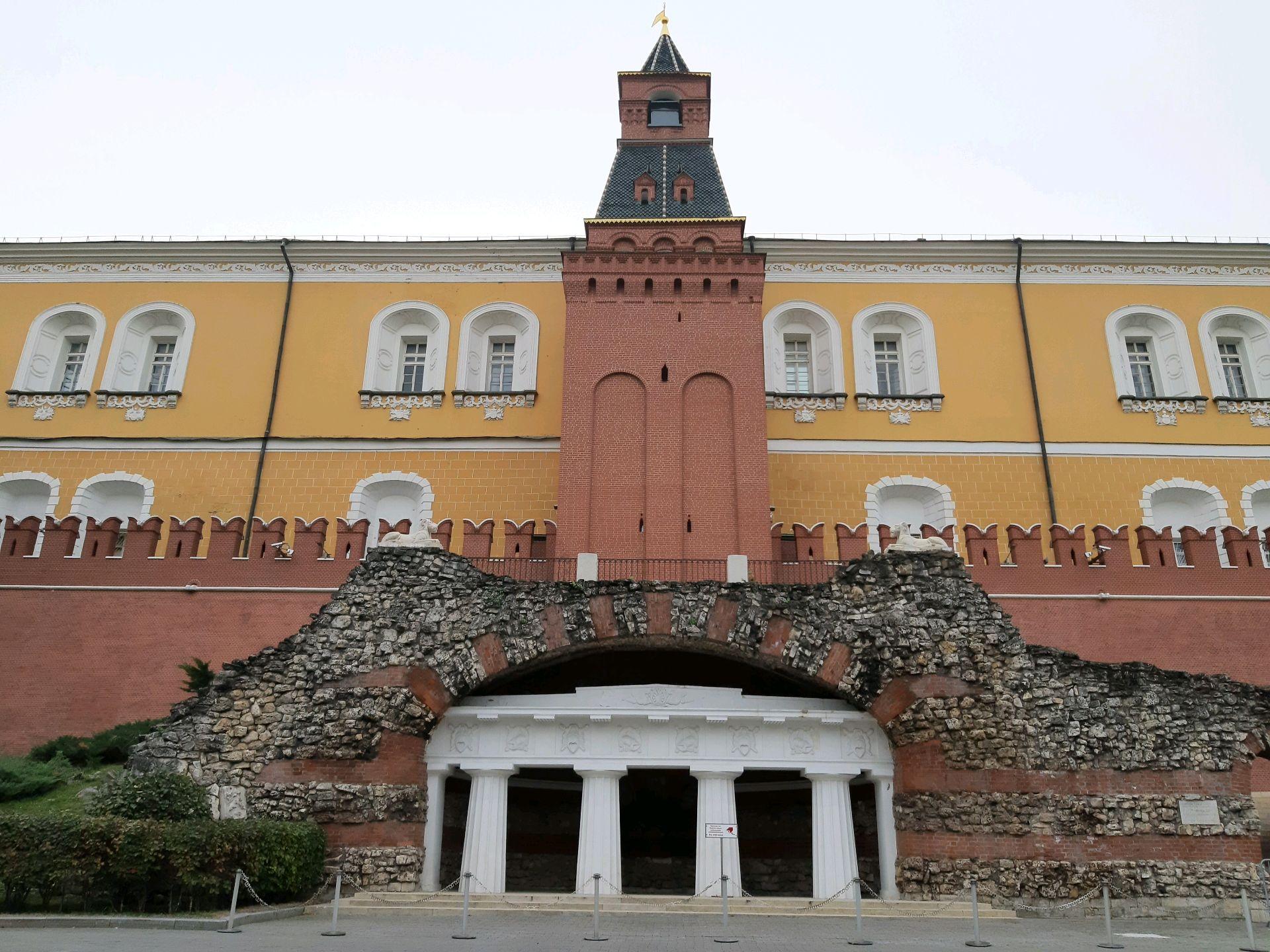 Бове расположил грот у Средней Арсенальной башни Кремля напротив Манежа. Грот представляет собой арку, в которую вписан антаблемент, поддерживаемый четырьмя колоннами дорического ордера с каннелированными стволами. Строгие ордерные формы контрастно сочетаются с нагромождением камней и обломков зданий, разрушенных в ходе войны и пожара. Грот является прекрасным памятником стиля ампир: строгая композиция дополняется декором с изображением военных доспехов, так называемой арматурой. Она вписана в метопы фриза.