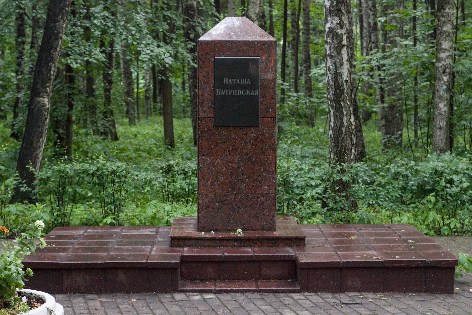 Памятник представляет собой невысокую стелу, облицованную красным гранитом. На лицевой стороне закреплена гранитная доска с надписью прорезными буквами: «Наташа Качуевская».