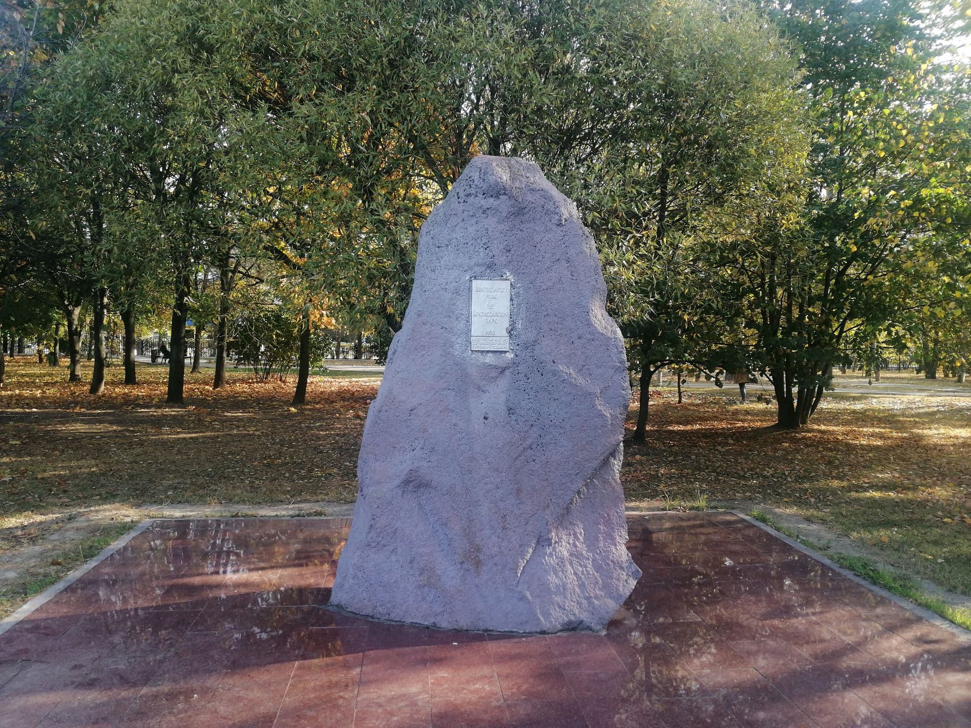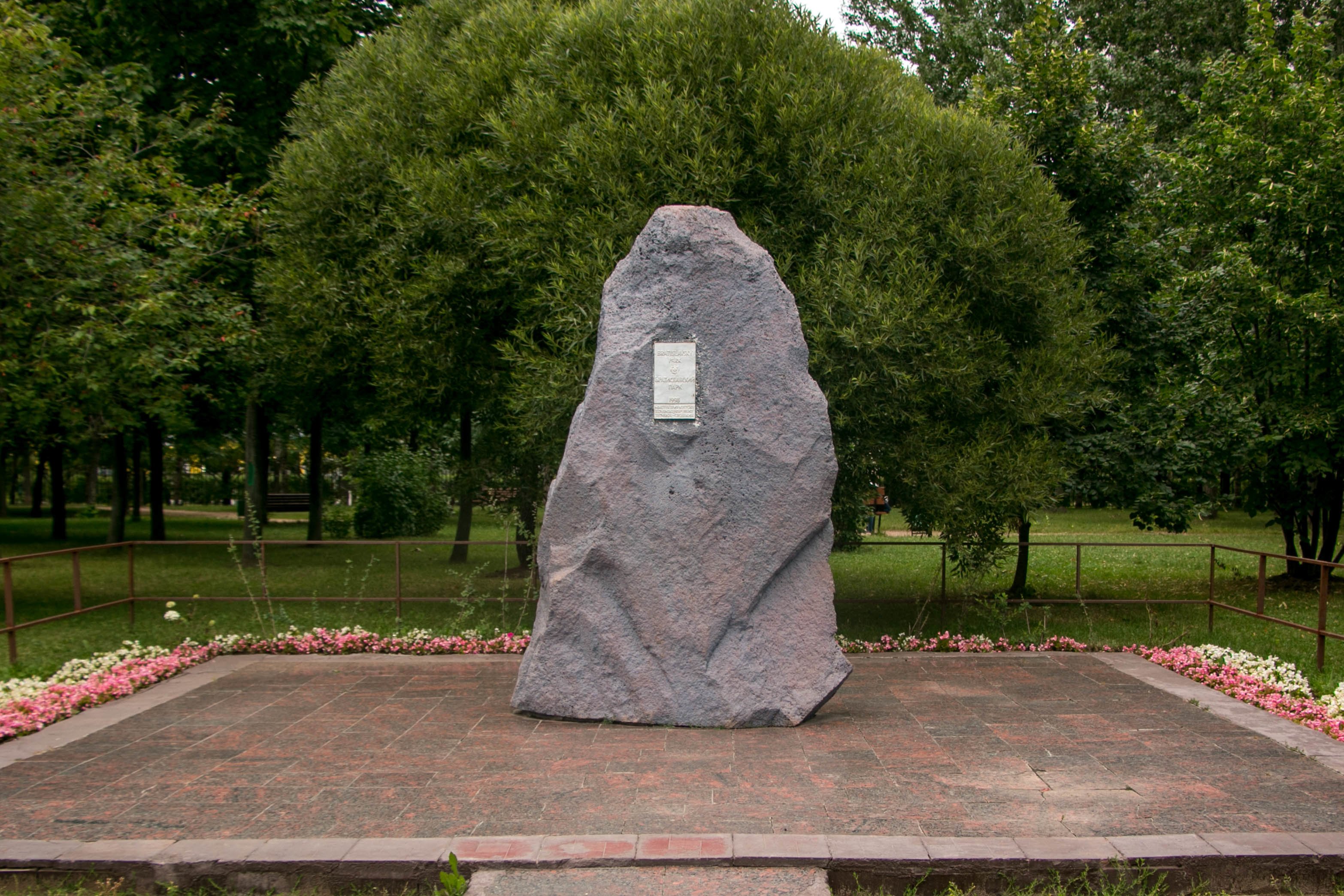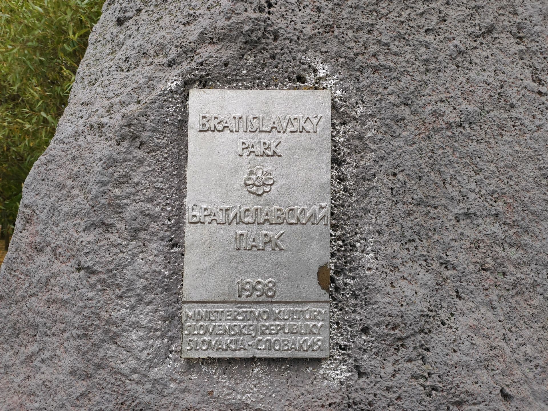 Памятный знак «Камень с памятной табличкой в знак дружбы и сотрудничества России и Словакии» был открыт в 1998 г. Представляет собой каменную глыбу, поверхность которой окрашена. На западной лицевой стороне каменной глыбы размещена латунная табличка с надписью накладными буквами: «Bratislavskiy park Братиславский парк 1998 Minesterstvo kultury Slovenskej Republiky Slovakia — Словакия».