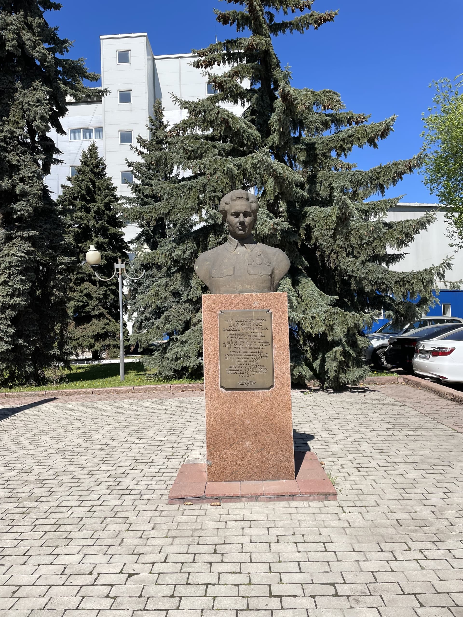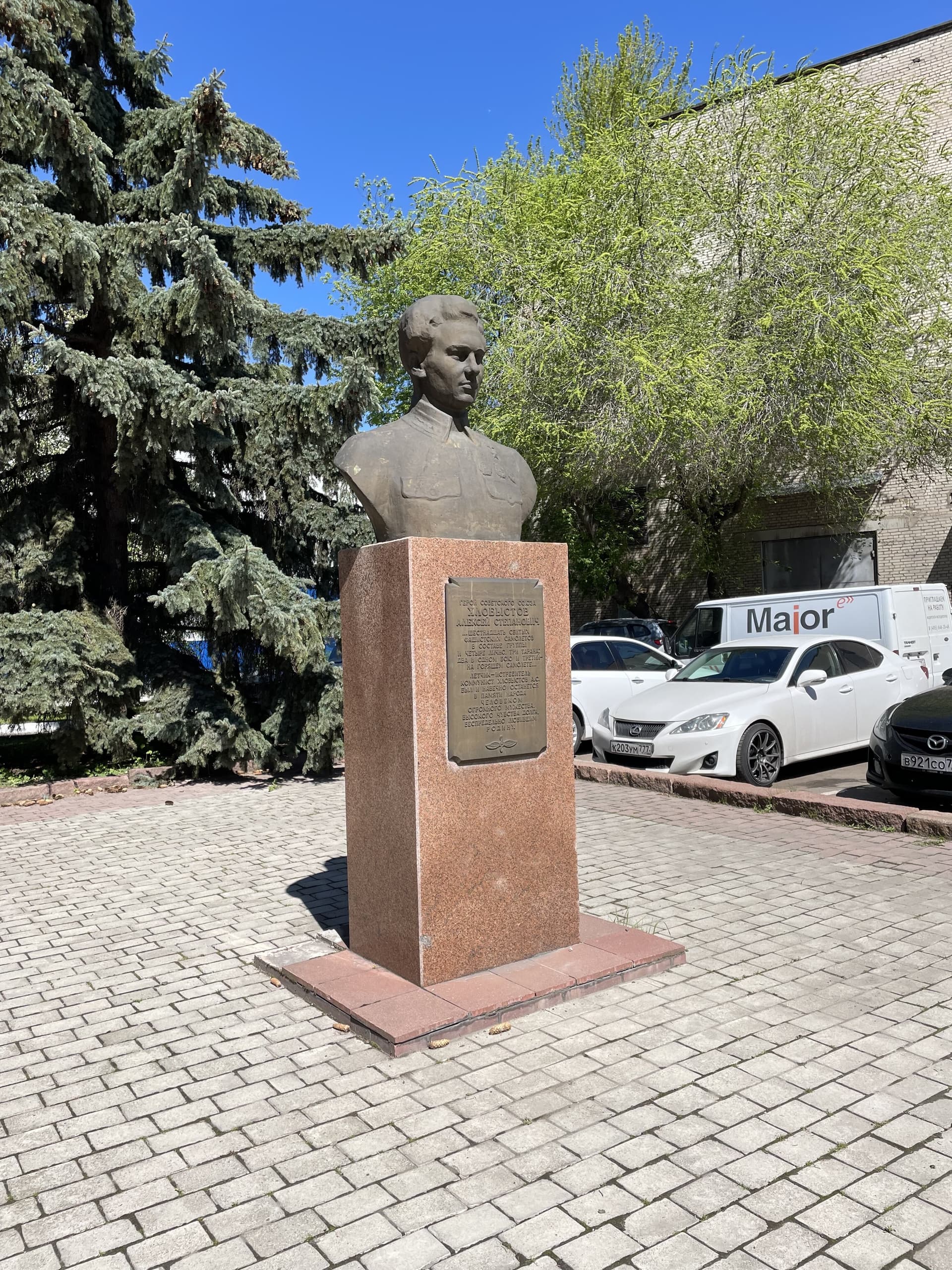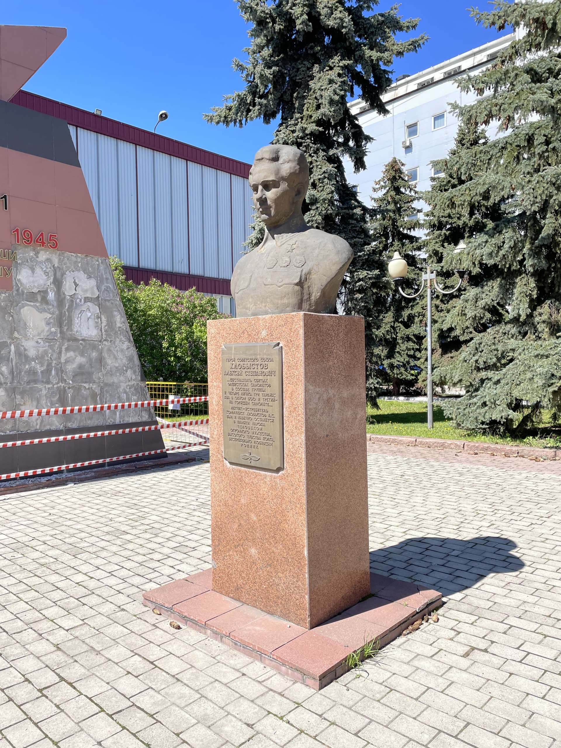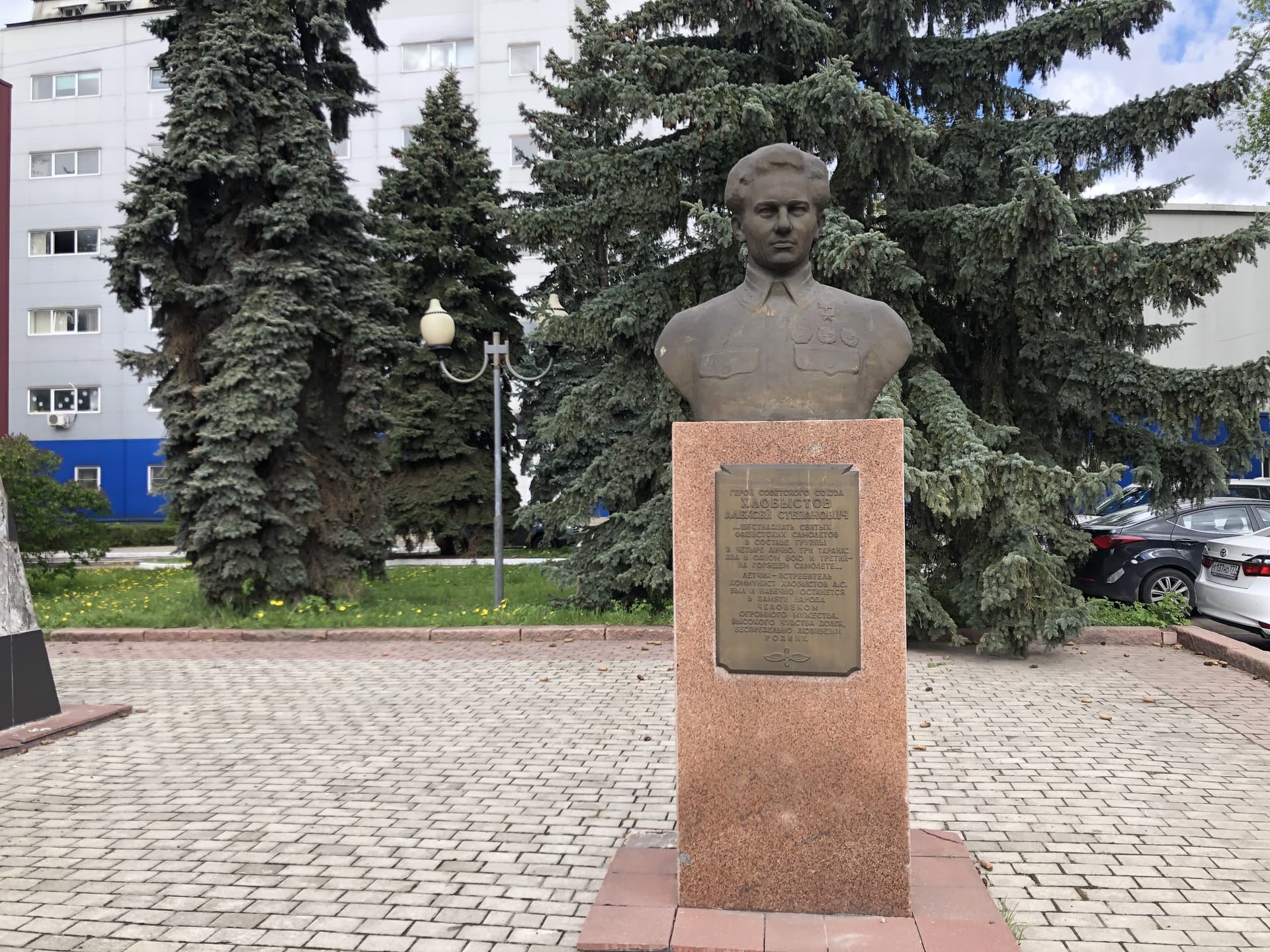 Памятник А. С. Хлобыстову представляет собой бронзовый погрудный бюст на постаменте. Хлобыстов изображен в парадной форме с наградами на груди. На постаменте укреплена цельнолитая бронзовая мемориальная табличка: «Герой Советского Союза Хлобыстов Алексей Степанович. Шестнадцать сбитых фашистских самолетов в составе группы и четыре лично, три тарана: два в одном бою и третий на горящем самолете. Летчик-истребитель коммунист Хлобыстов А. С. был и навечно останется в памяти народа человеком огромного мужества, высокого чувства долга, беспредельно любившим Родину».