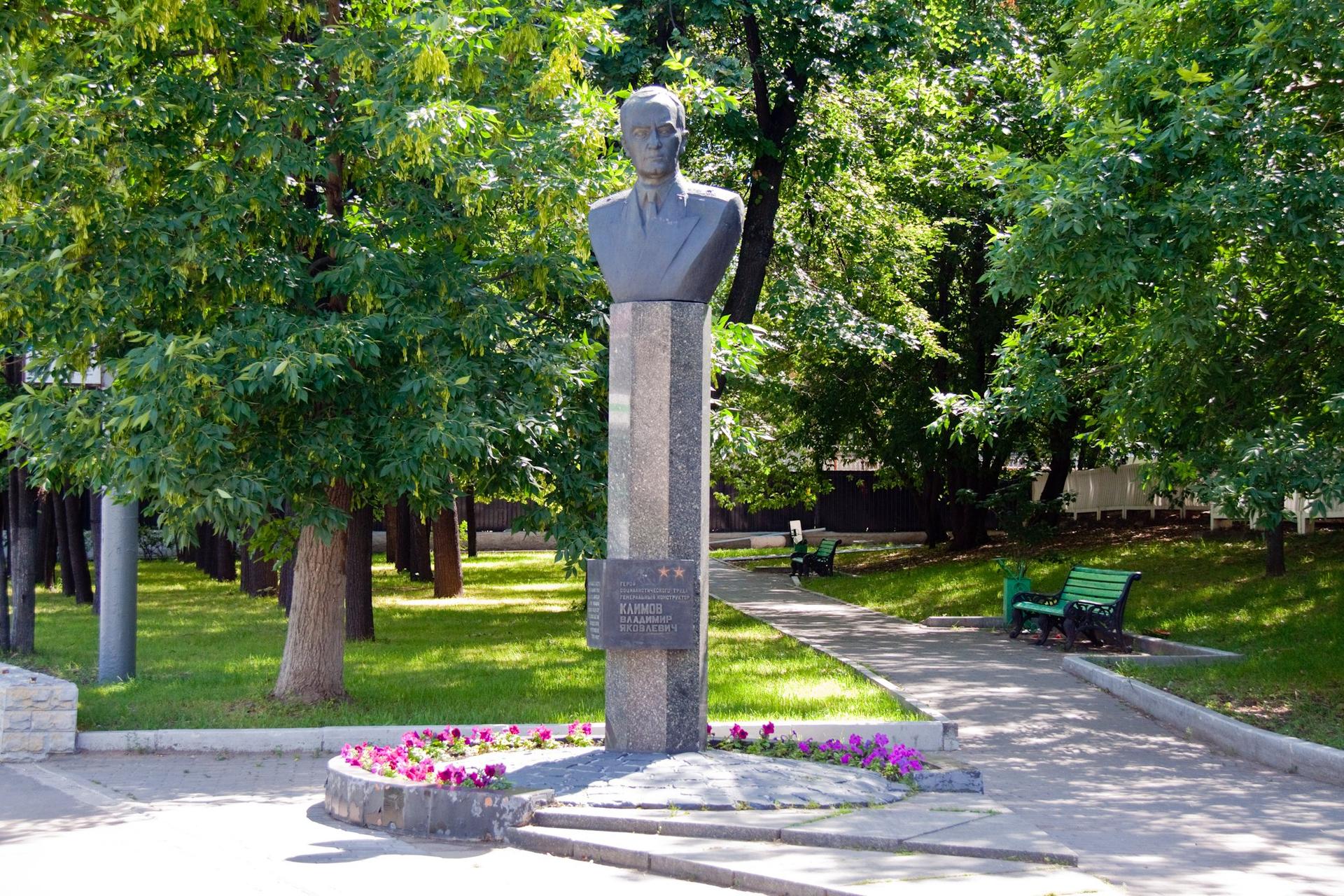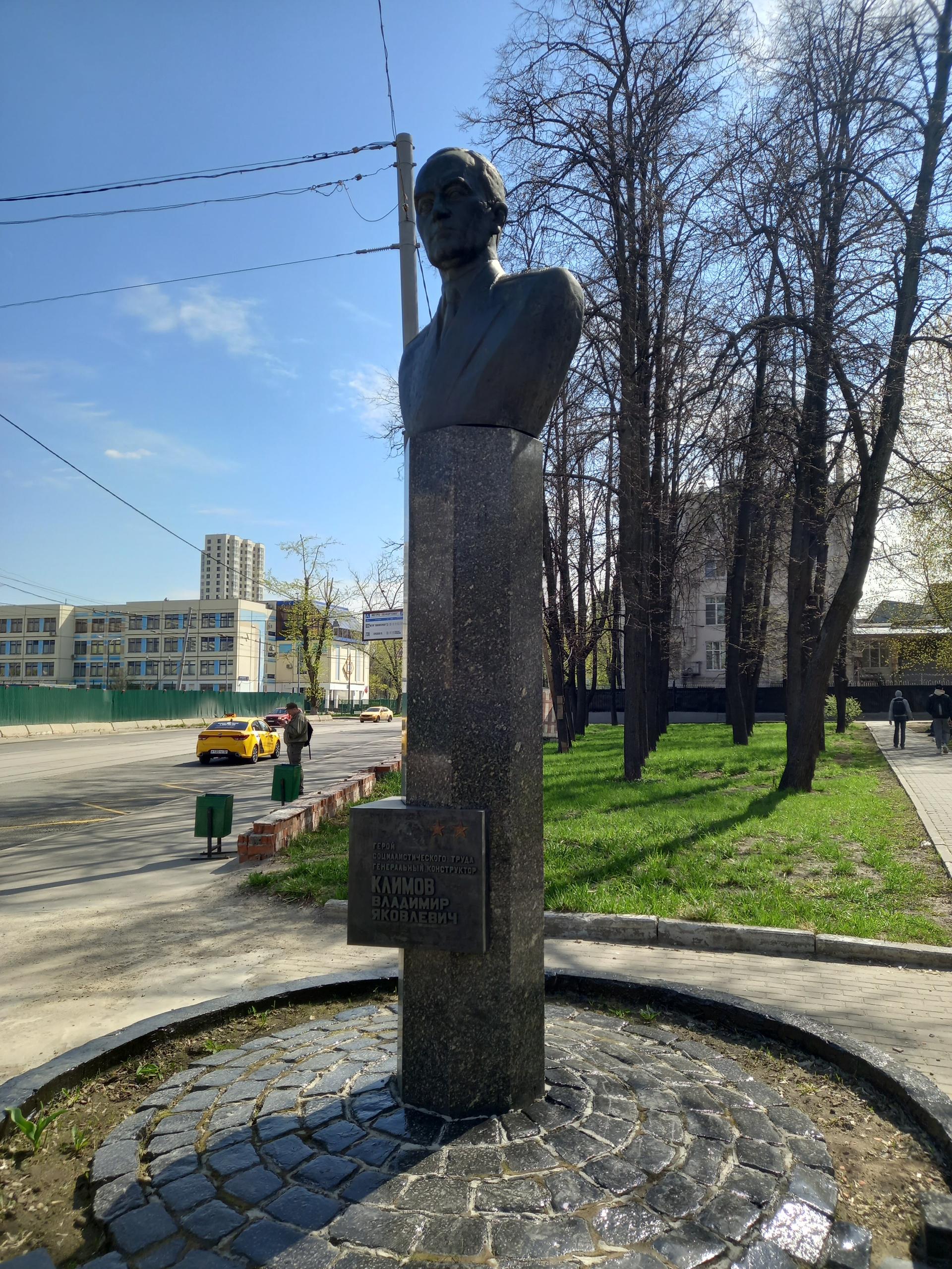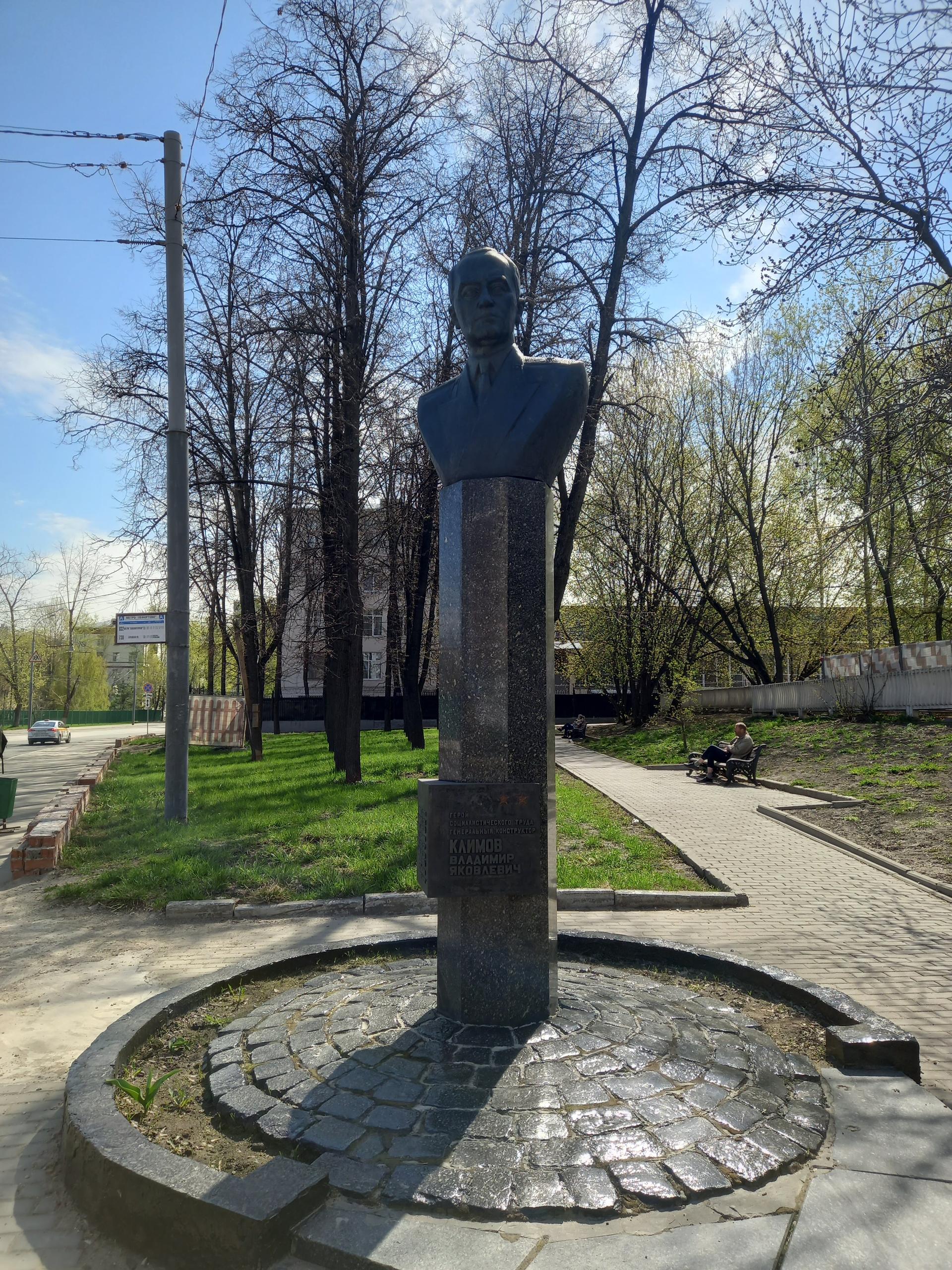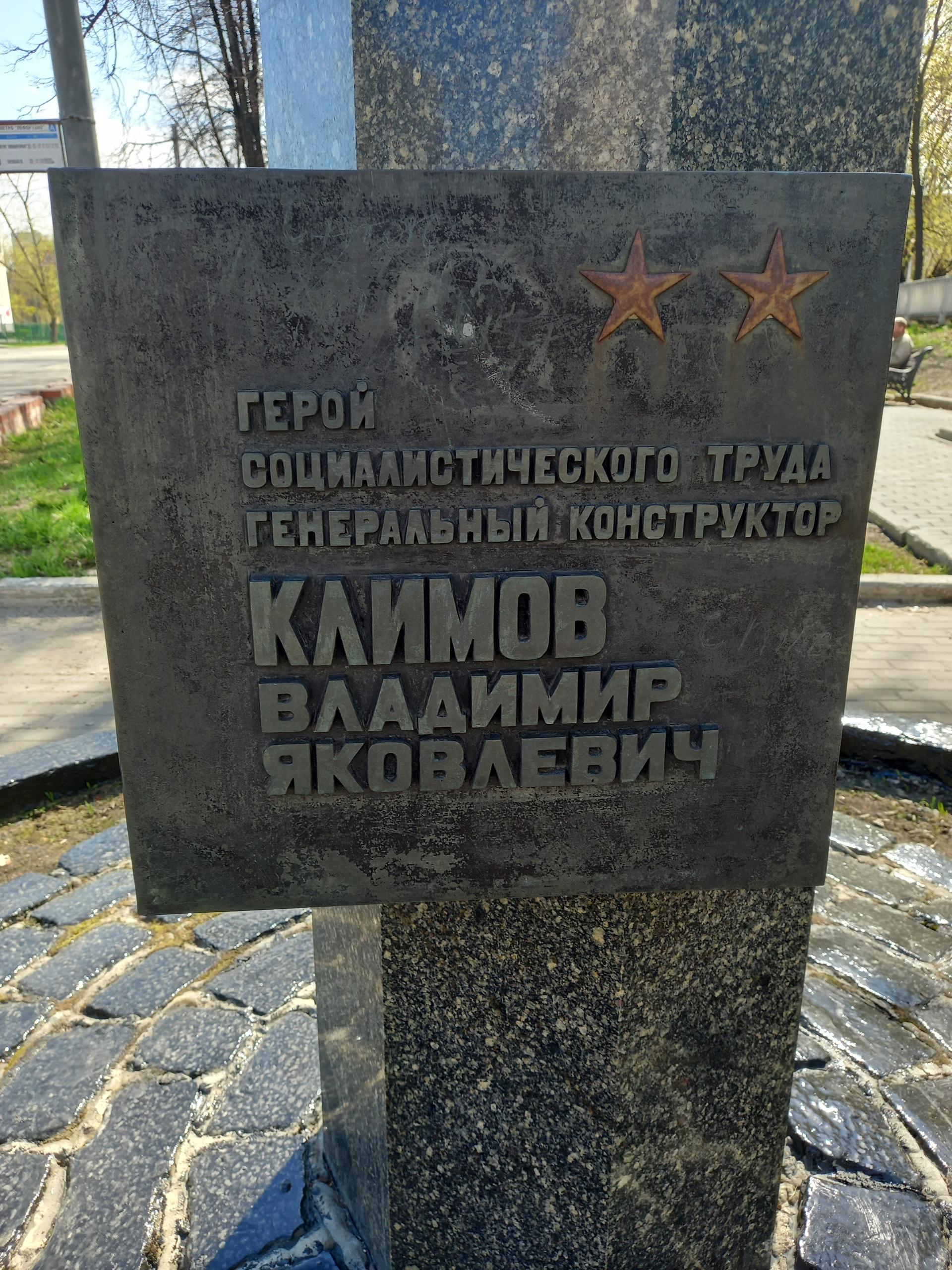 Памятник Владимиру Яковлевичу Климову представляет собой бронзовый бюст, установленный на высоком гранитном постаменте шестиугольной формы. На памятной доске имеется надпись: «Герой Социалистического Труда генеральный конструктор Климов Владимир Яковлевич».