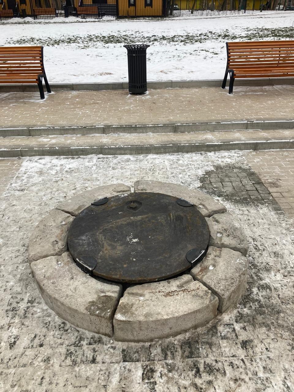 Колодец представляет собой техническое новаторство для времени его сооружения, он – разборный, типовой, сложенный из стандартного кирпича, но сохранивший элементы ручной работы. Оглавие колодца выполнено из семи каменных блоков, вытесанных вручную и тщательно подогнанных друг к другу, с большой металлической крышкой – памятником развития металлургии николаевской России. Диаметр каменного кольца из 7-ми блоков – приблизительно 143 см. Диаметр чугунной крышки – 102 см.