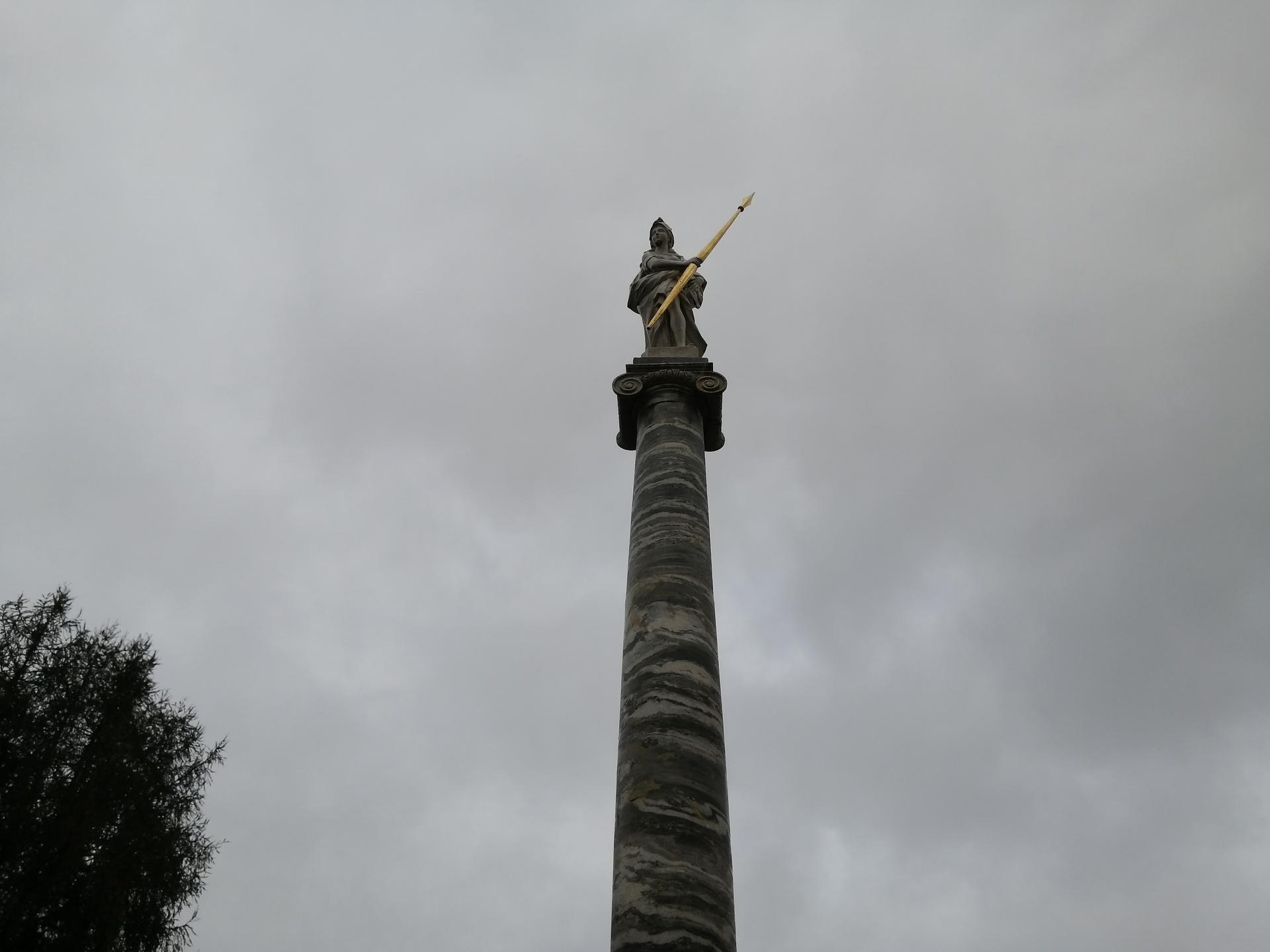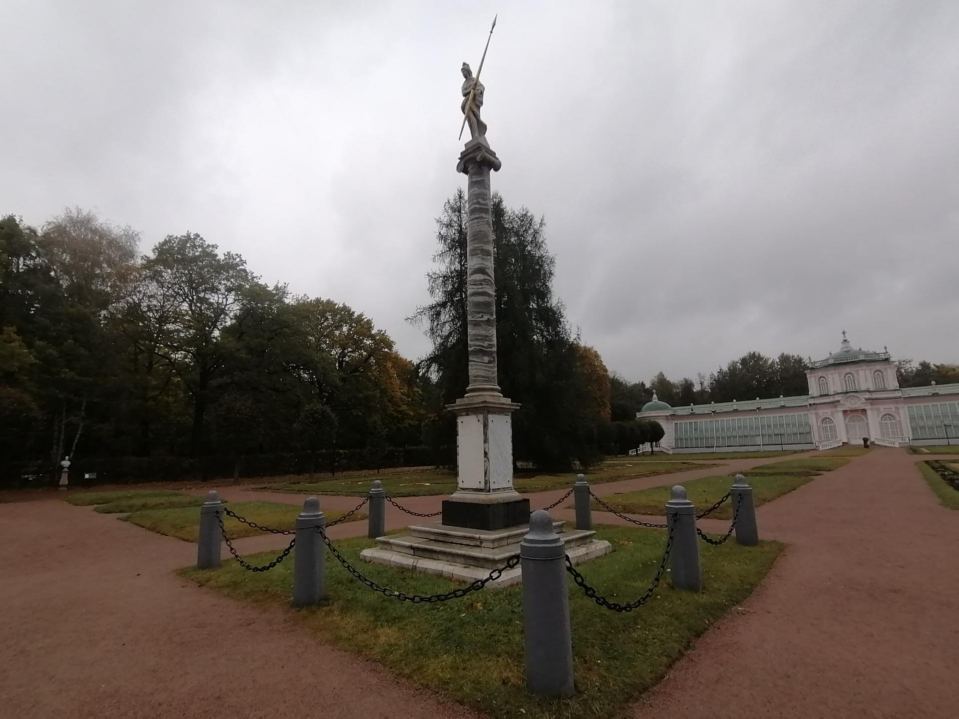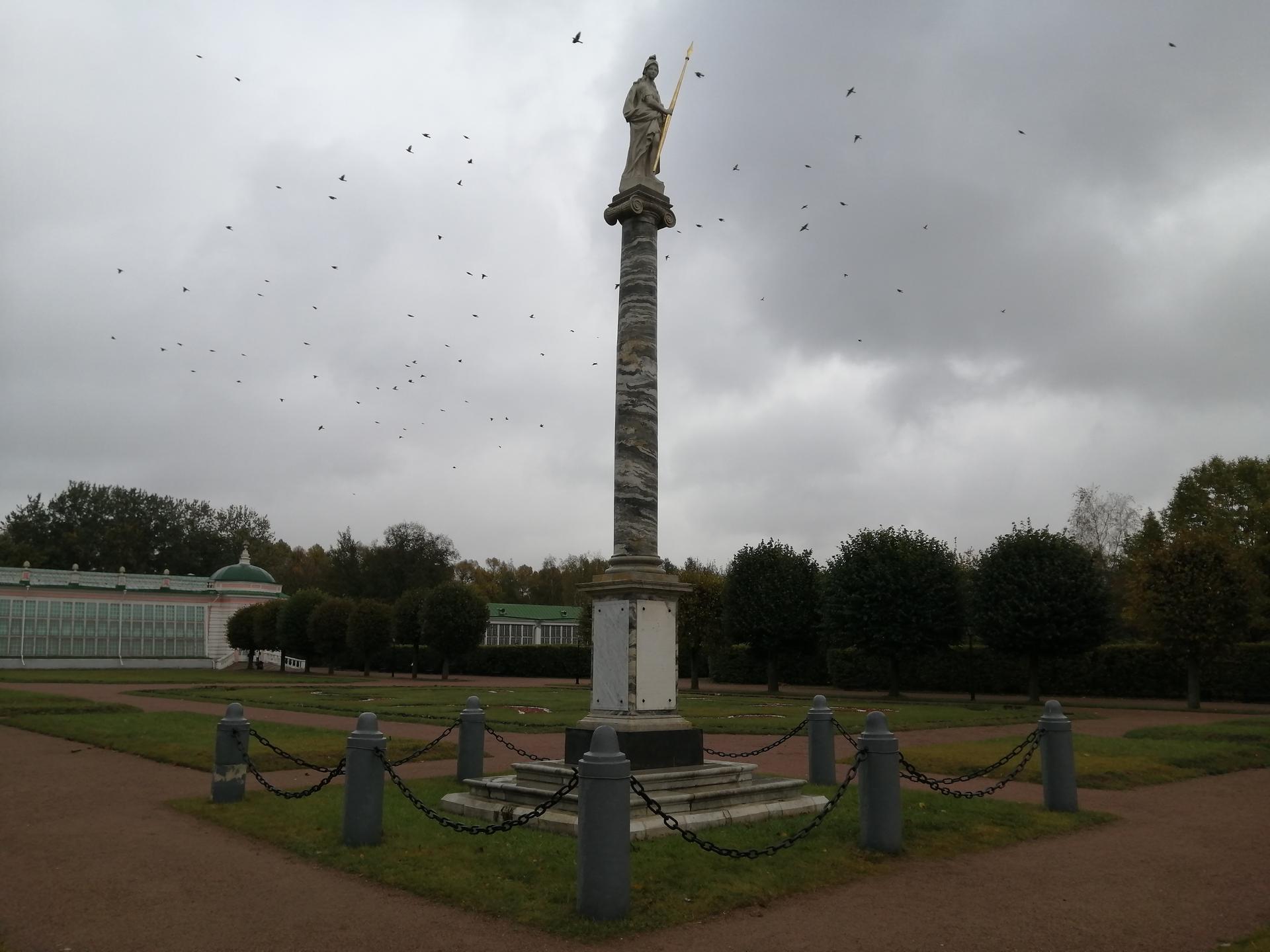 Колонна со статуей Минервы была установлена в кусковском парке в 1779 году. Как следует из надписи, размещенной на мраморной доске постамента колонны, монумент был установлен в память о посещении усадьбы Екатериной II в 1775 году. Скульптура Минервы, венчающая колонну ионического ордера, ассоциировалась с императрицей, часто представавшей в произведениях искусства в образе римской богини.