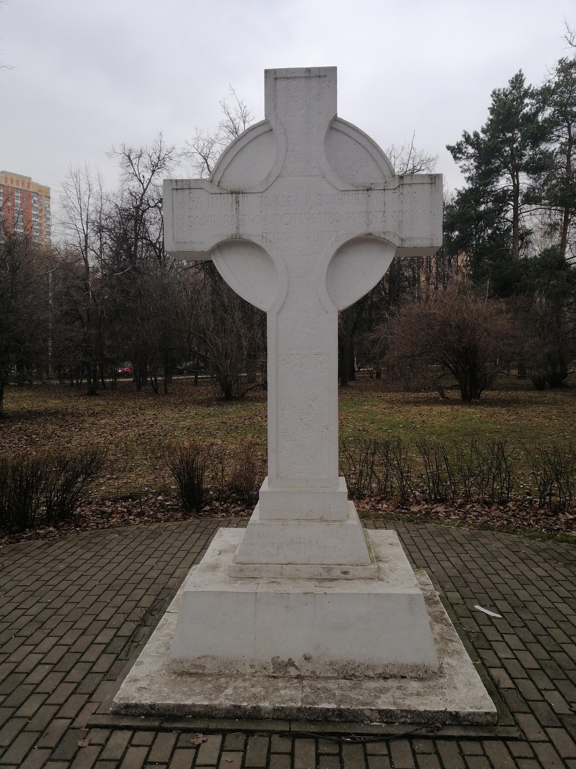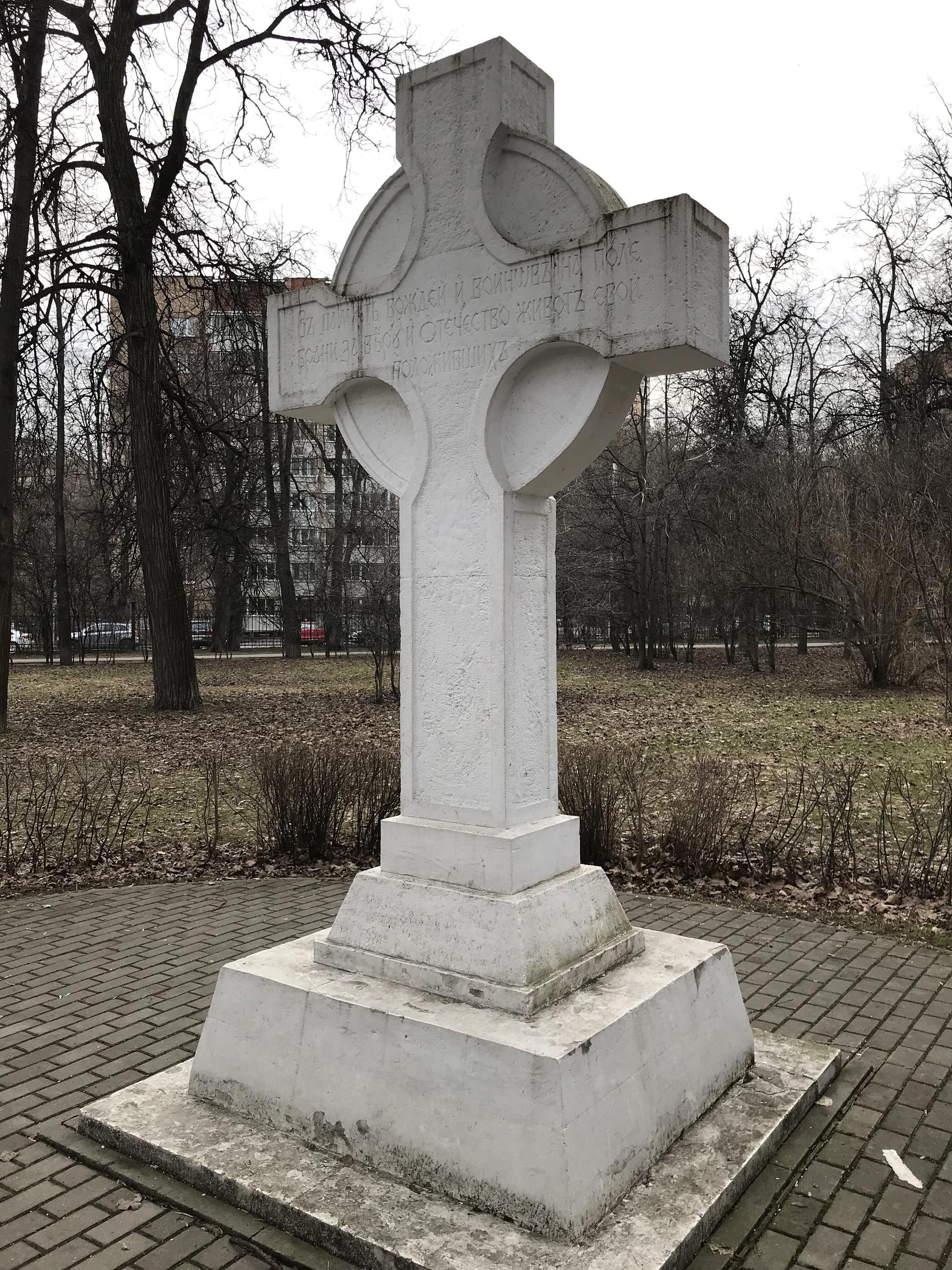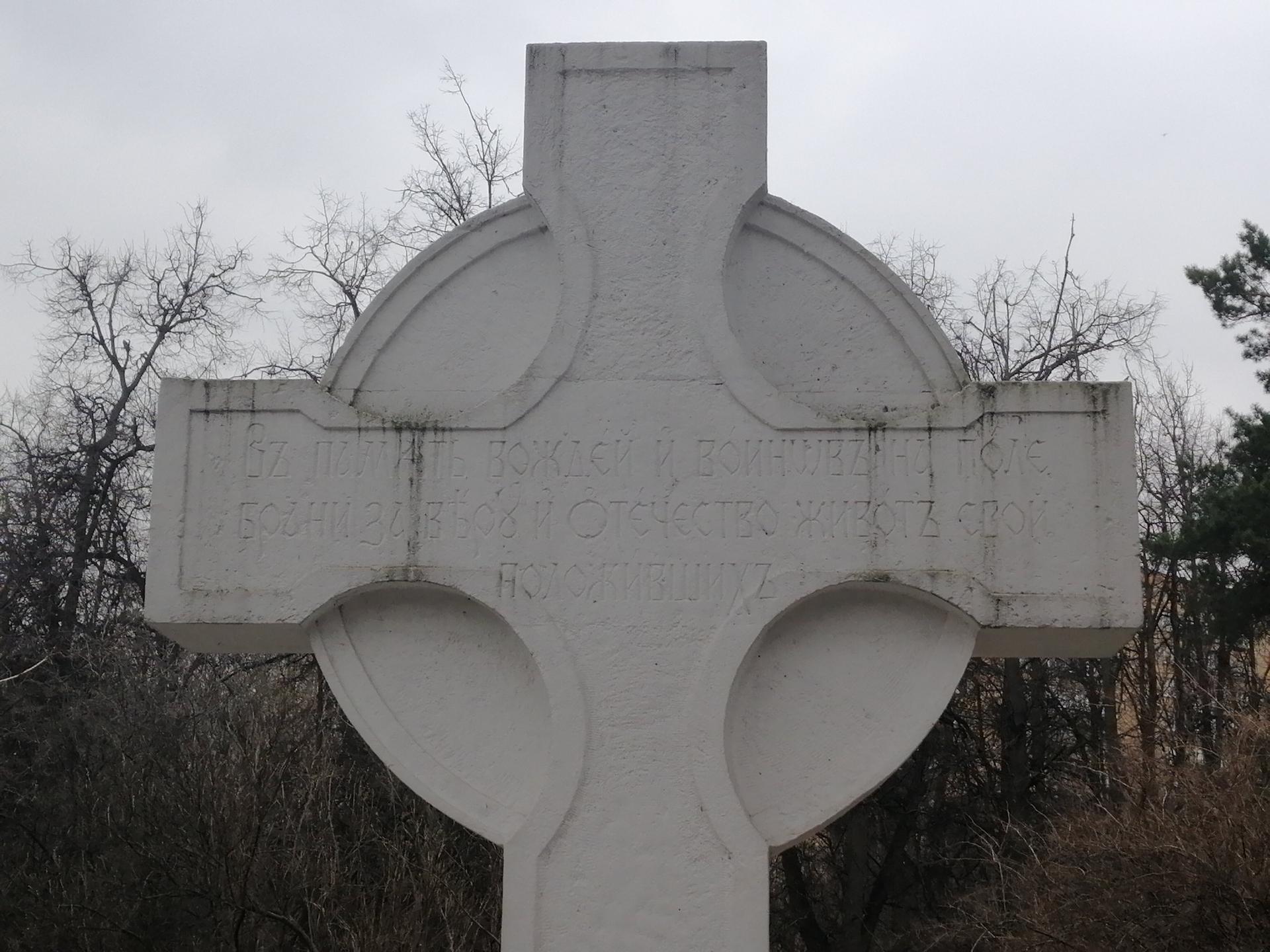 Памятный крест из белого известняка расположен к северу от часовни Спаса Преображения. Находится на территории Мемориально-паркового комплекса героев Первой мировой войны. На средокрестии высечена надпись: «В память вождей и воинов, на поле брани за веру и Отечество живот свой положивших».