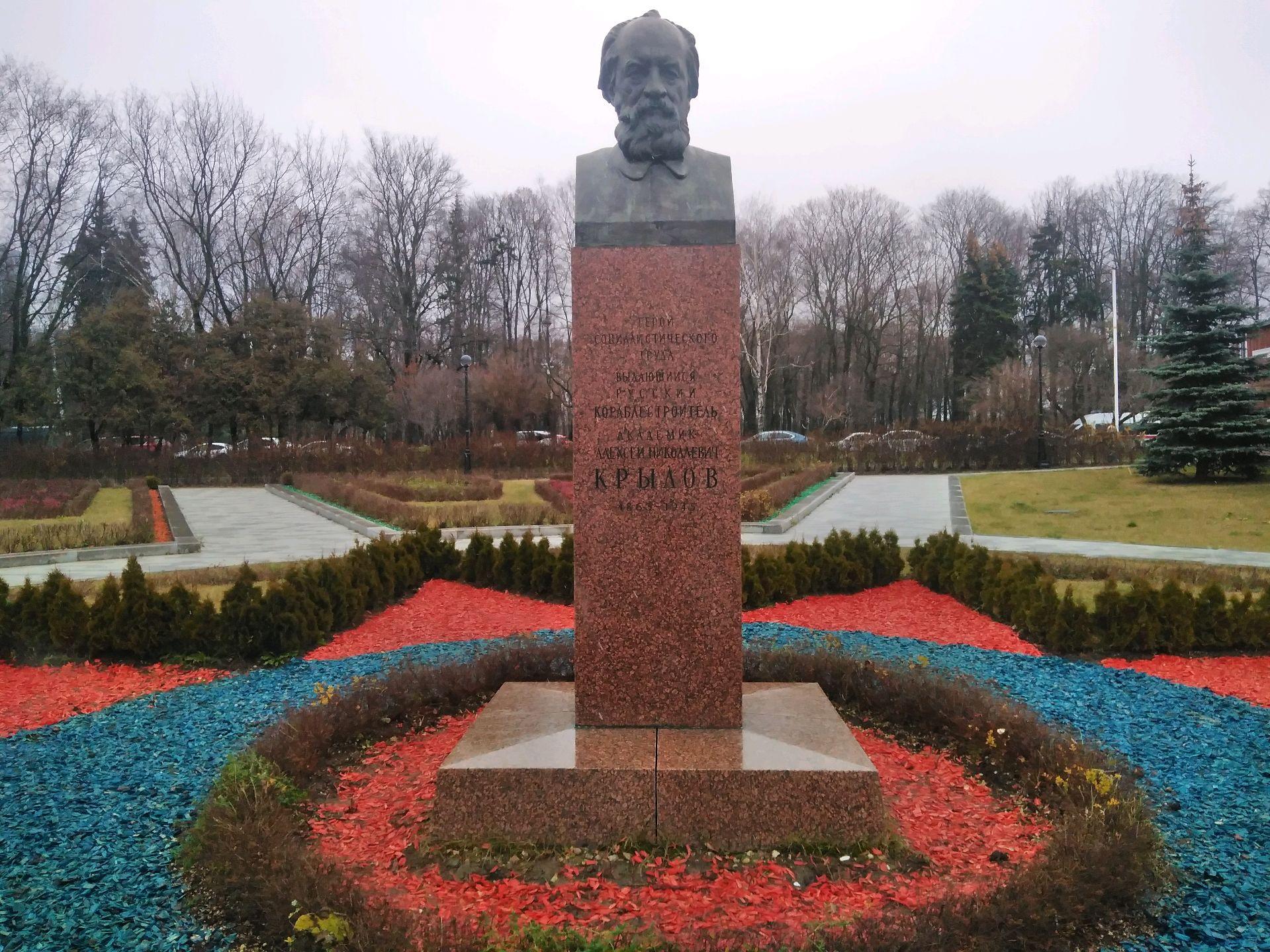 Памятник А. Н. Крылову открыт 7 декабря 1960 г. и представляет собой бронзовый бюст: торжественное парадное изображение обладает портретным сходством. Бюст установлен на высокий гранитный постамент с памятной надписью.