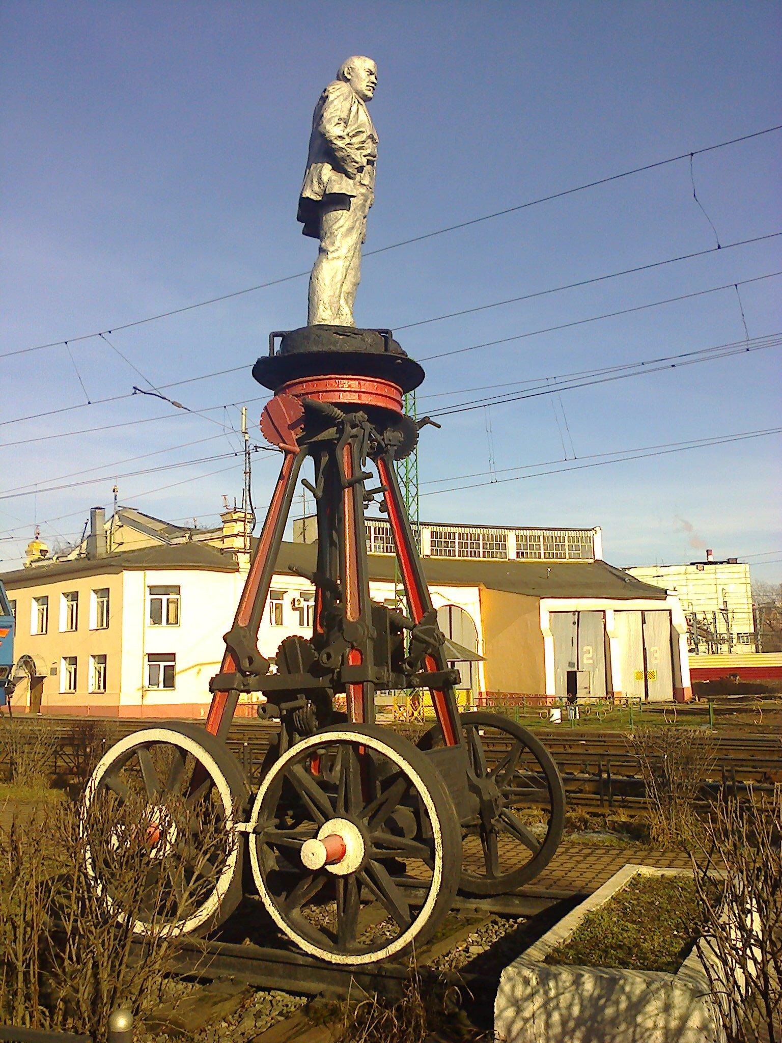 Самый удивительный памятник В.И. Ленину на колесах и наверно самый старый - он установлен в 1925 году, то есть через год после смерти В.И. Ленина. Скромная по размерам скульптура вождя установлена на колесном постаменте. Колеса большие, настоящие - железнодорожные. Памятник стоит на рельсах. Может быть его раньше возили по дороге? Сейчас скульптура выкрашена серебряной краской, а детали постамента красно-черные. Памятник настолько яркий и запоминающийся! Жаль, что расположен он в труднодоступном месте.