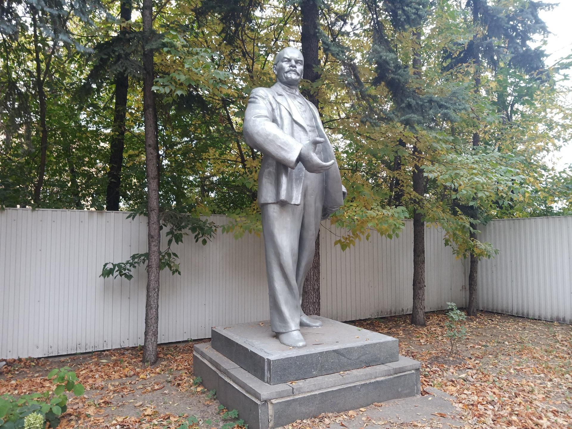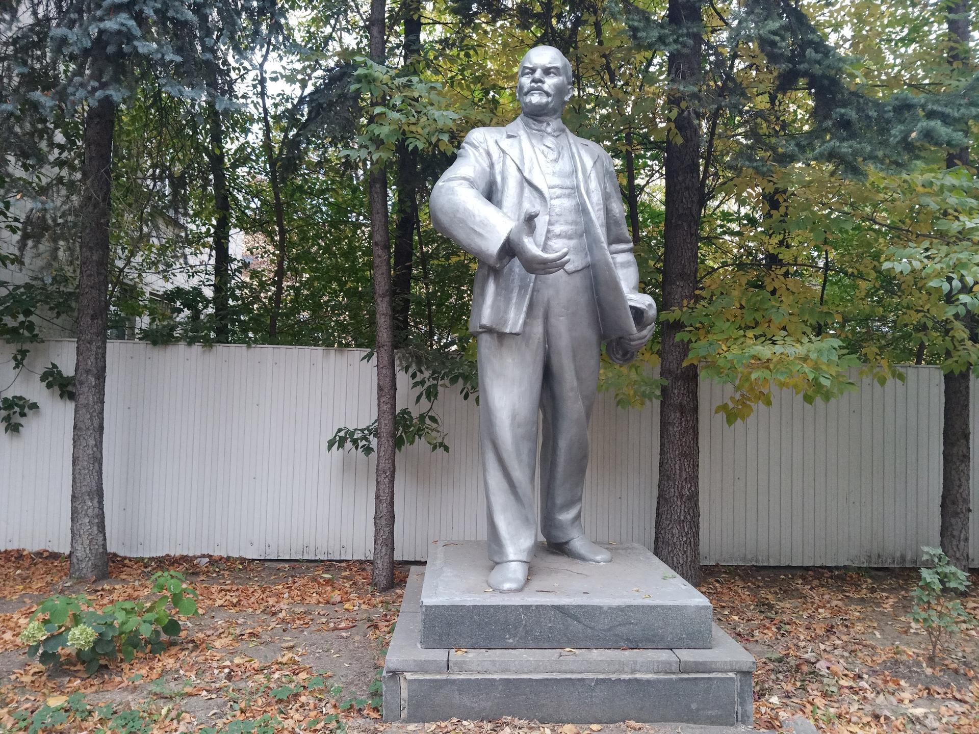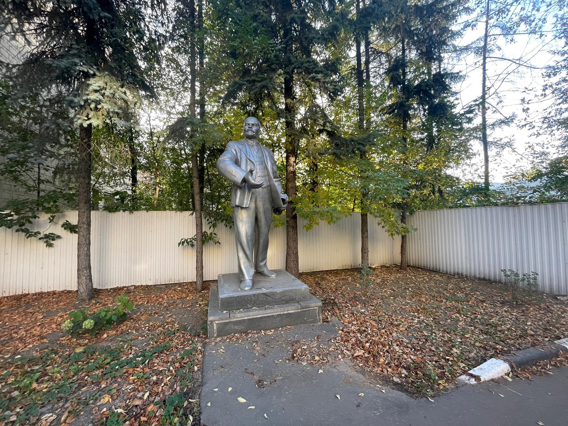 Памятник представляет собой фигуру Владимира Ильича, стоящего в полный рост. Ленин изображен в костюме, голова слегка повернута влево, а взгляд устремлен вдаль. Правая нога чуть выставлена вперед.. Правая рука согнута в локте, жест направлен в сторону, в левой руке сжата кепка. По позе и жестам кажется, что Ленин выступает перед народом. Фигура покрыта лакокрасочным материалом серебряного цвета.