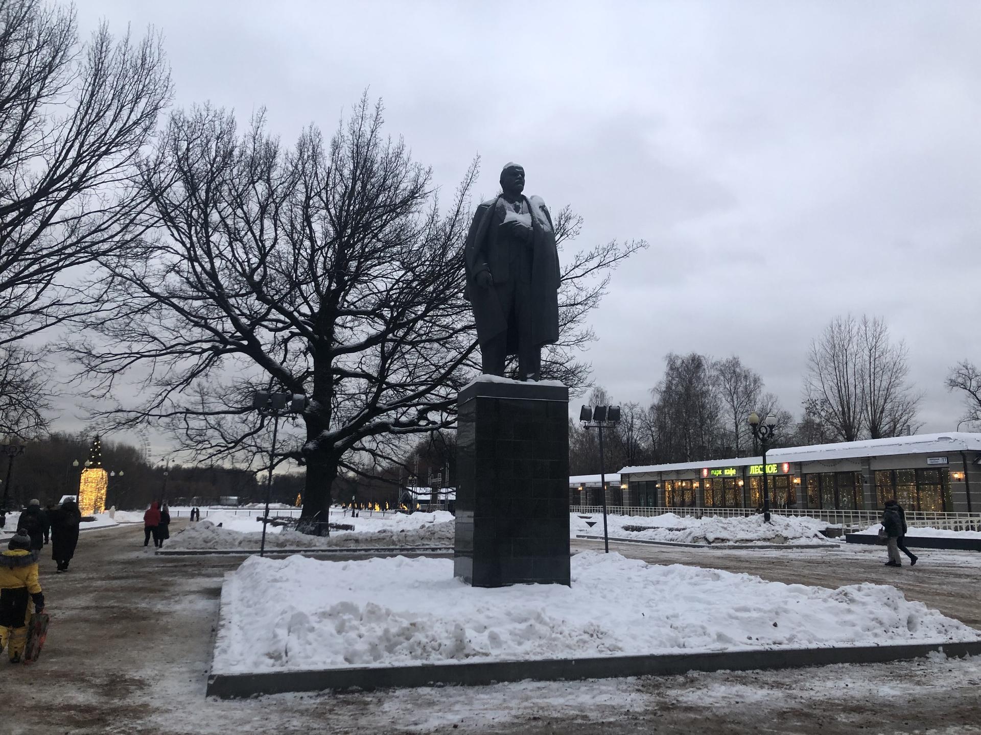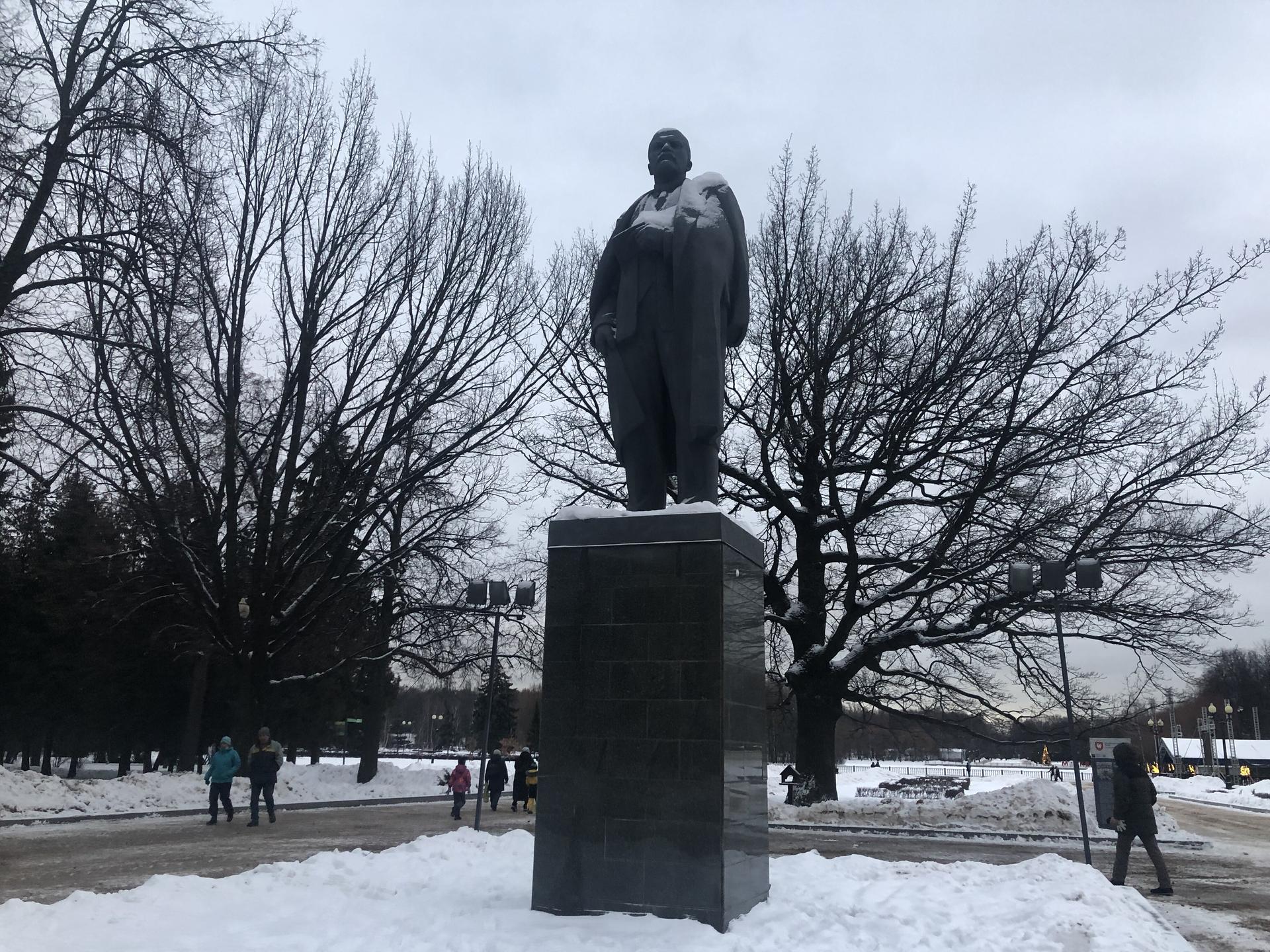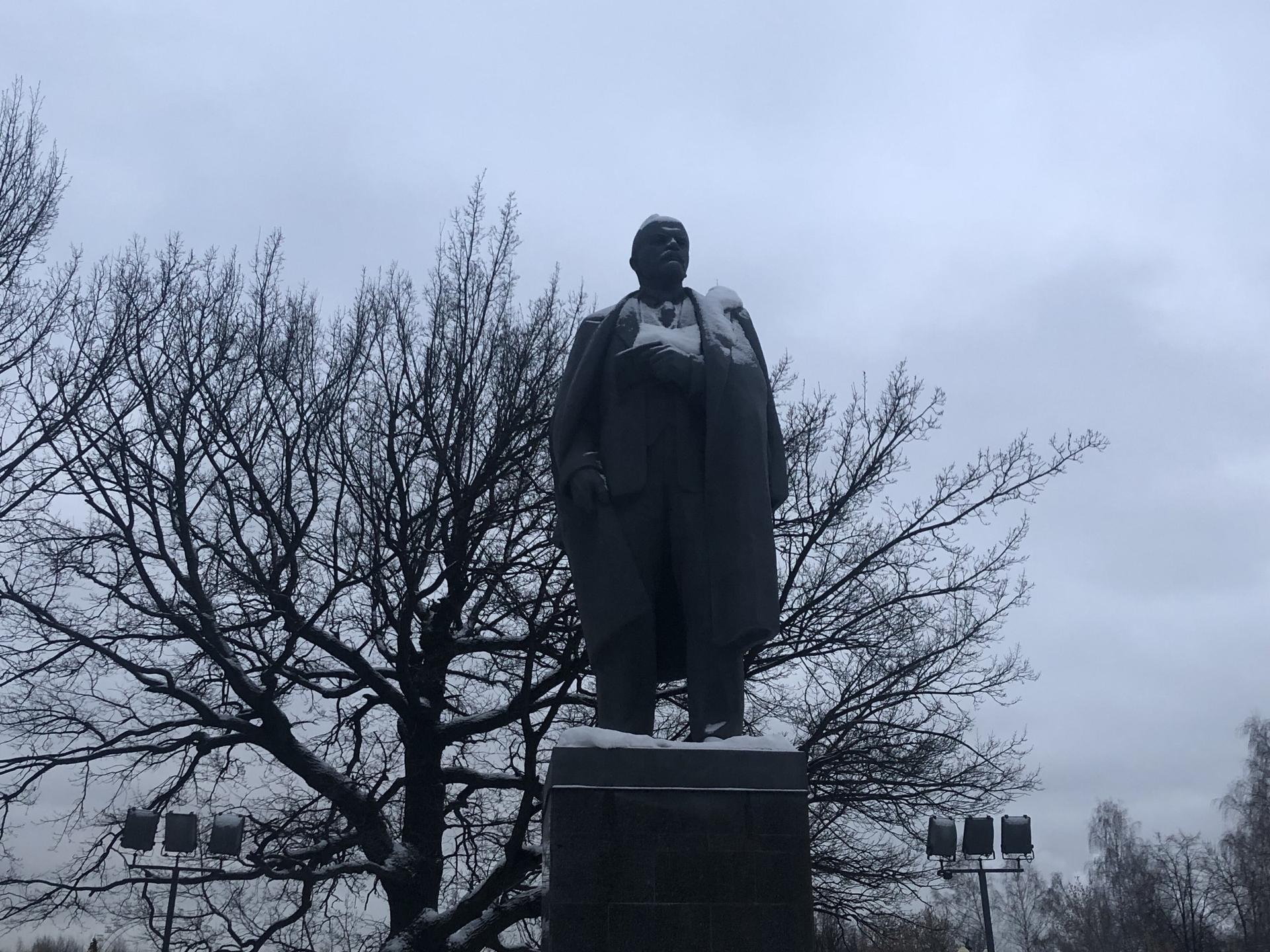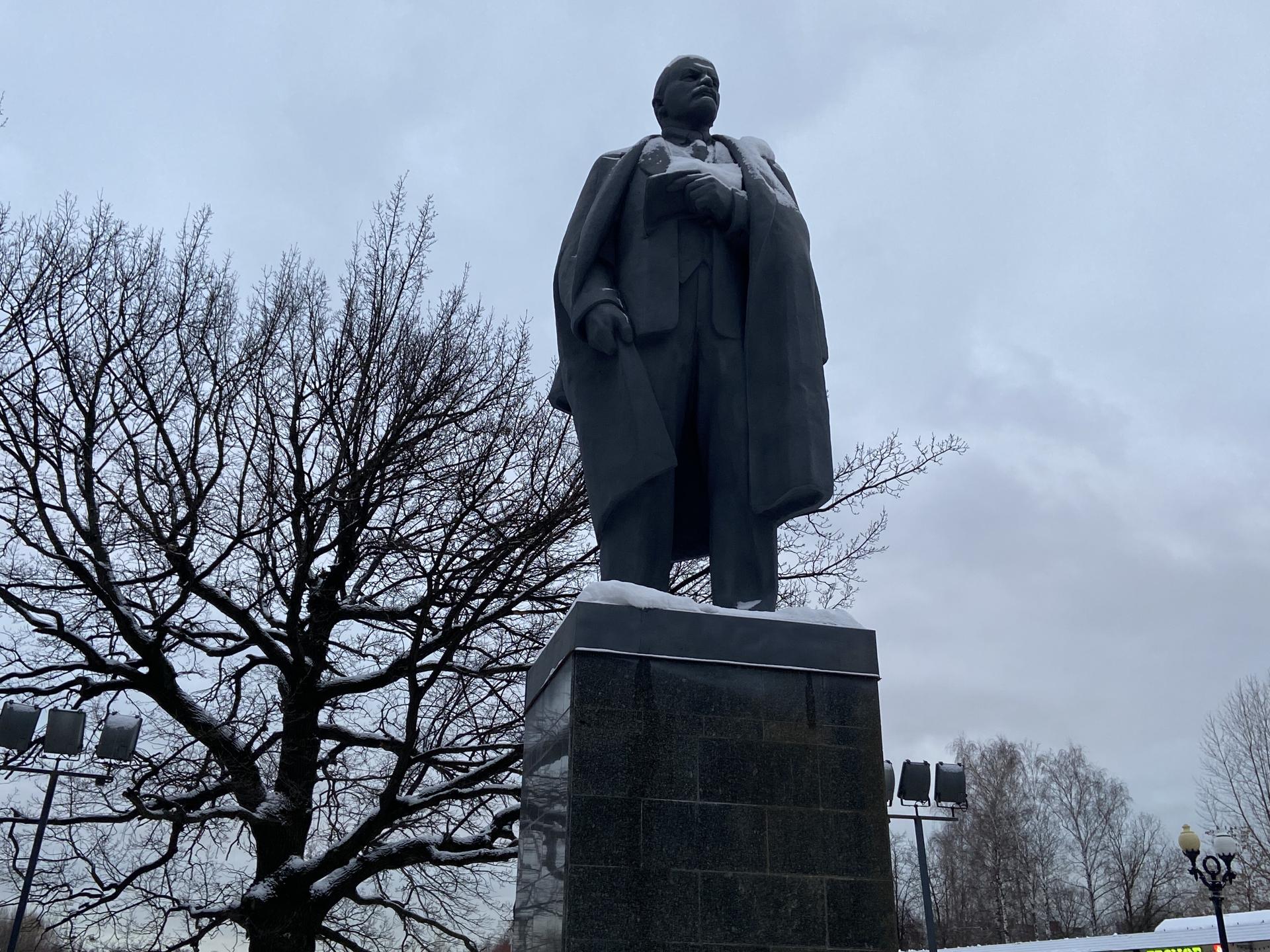 Памятник представляет собой фигуру Владимира Ильича в полный рост, в костюме и накинутом на плечи пальто, одной рукой он касается полы пальто, в другой держит лист бумаги. Памятник выполнен из бронзы и установлен на высоком постаменте, облицованном гранитом.